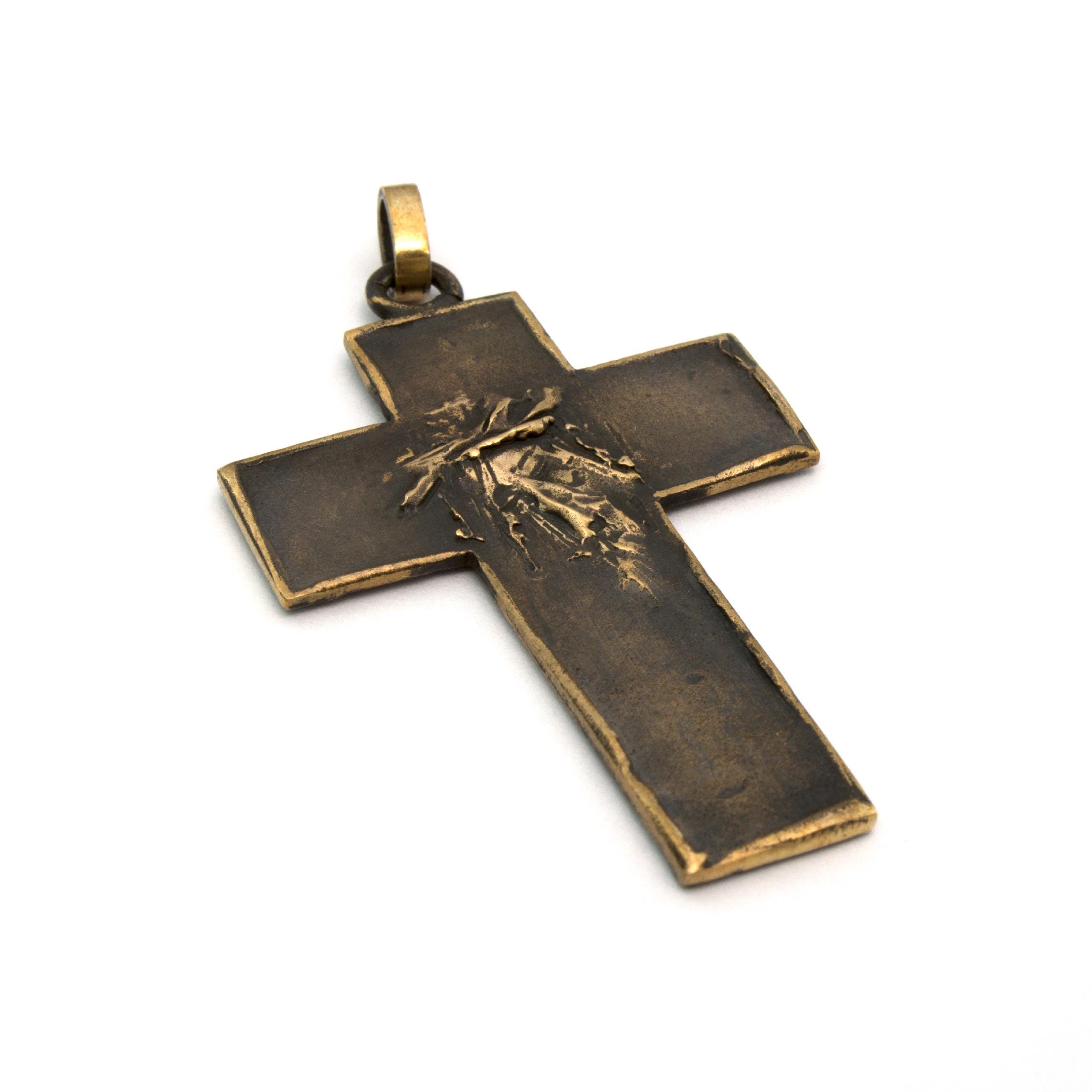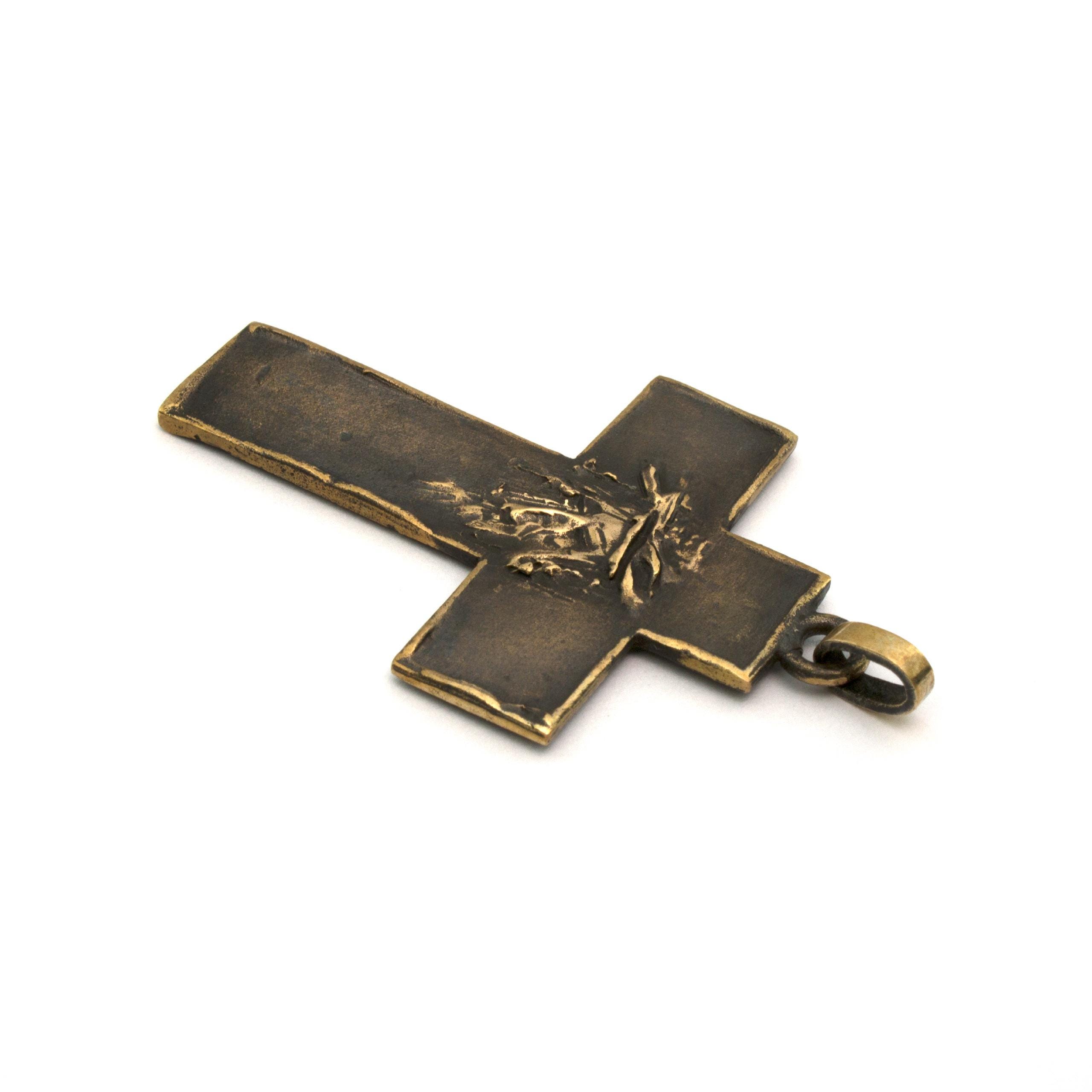 Autorský bronzový přívěsek Křížek plochý #2 od české sochařky a šperkařky Vojtěšky Vlčkové (1948–2023). Ručně vytvořený šperk vznikl tradiční technikou lití na ztracený vosk. Výjimečné autorské dílo s trvalou estetickou i sběratelskou hodnotou.