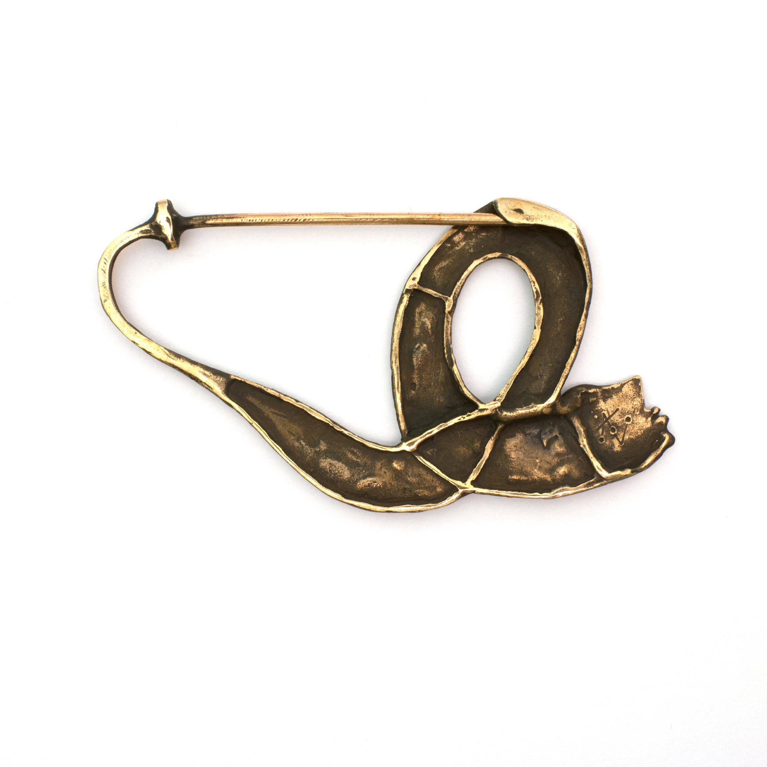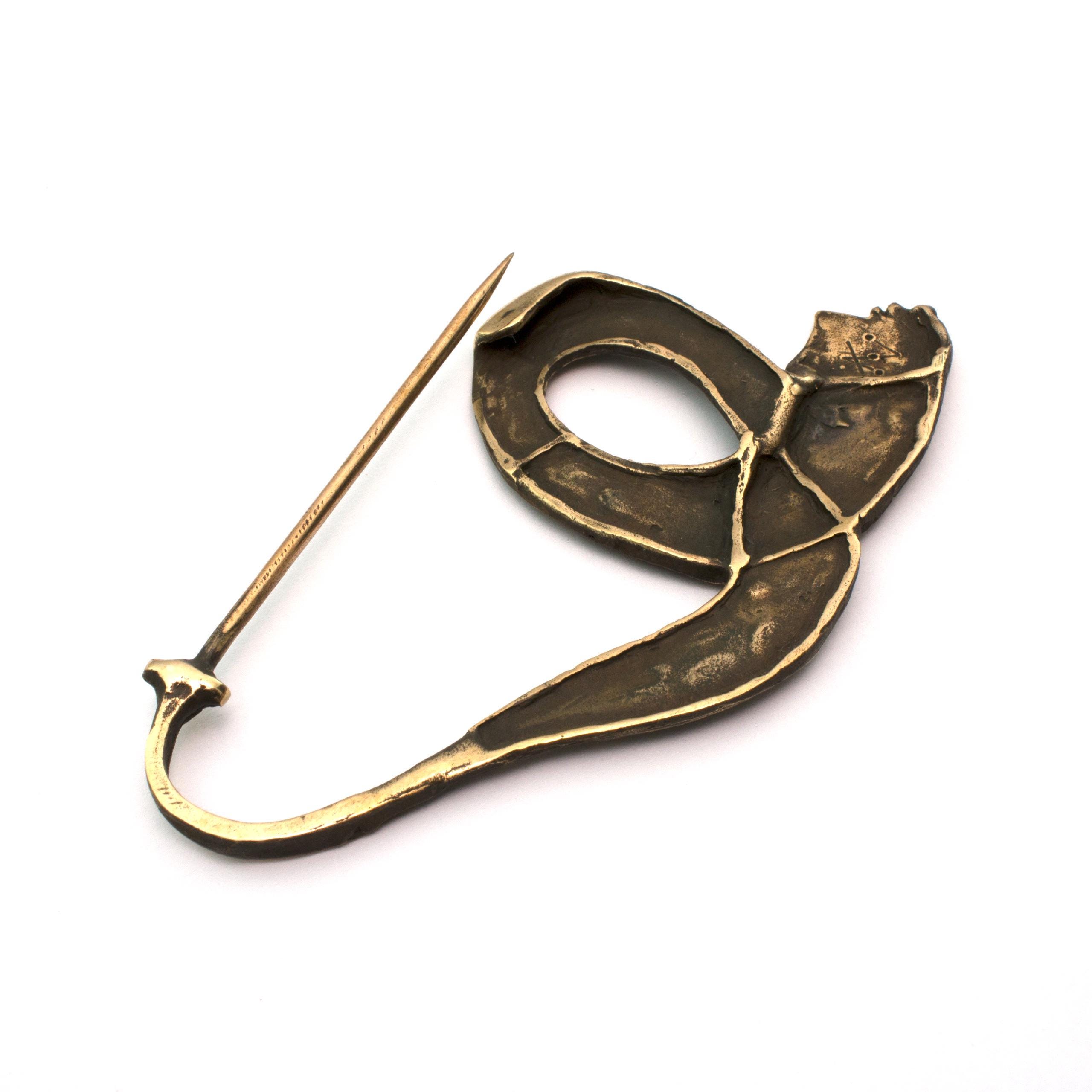 Bronzová kabátová jehlice zapínací od Vojtěšky Vlčkové Katalogové číslo: 041 Autorka: Vojtěška Vlčková Realizace: Jaromíra Pavlíková Lití na ztracený vosk, bronz