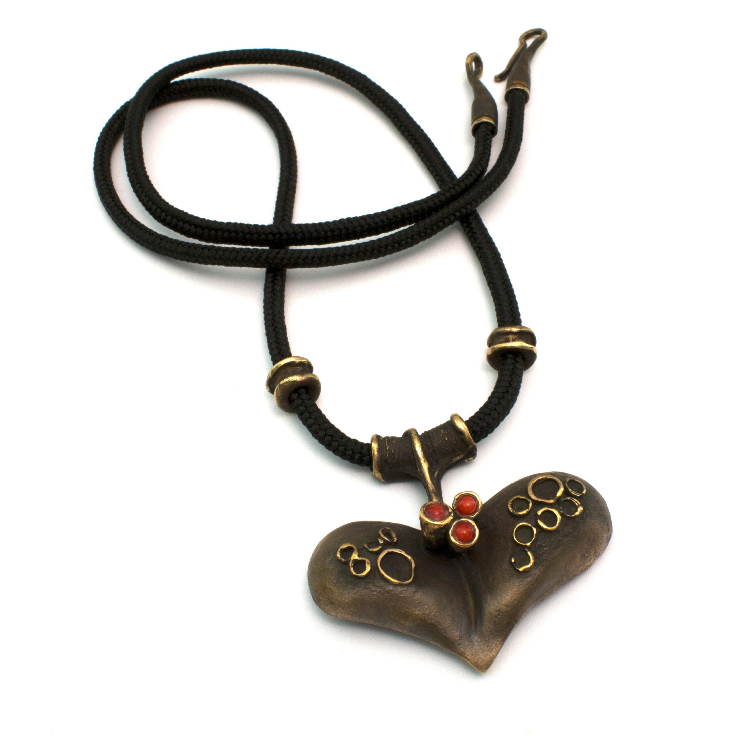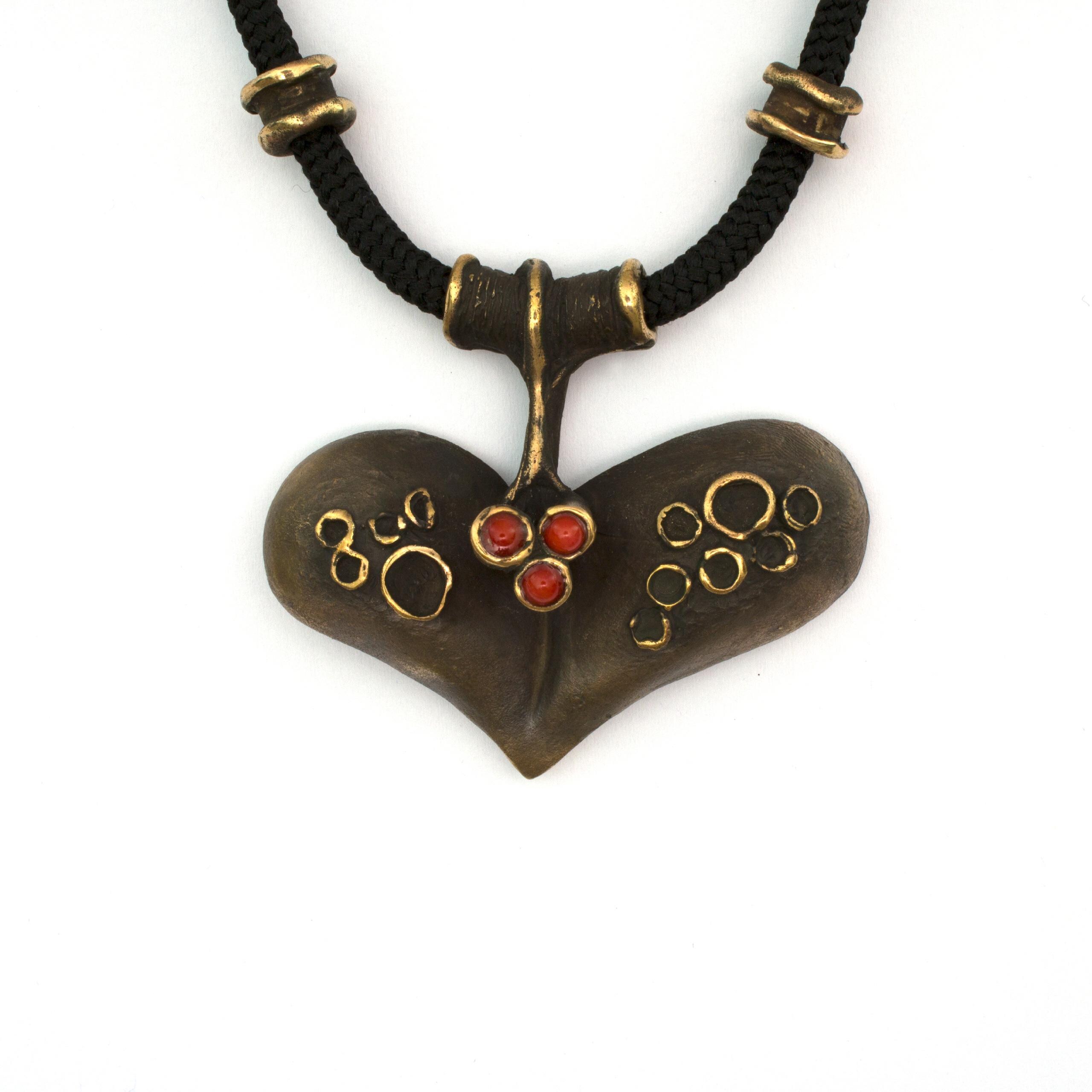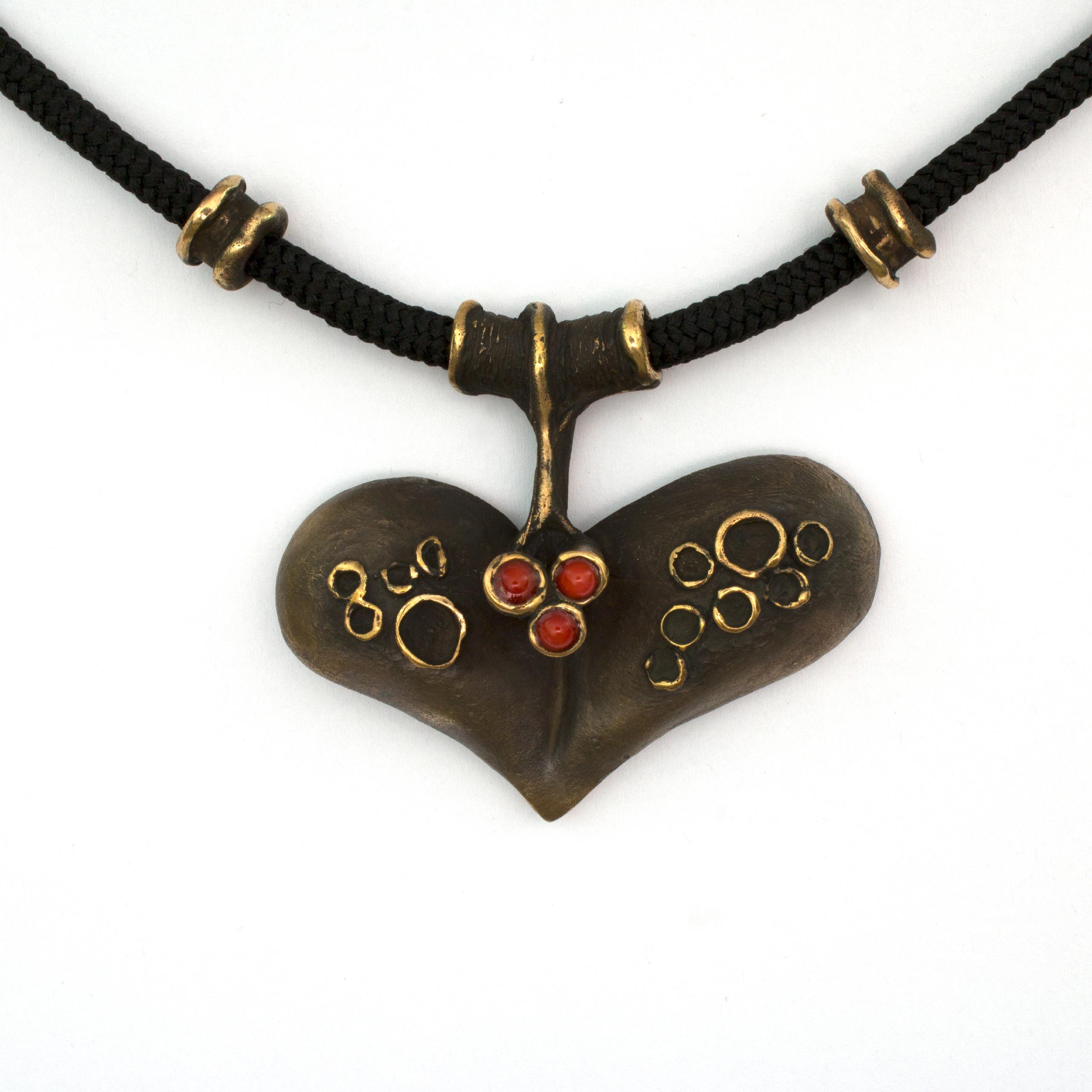 Bronzový závěs s korálem od Vojtěšky Vlčkové Katalogové číslo: 083 Autorka: Vojtěška Vlčková Realizace: Jaromíra Pavlíková Lití na ztracený vosk, bronz, korál Délka cca 68 cm