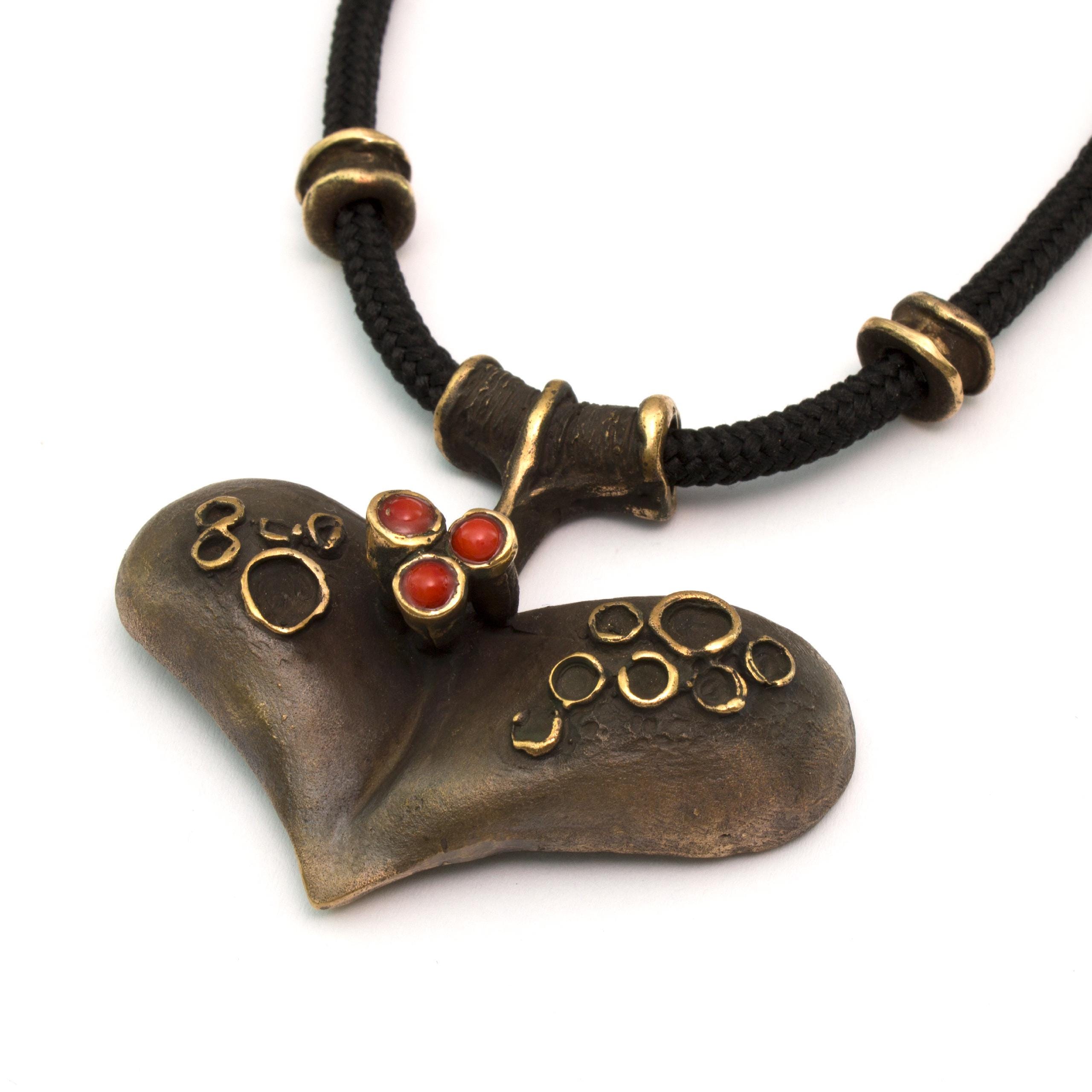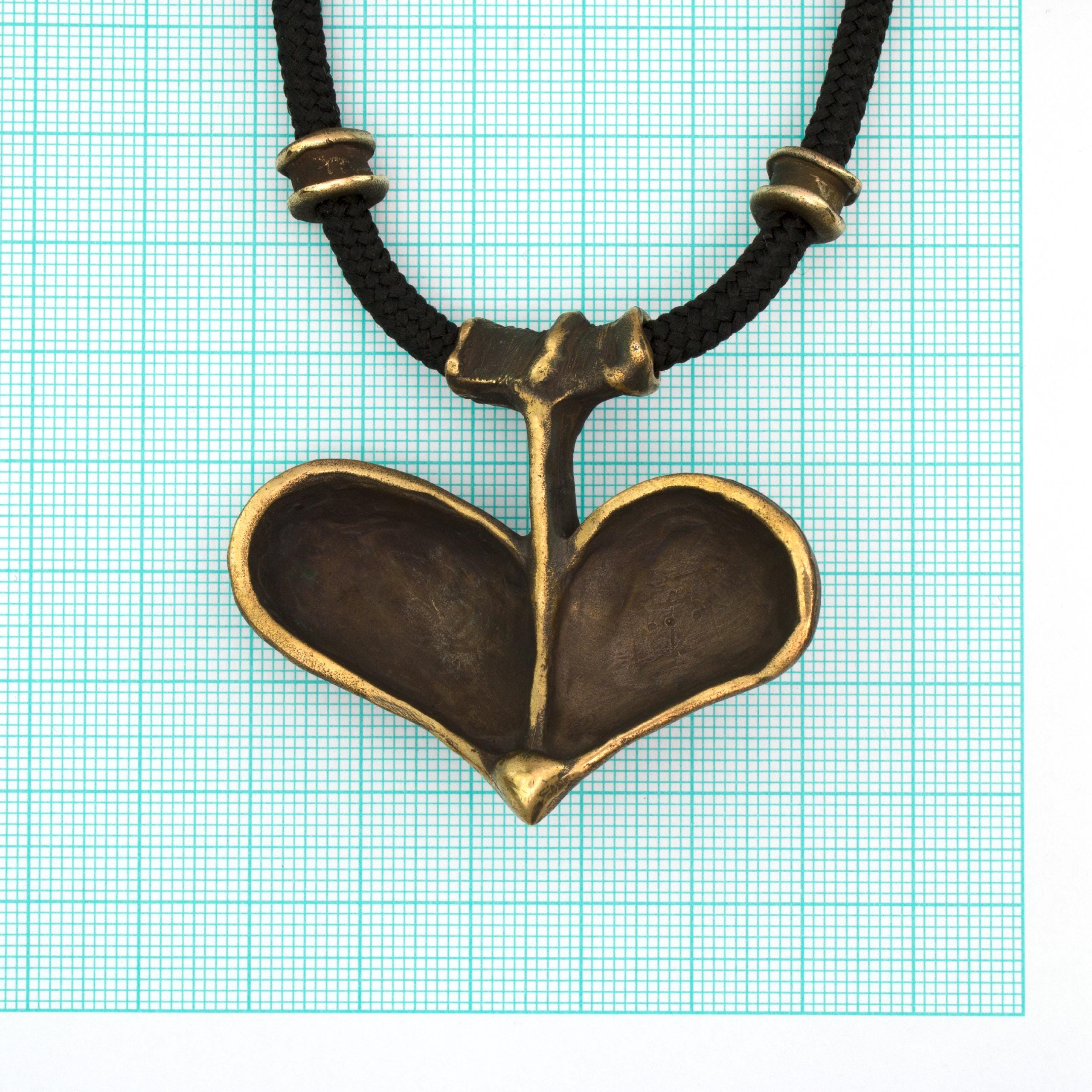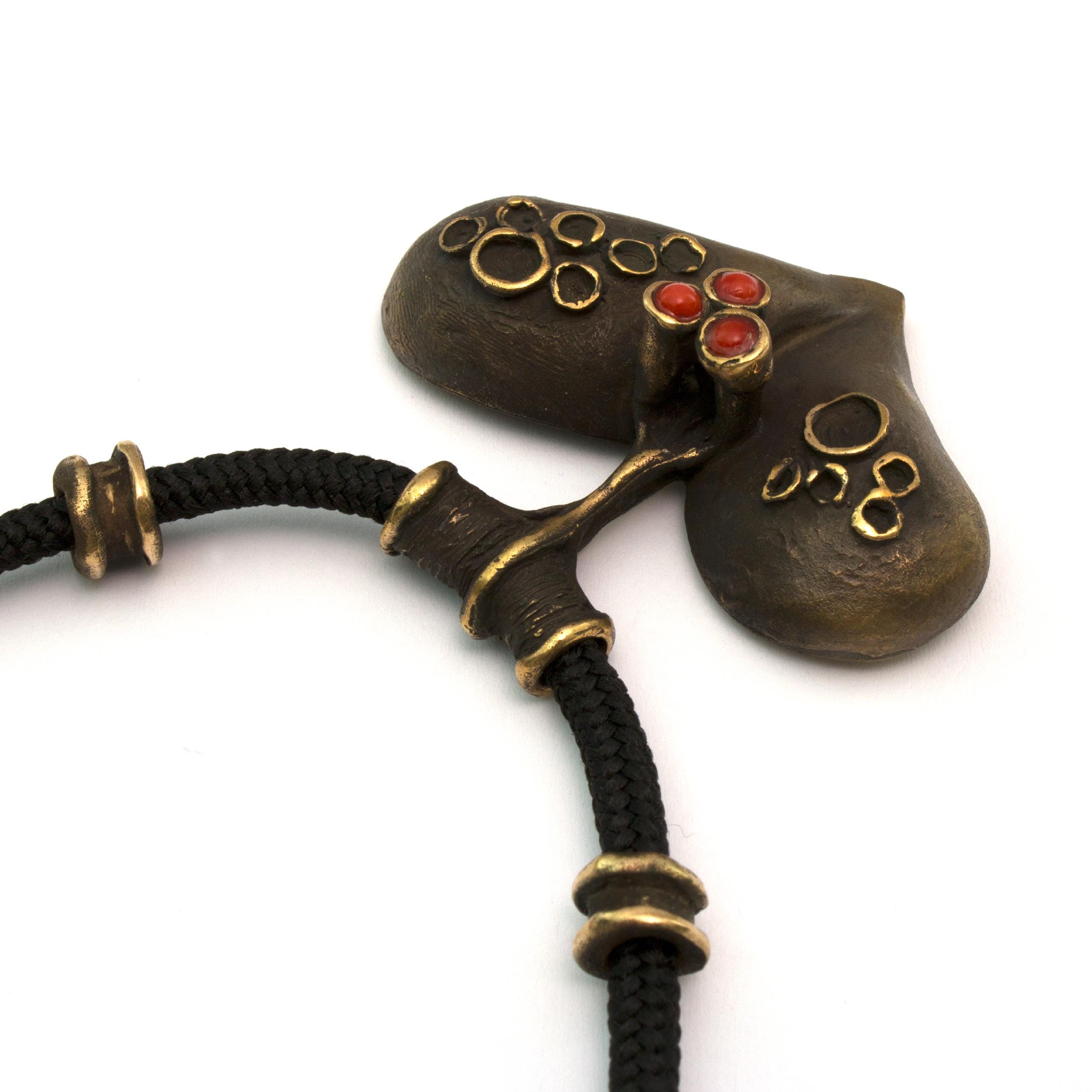 Bronzový závěs s korálem od Vojtěšky Vlčkové Katalogové číslo: 083 Autorka: Vojtěška Vlčková Realizace: Jaromíra Pavlíková Lití na ztracený vosk, bronz, korál Délka cca 68 cm