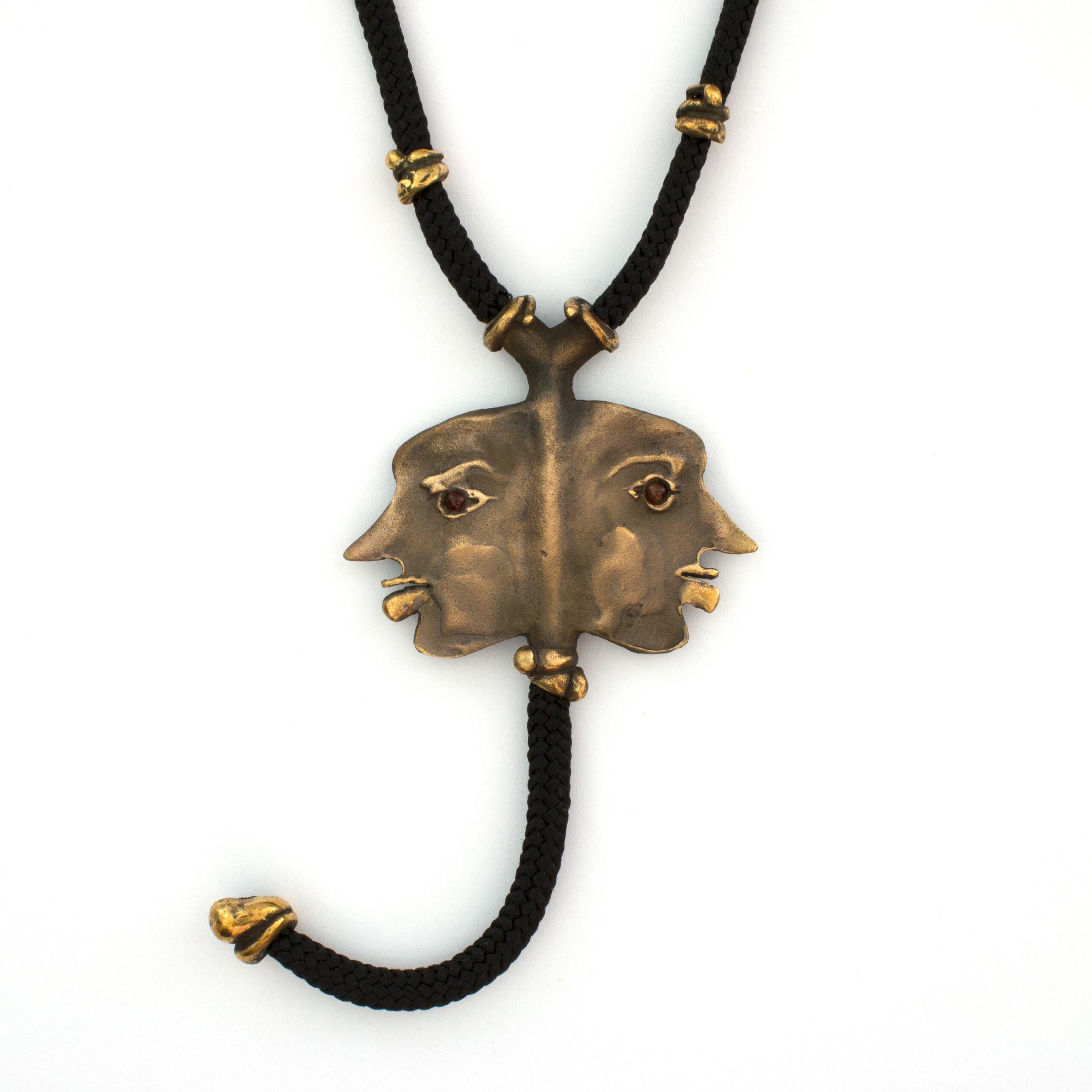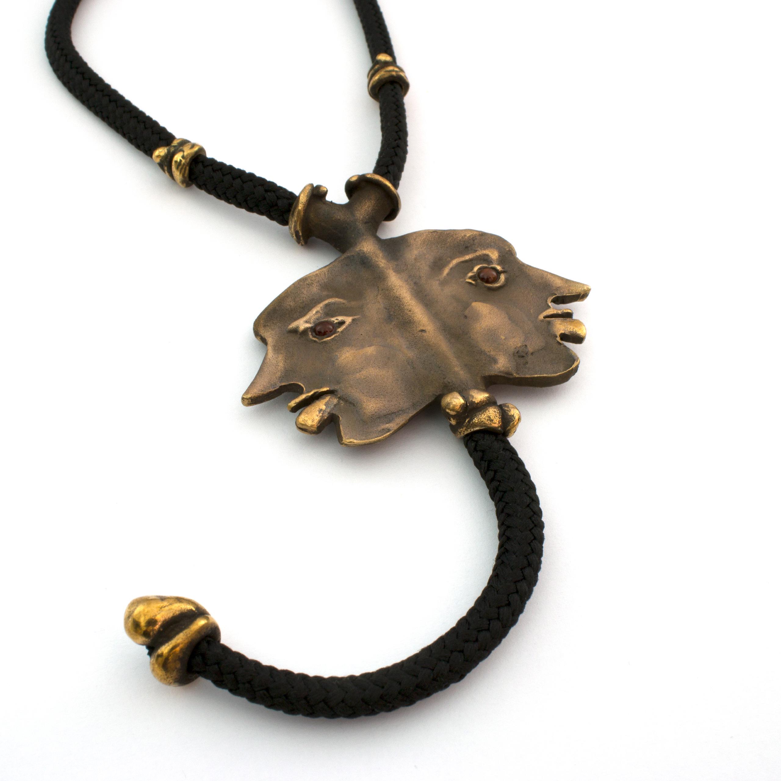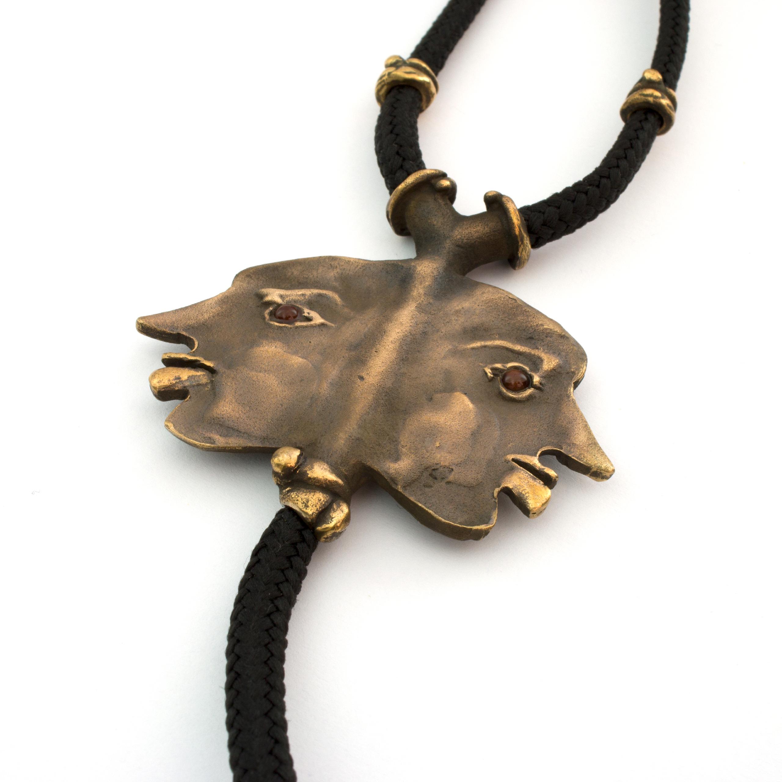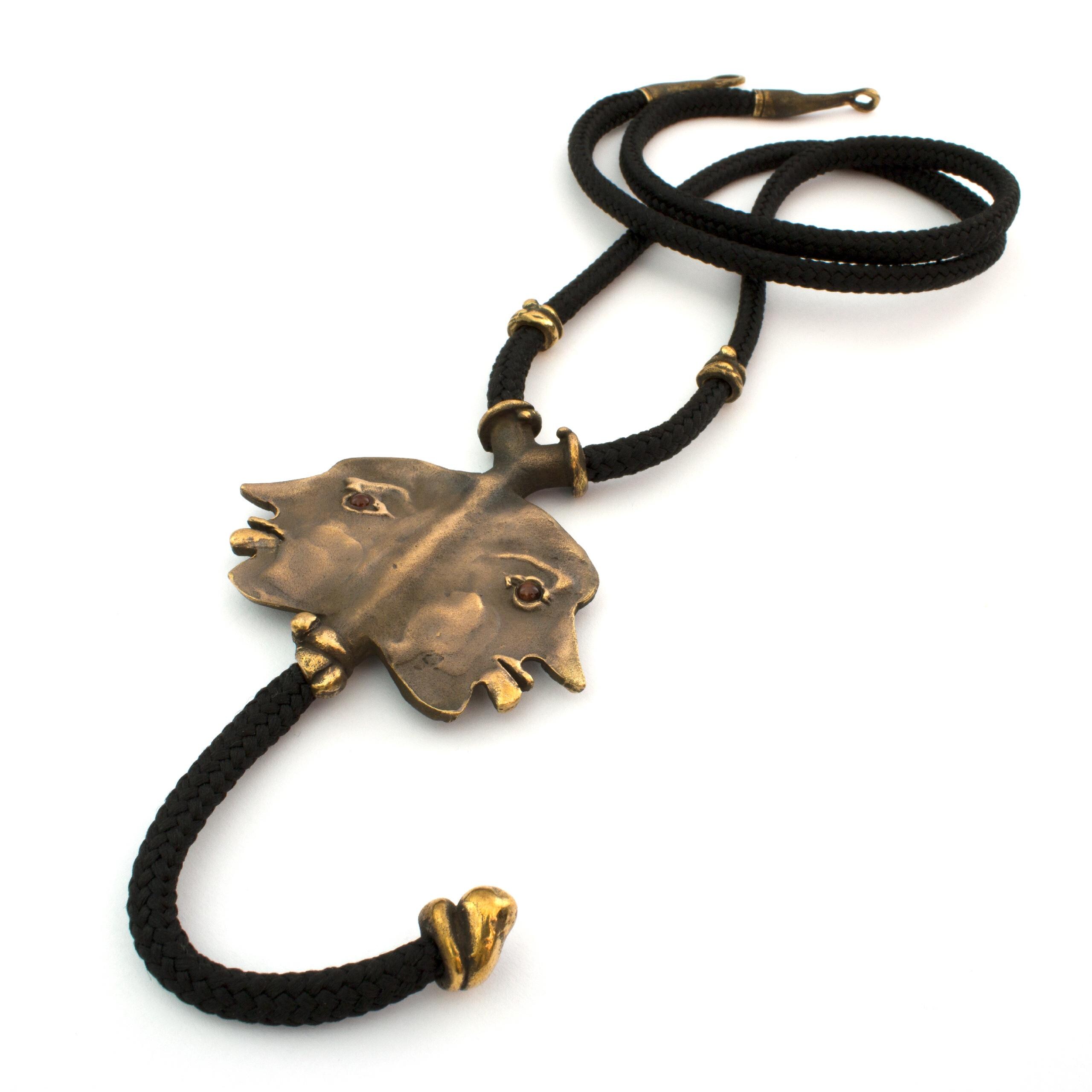 Bronzový závěs s býčím okem od Vojtěšky Vlčkové Katalogové číslo: 110 Autorka: Vojtěška Vlčková Realizace: Jaromíra Pavlíková Lití na ztracený vosk, bronz, býčí oko Délka cca 66 cm