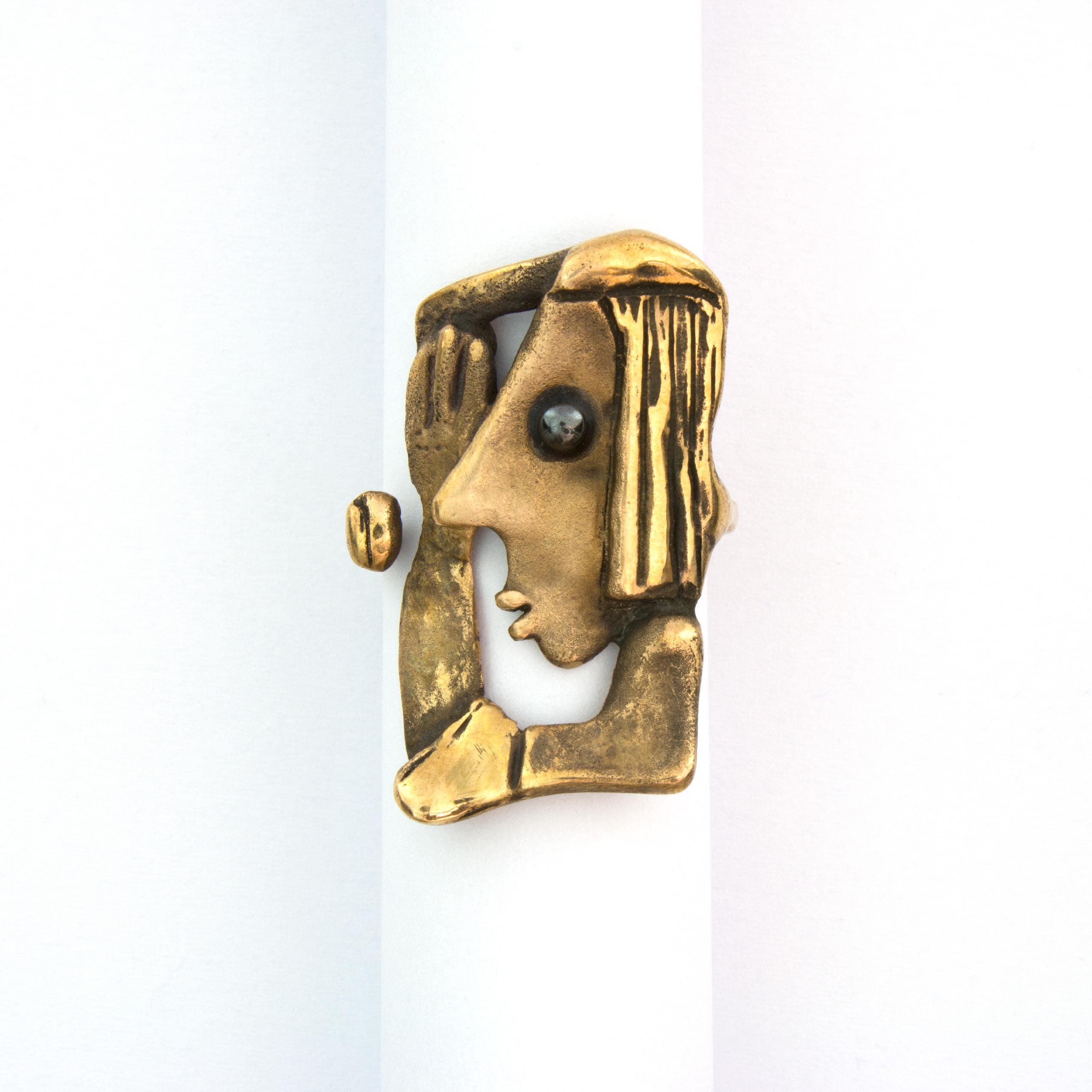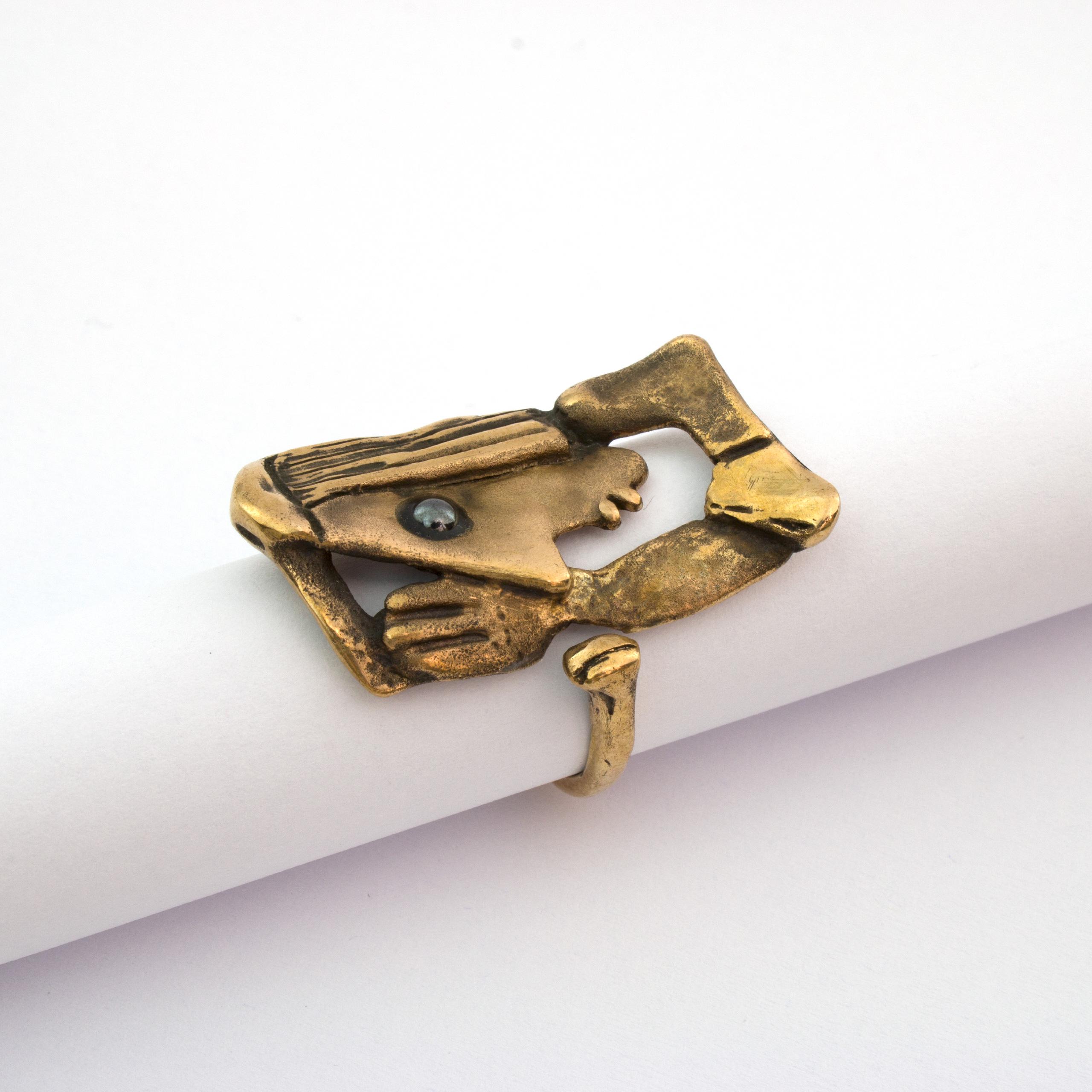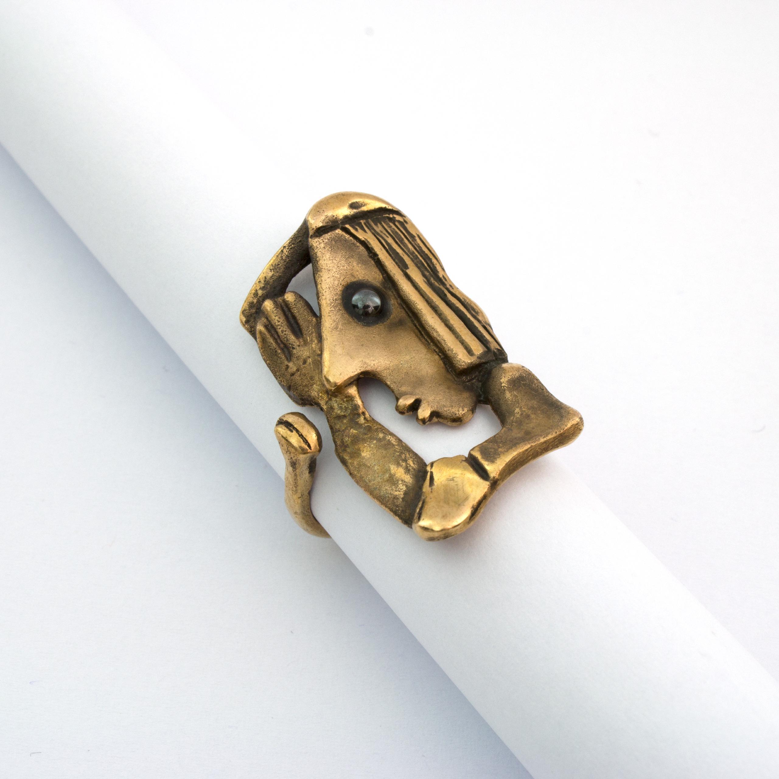 Bronzový prsten s hematitem od Vojtěšky Vlčkové Katalogové číslo: 117 Autorka: Vojtěška Vlčková Realizace: Jaromíra Pavlíková Lití na ztracený vosk, bronz, hematit