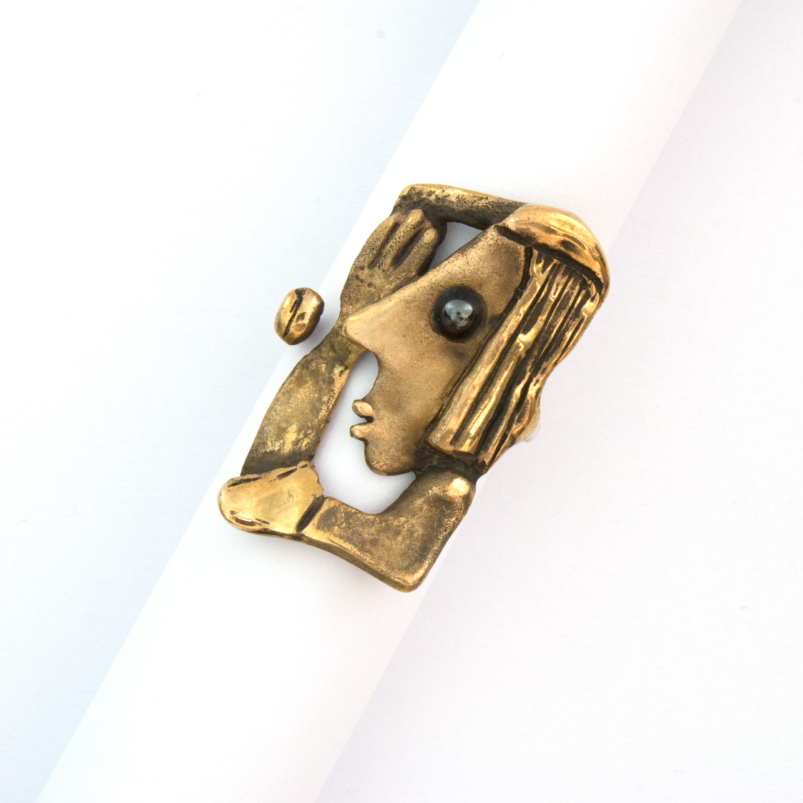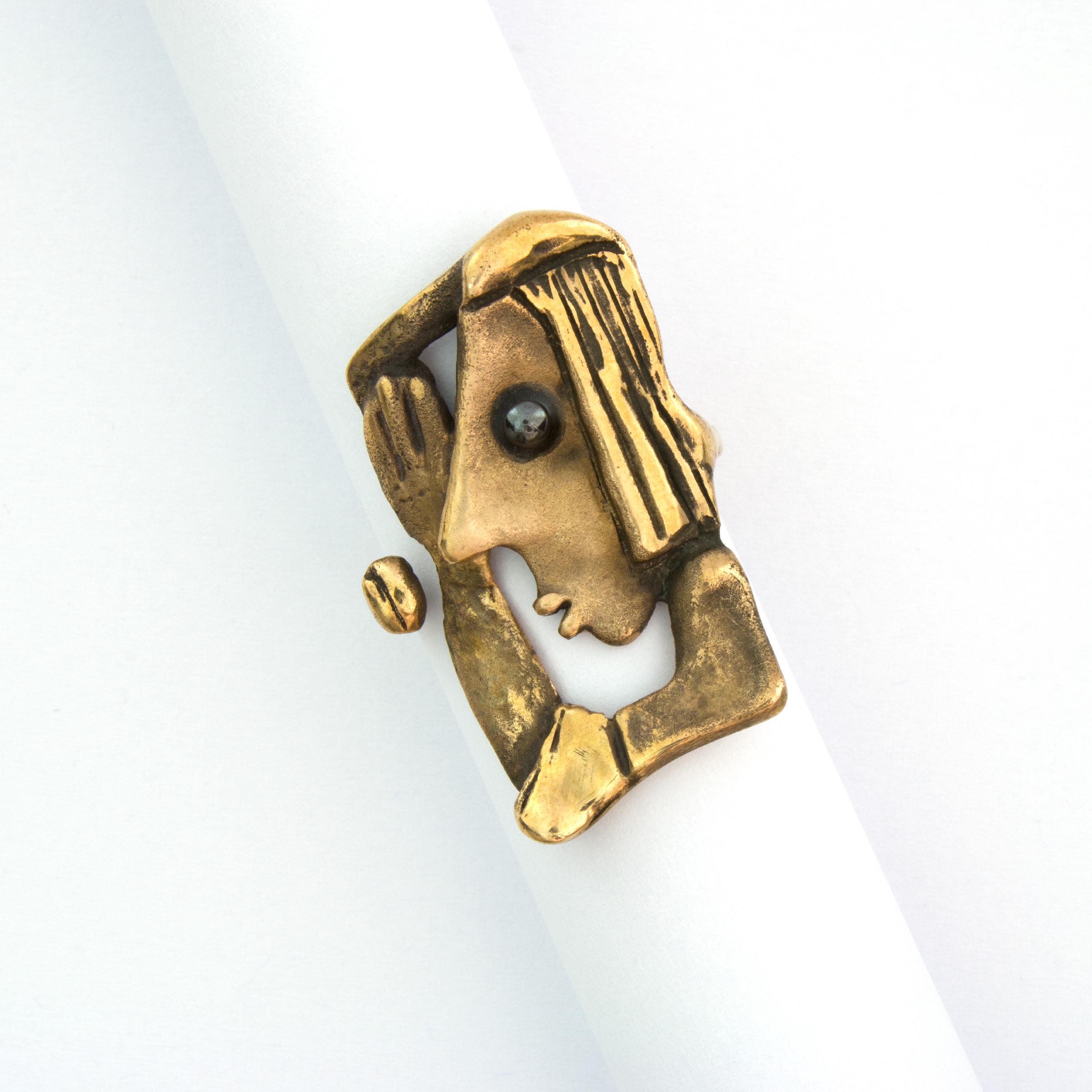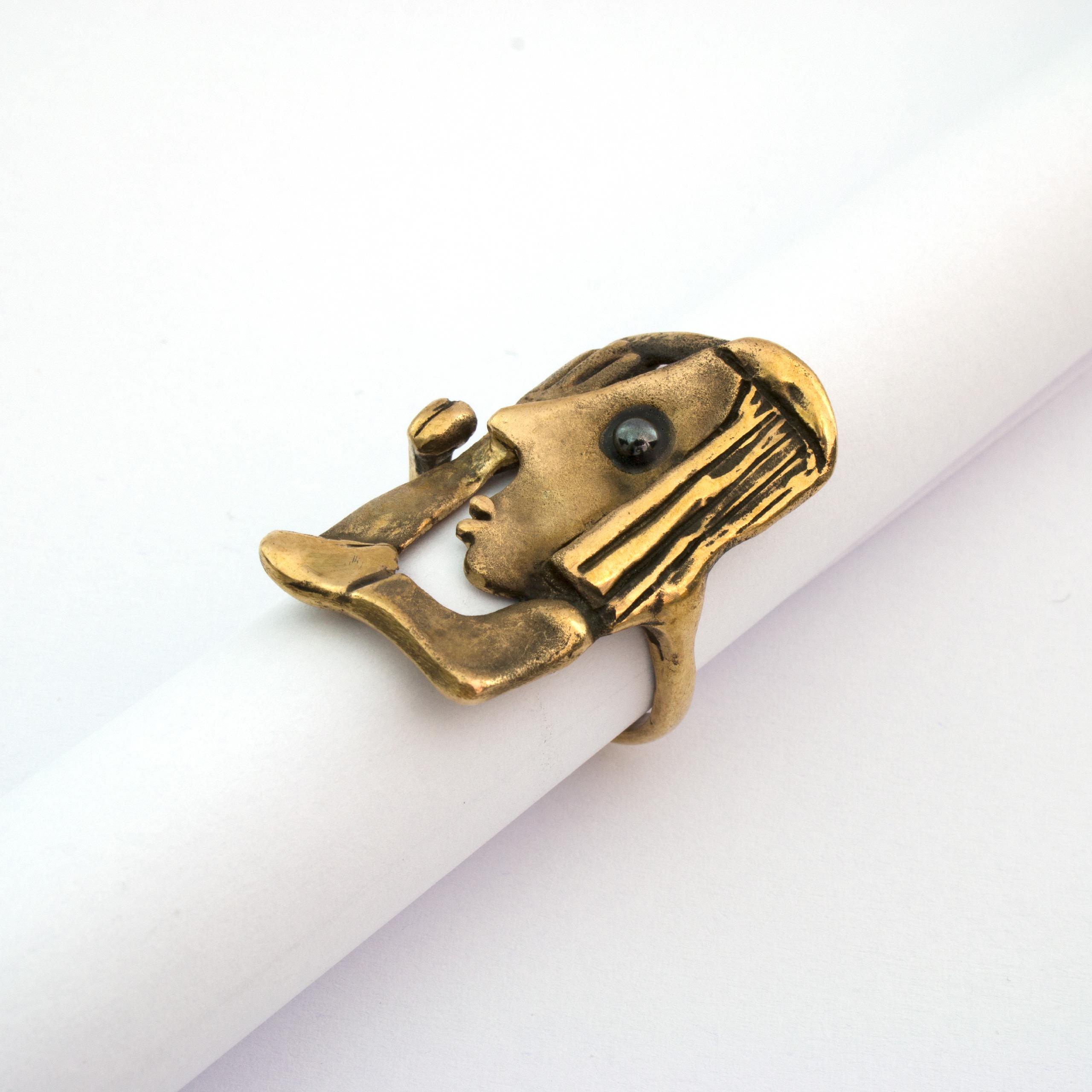 Bronzový prsten s hematitem od Vojtěšky Vlčkové Katalogové číslo: 117 Autorka: Vojtěška Vlčková Realizace: Jaromíra Pavlíková Lití na ztracený vosk, bronz, hematit