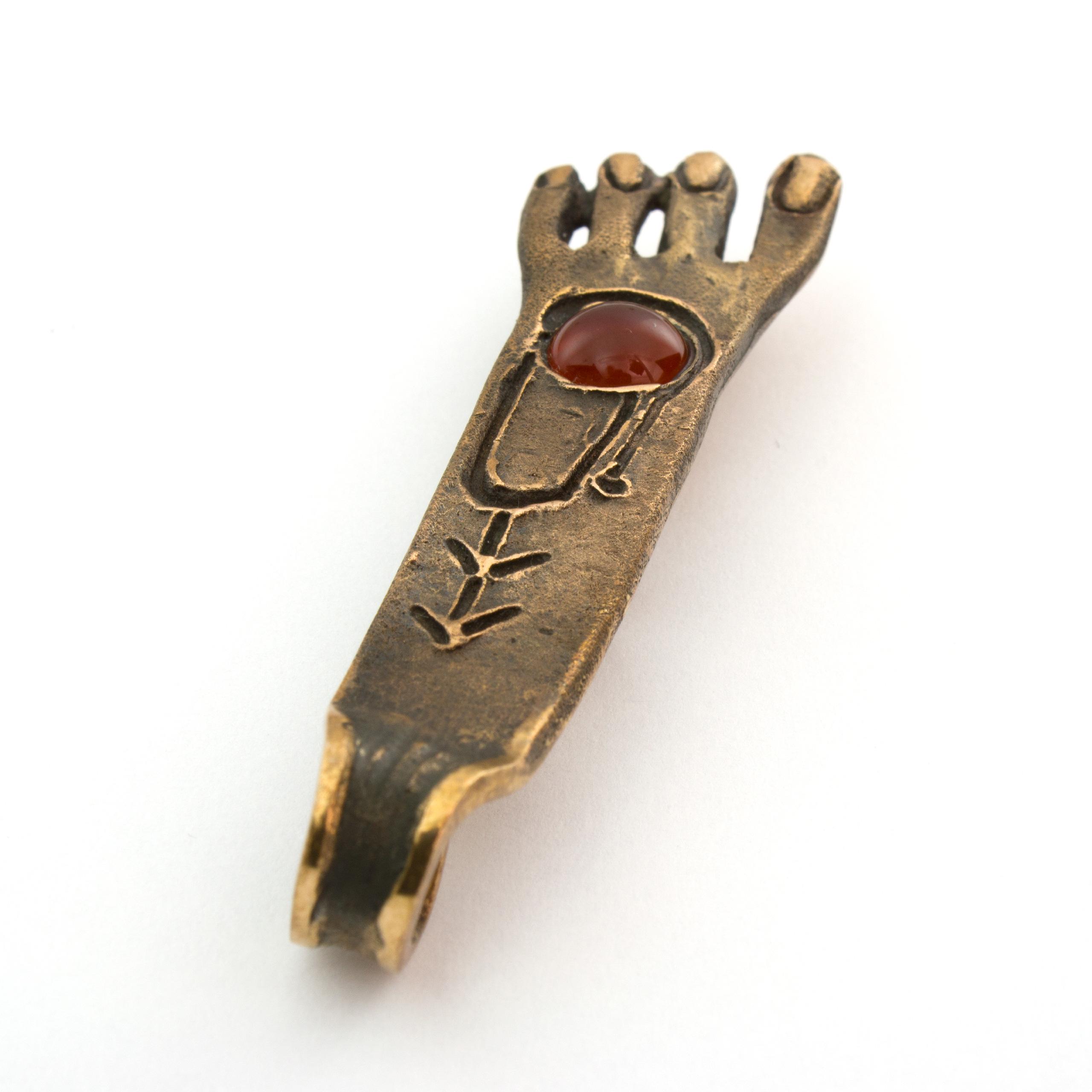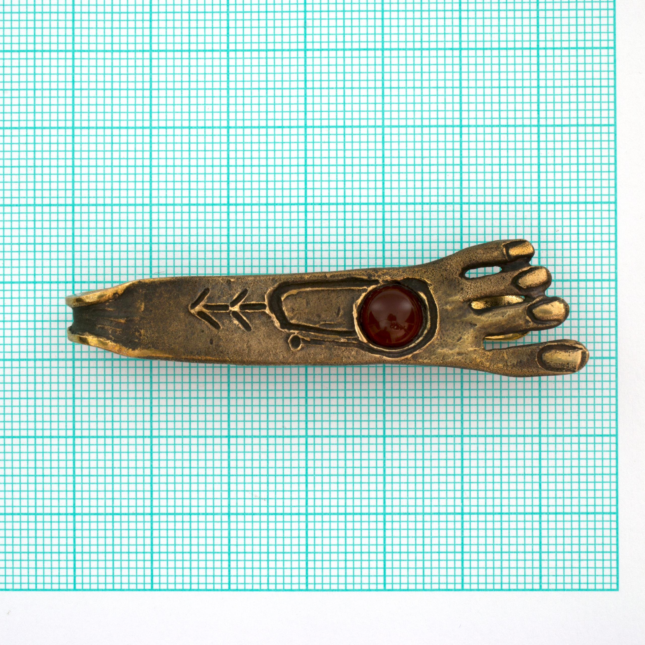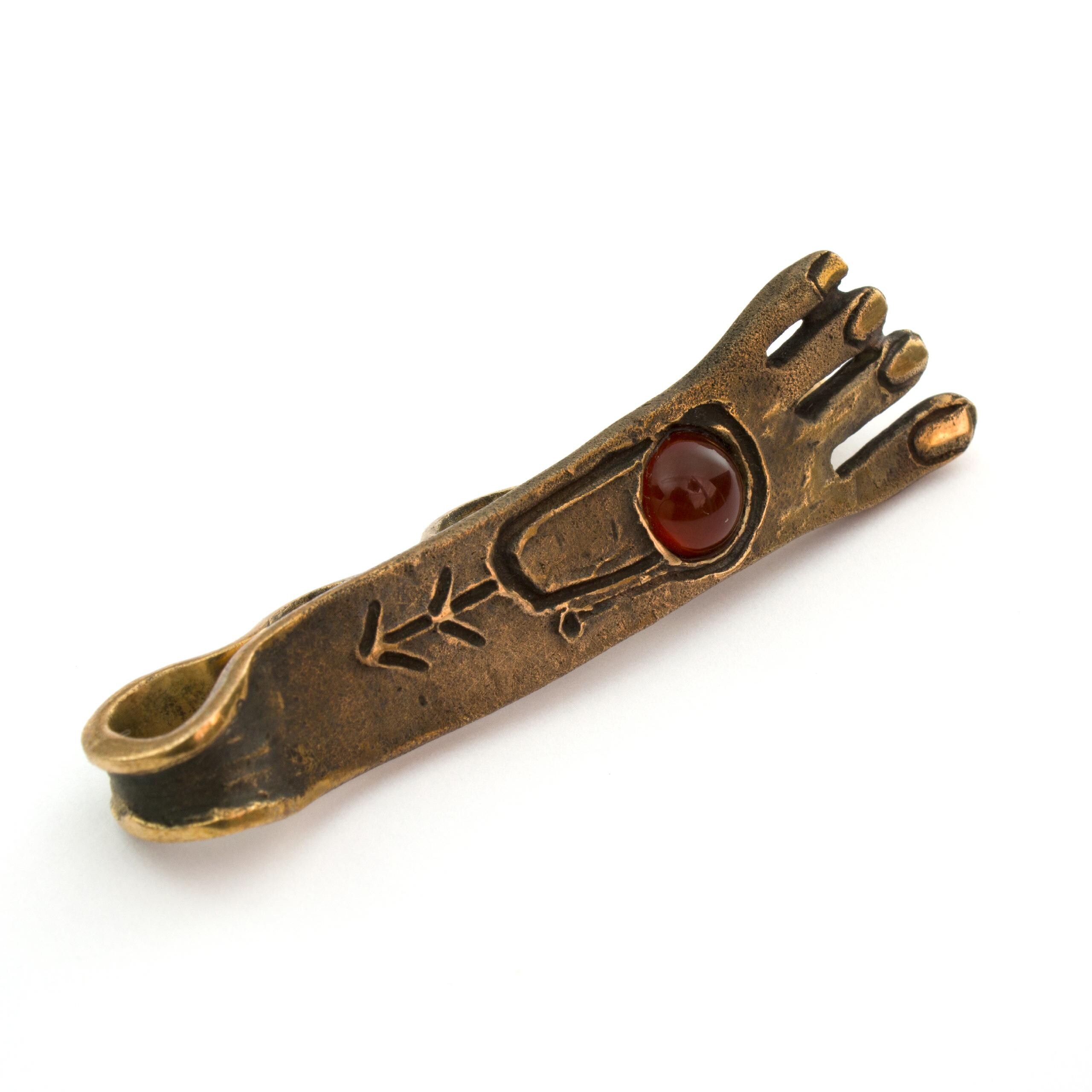 Bronzová kravatová spona s karneolem od Vojtěšky Vlčkové