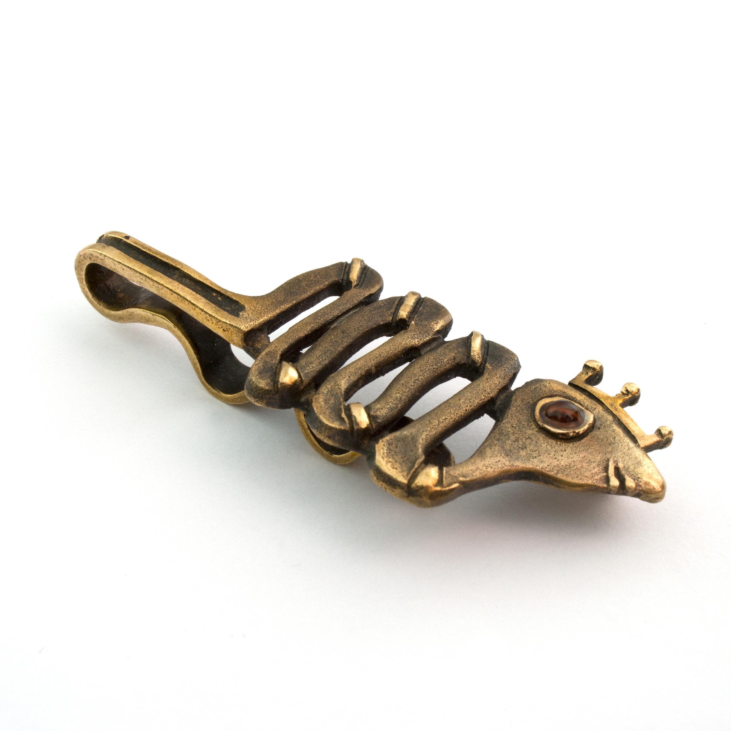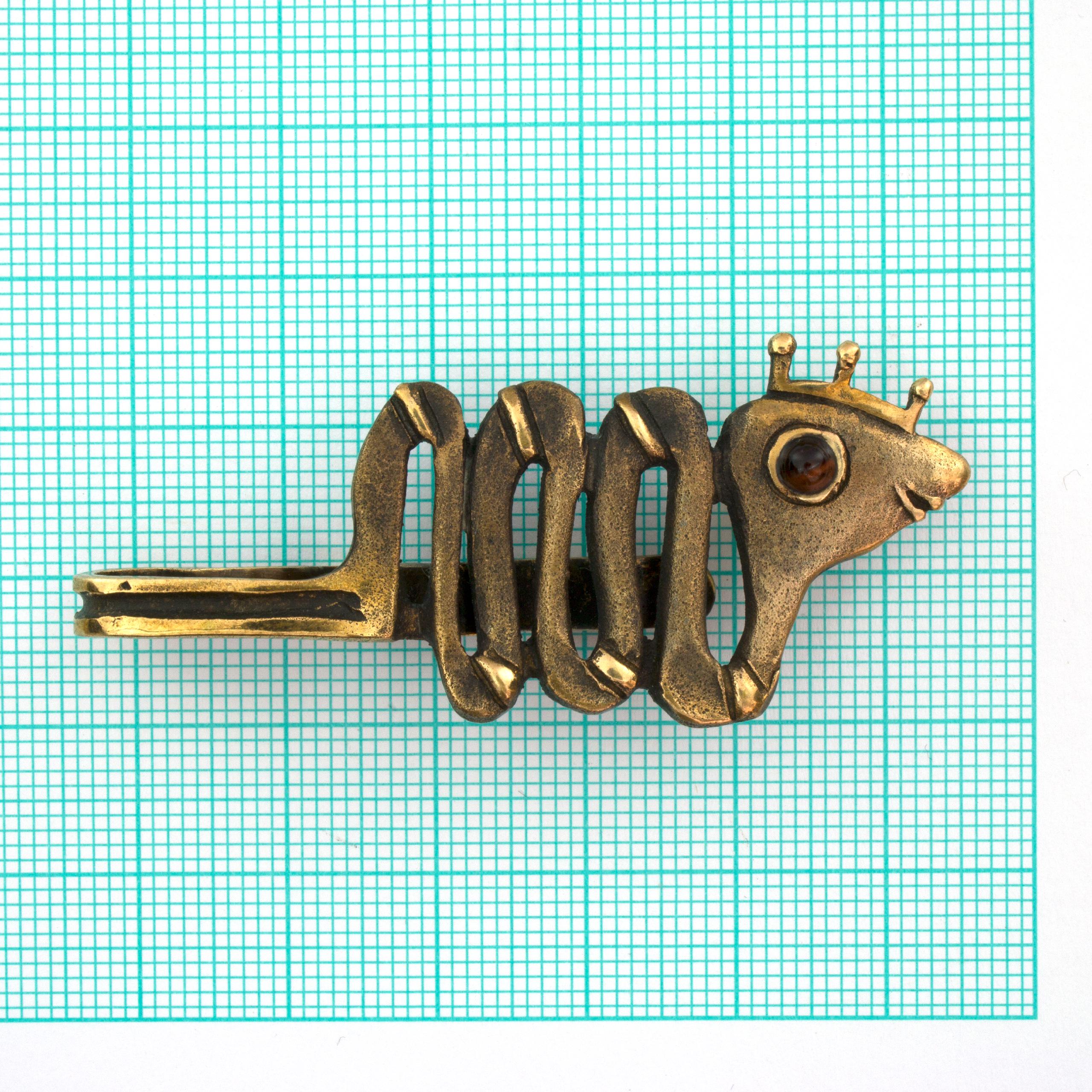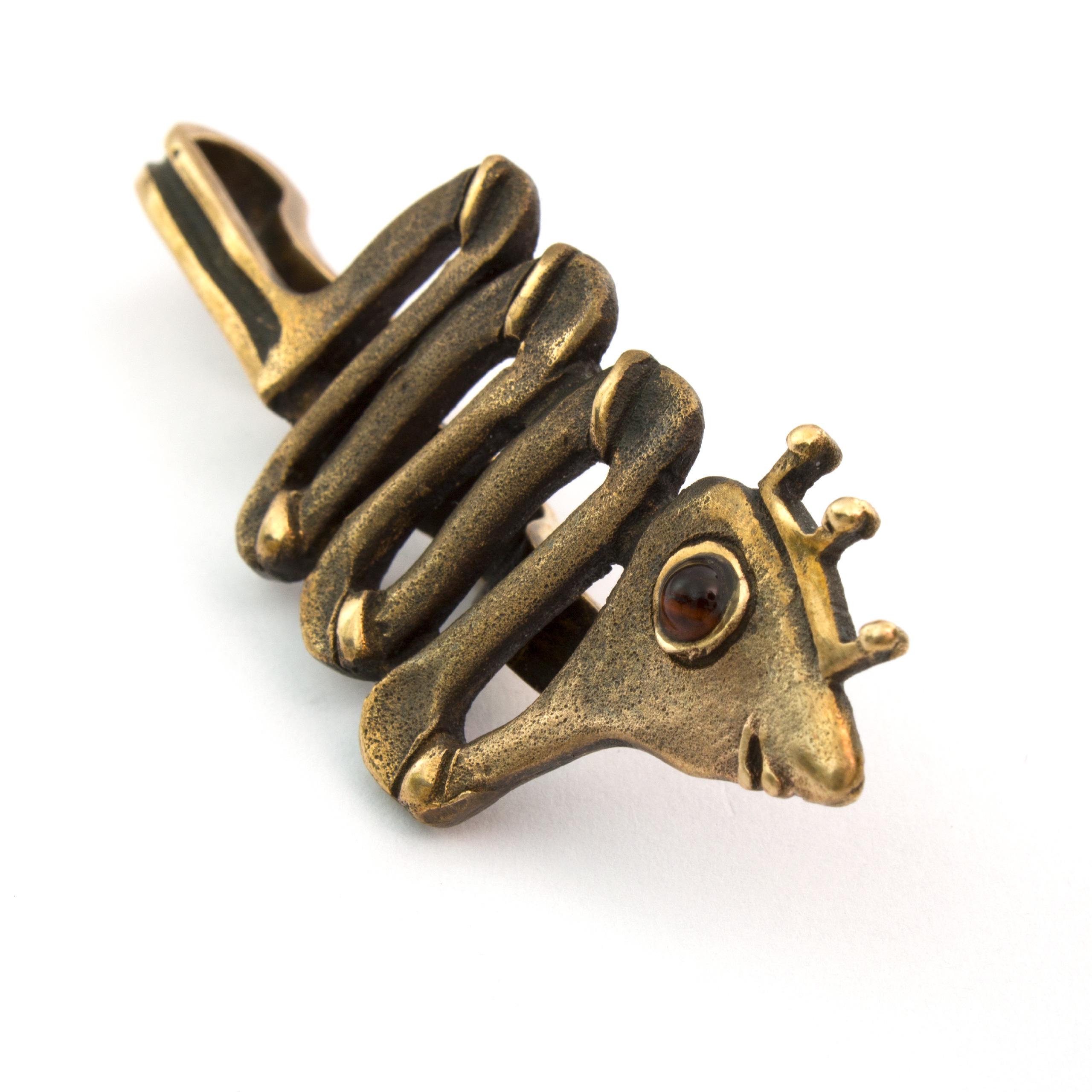 Bronzová kravatová spona s tygřím okem od Vojtěšky Vlčkové Katalogové číslo: 134 Autorka: Vojtěška Vlčková Realizace: Jaromíra Pavlíková Lití na ztracený vosk, bronz, tygří oko