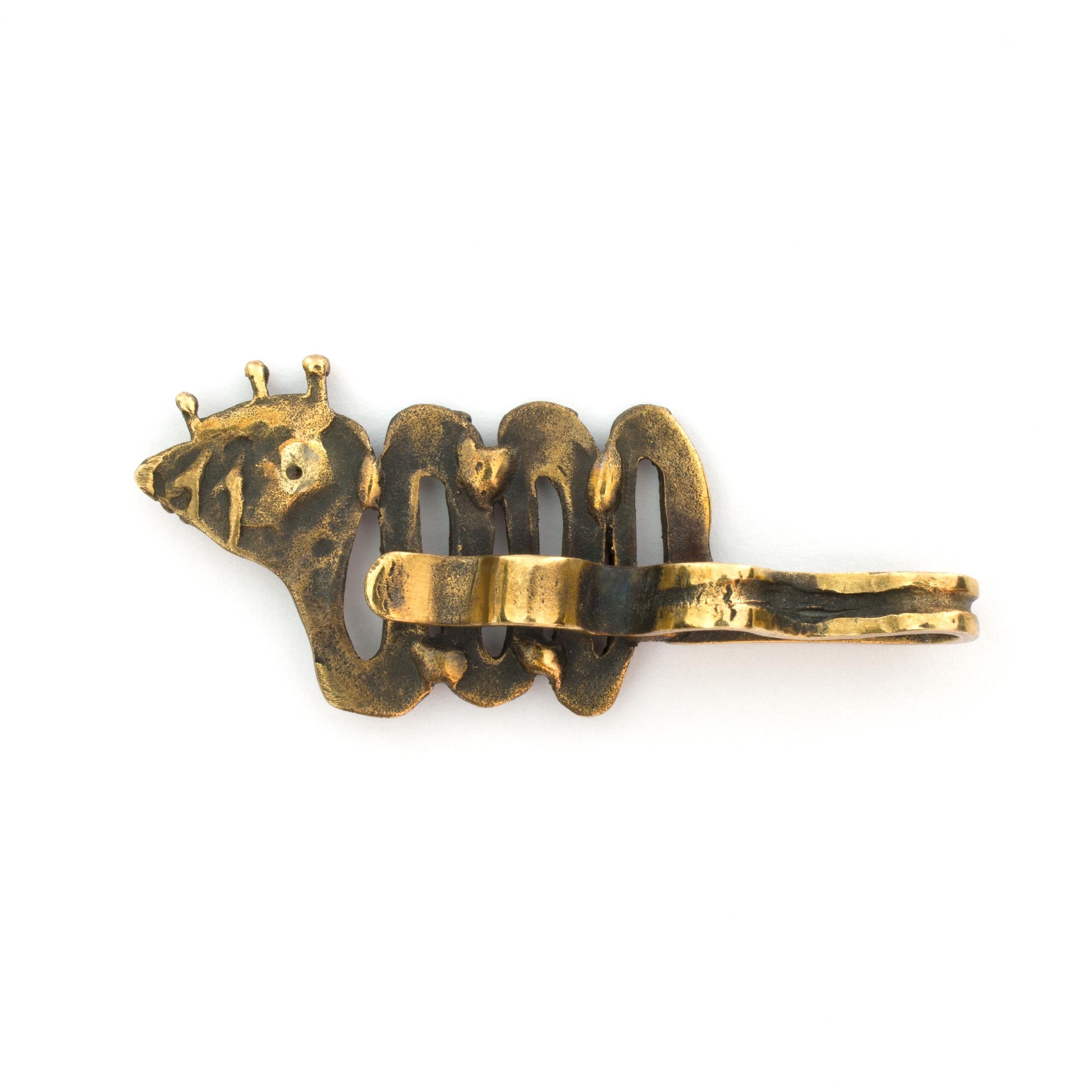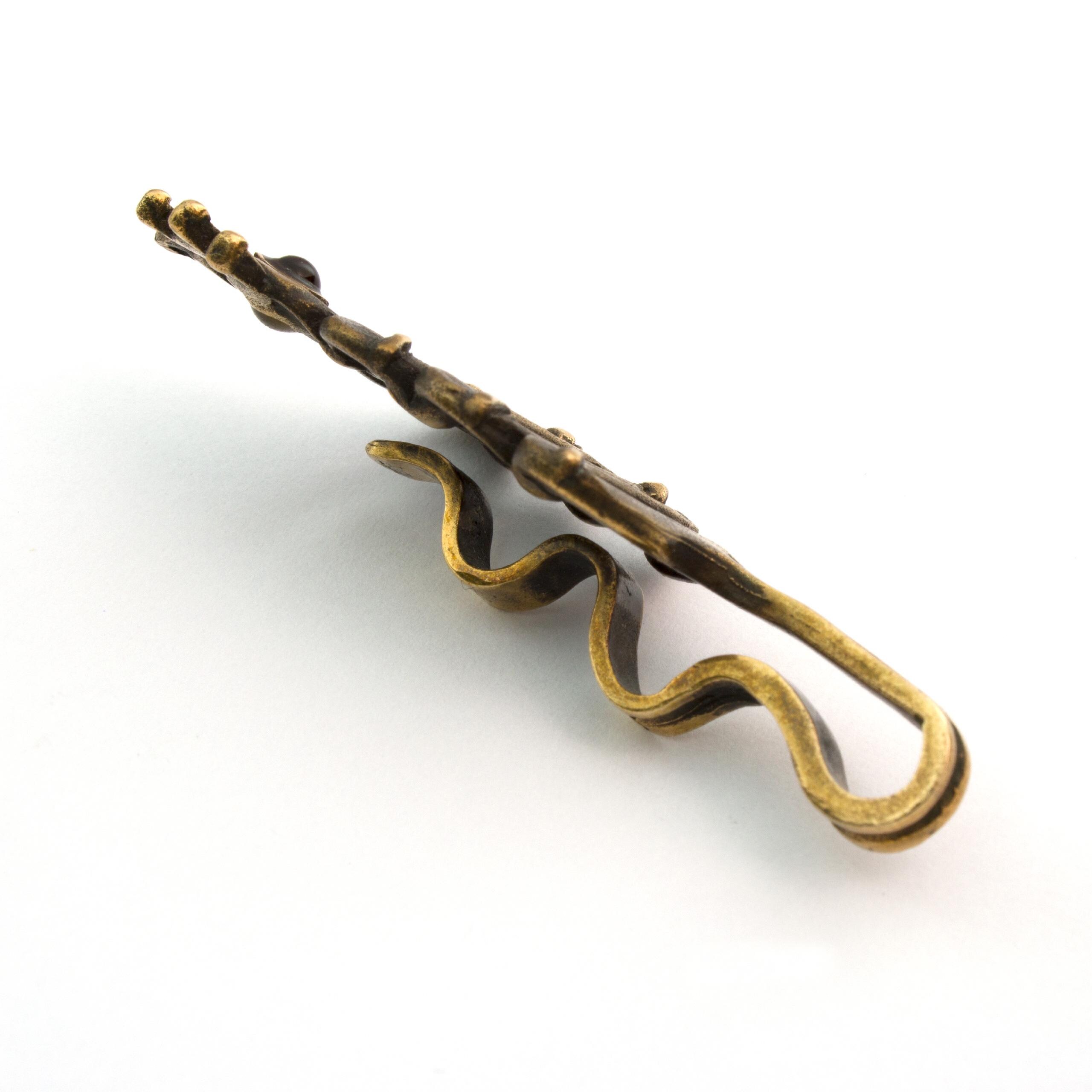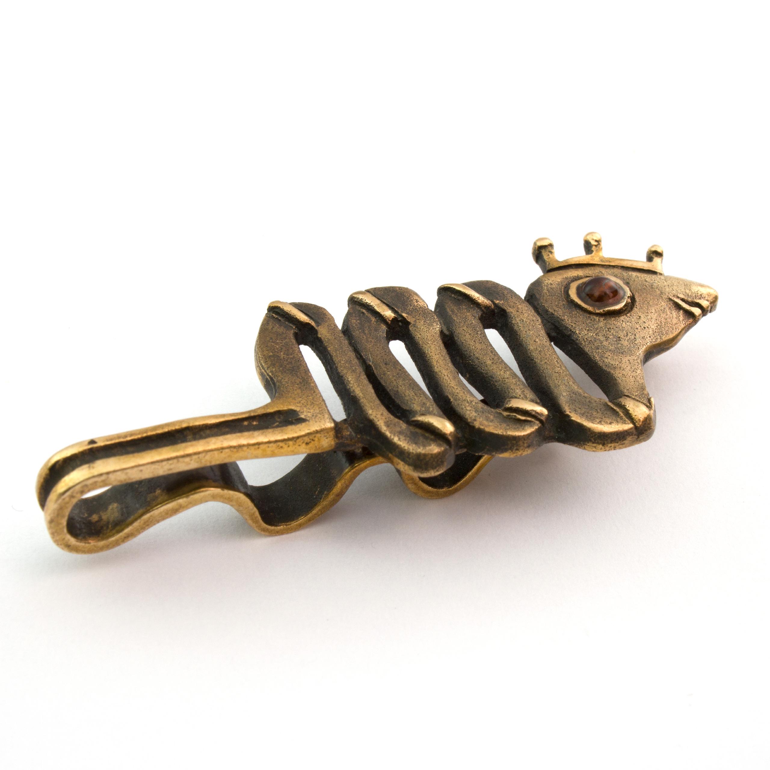 Bronzová kravatová spona s tygřím okem od Vojtěšky Vlčkové Katalogové číslo: 134 Autorka: Vojtěška Vlčková Realizace: Jaromíra Pavlíková Lití na ztracený vosk, bronz, tygří oko