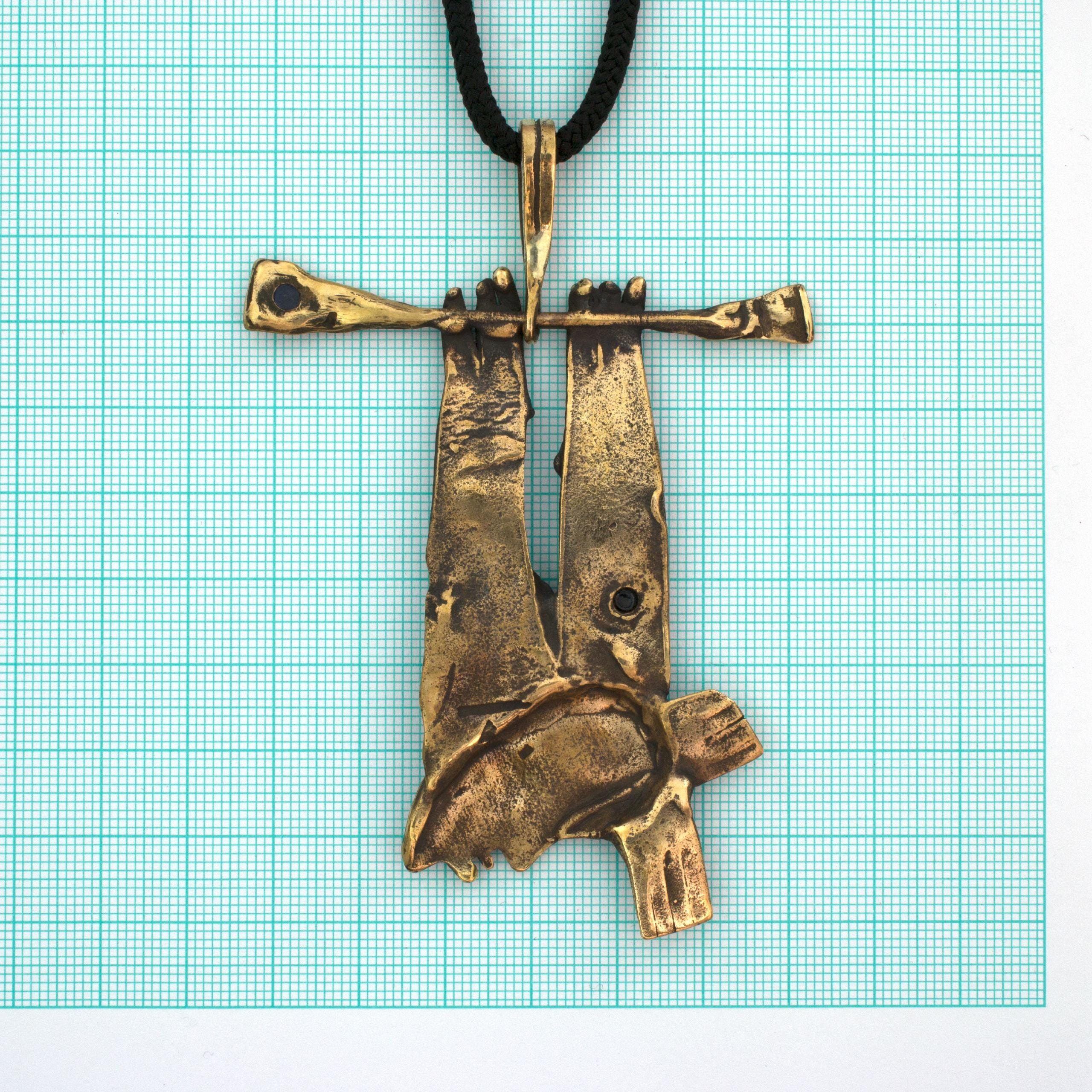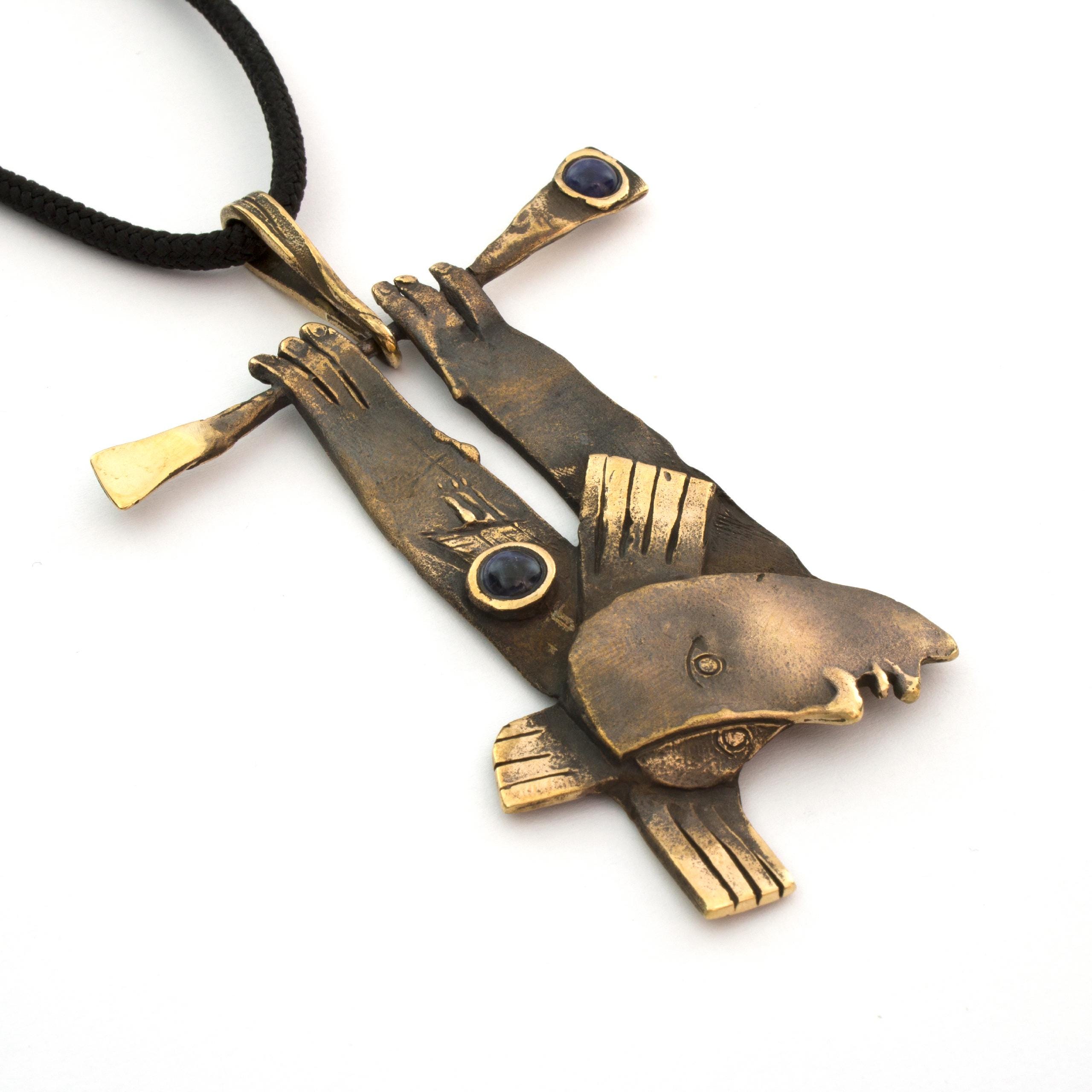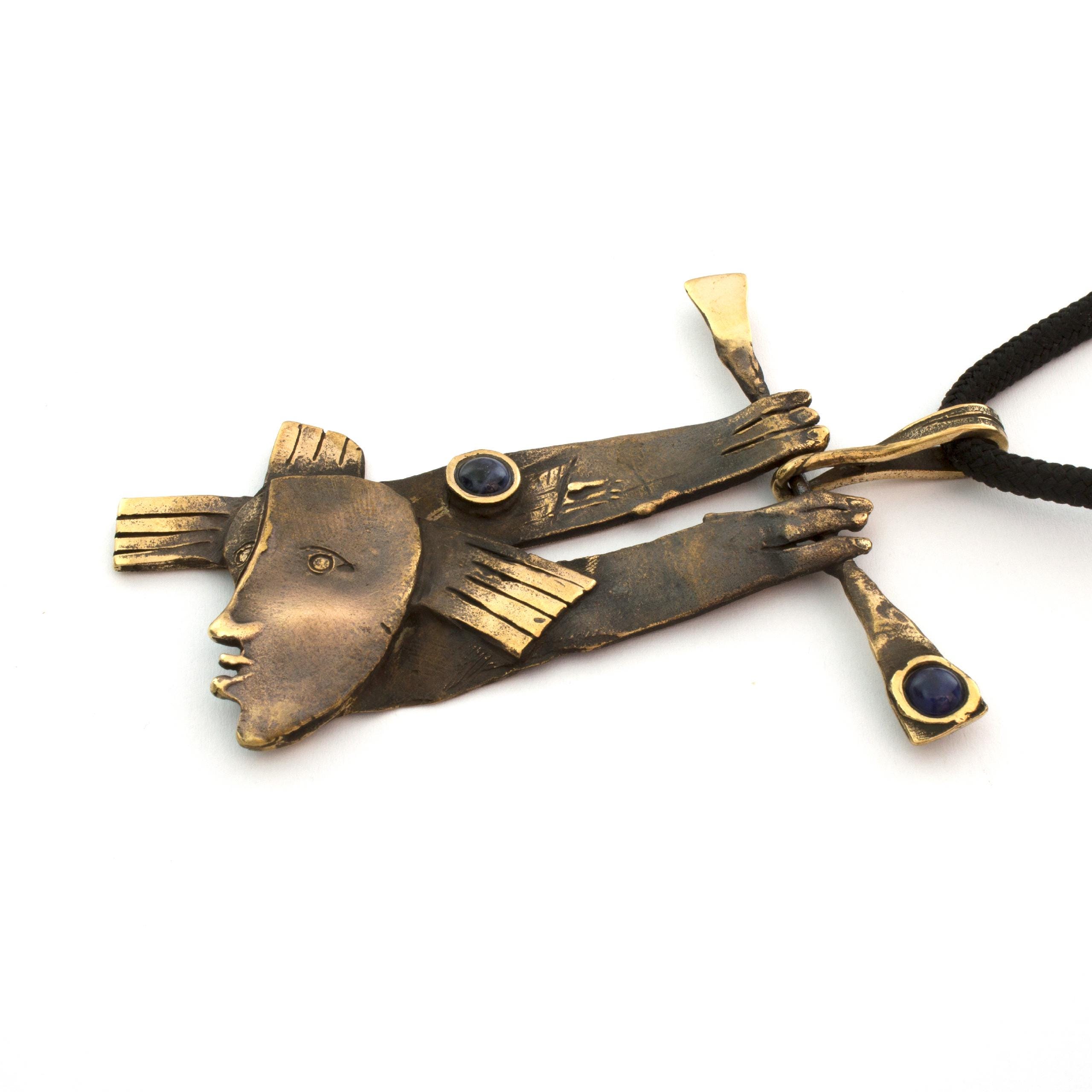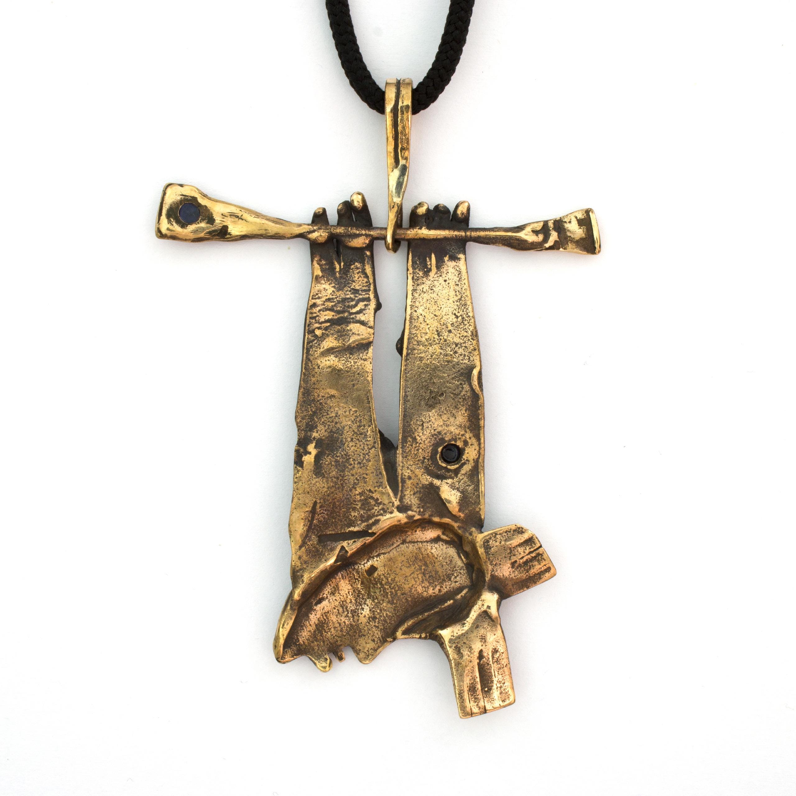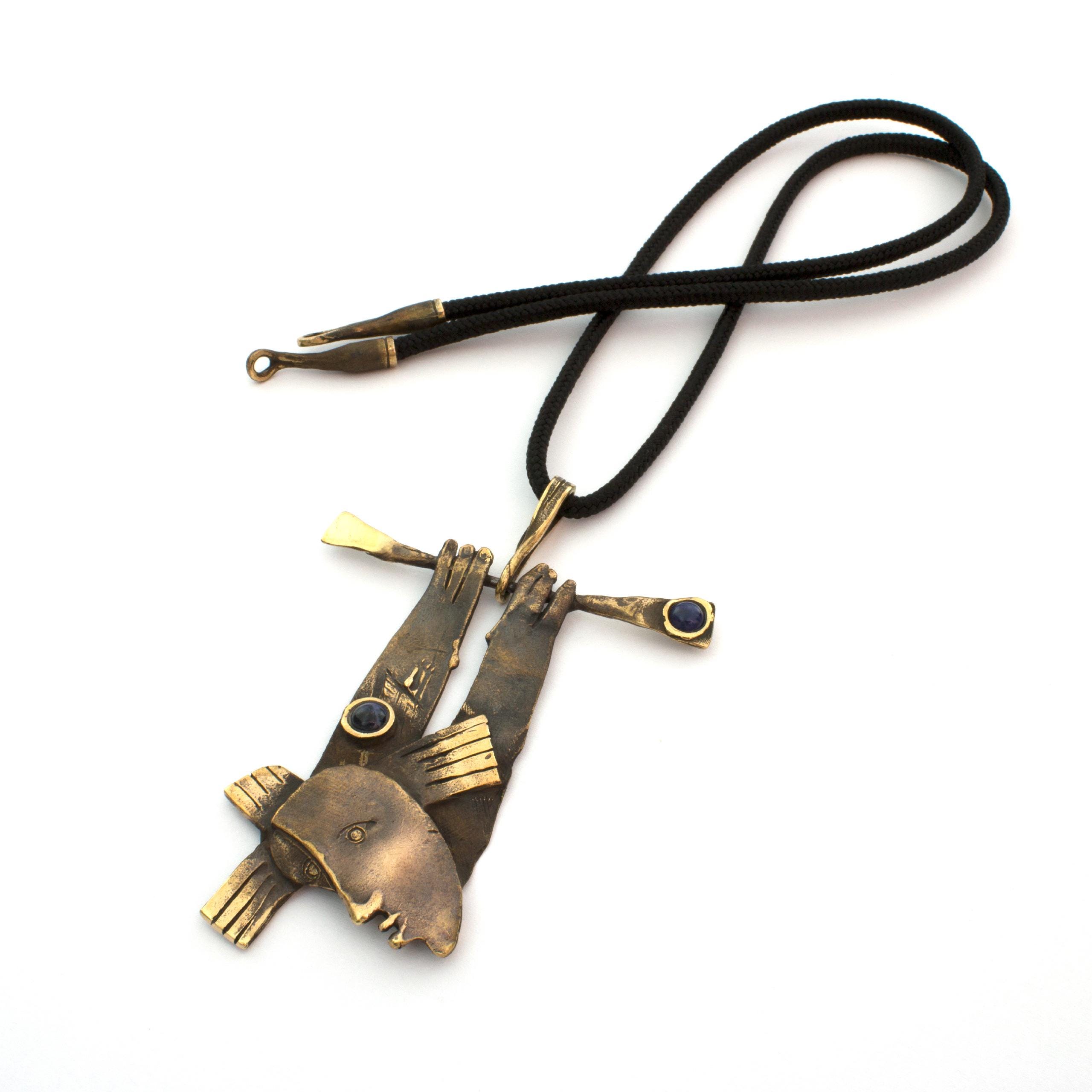 Bronzový závěs se sodalitem od Vojtěšky Vlčkové Katalogové číslo: 161 Autorka: Vojtěška Vlčková Realizace: Jaromíra Pavlíková Lití na ztracený vosk, bronz, sodalit Délka cca 65 cm
