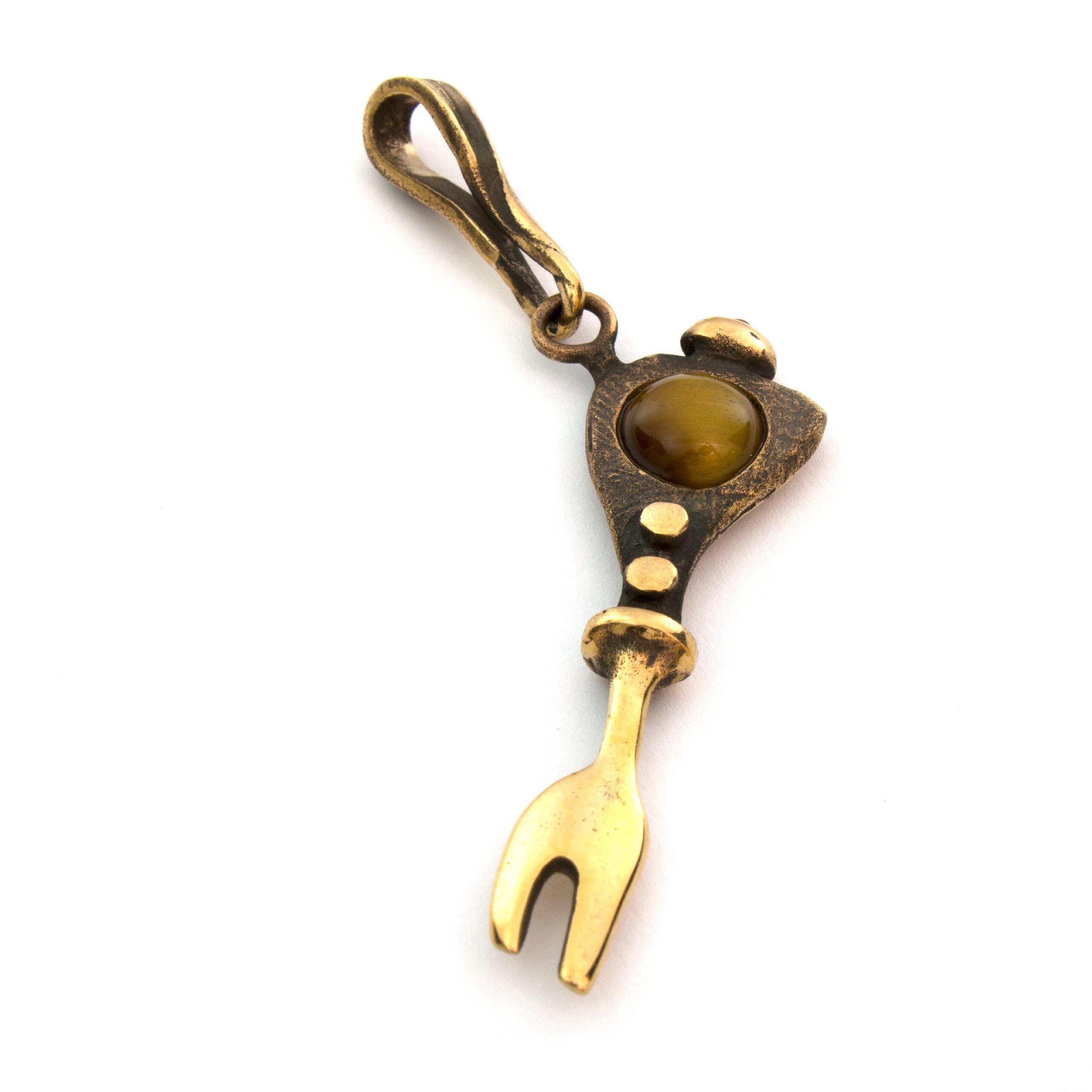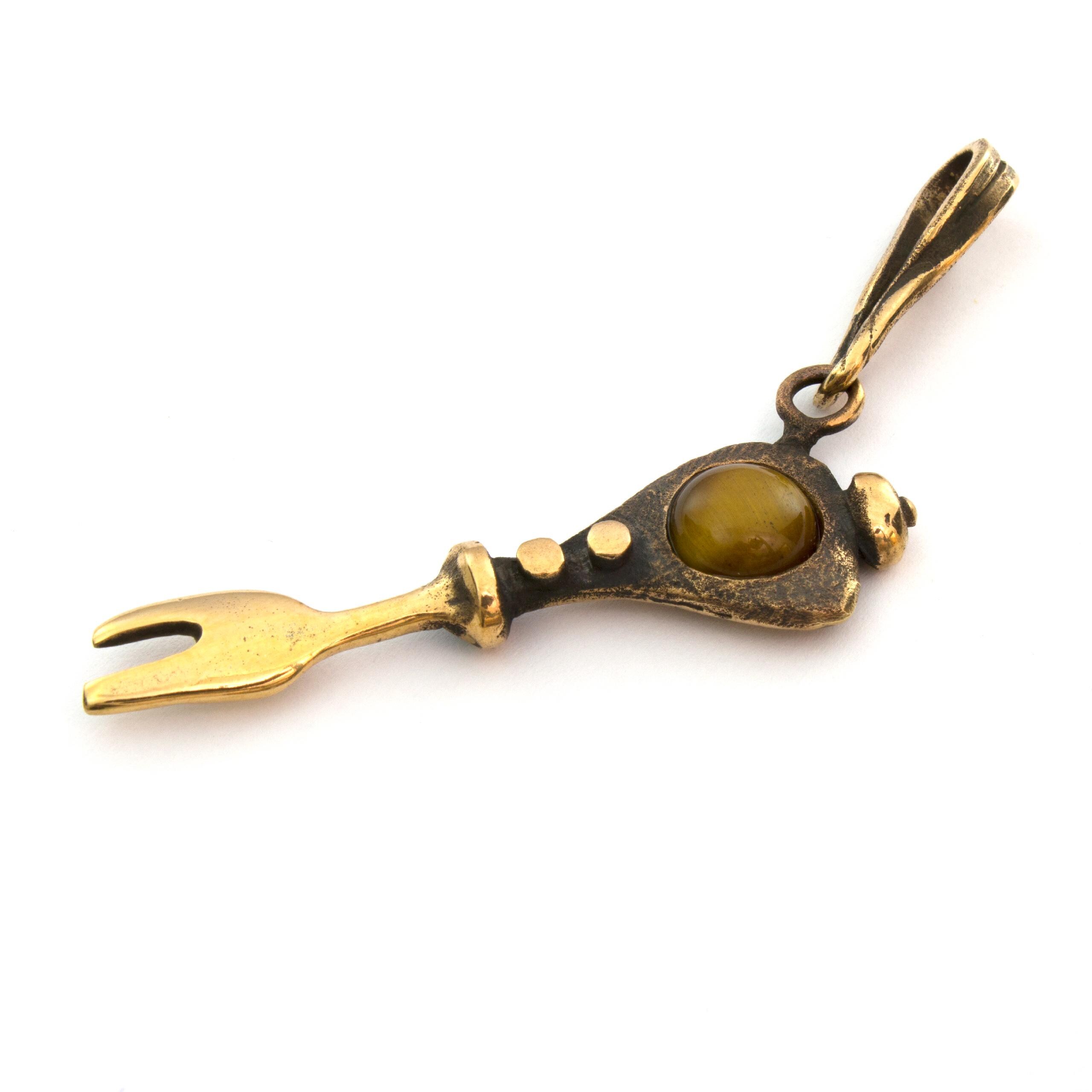 Bronzový přívěsek s tygřím okem od Vojtěšky Vlčkové Katalogové číslo: 167 Autorka: Vojtěška Vlčková Realizace: Jaromíra Pavlíková Lití na ztracený vosk, bronz, tygří oko