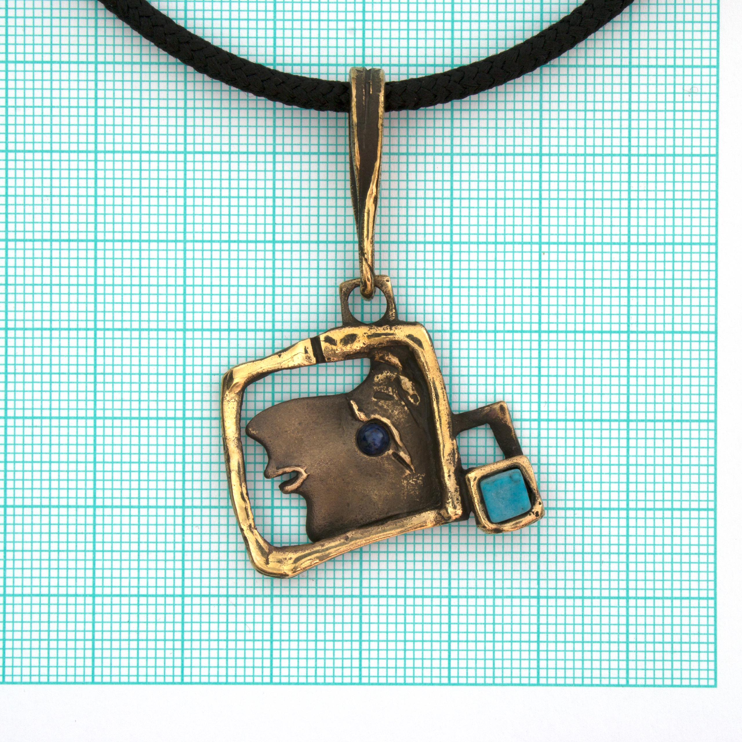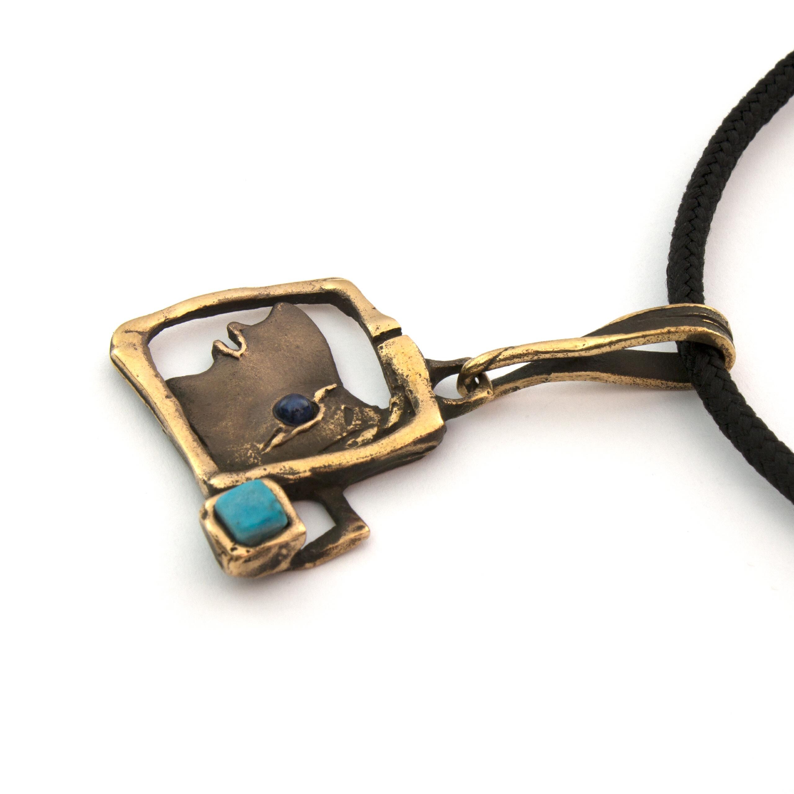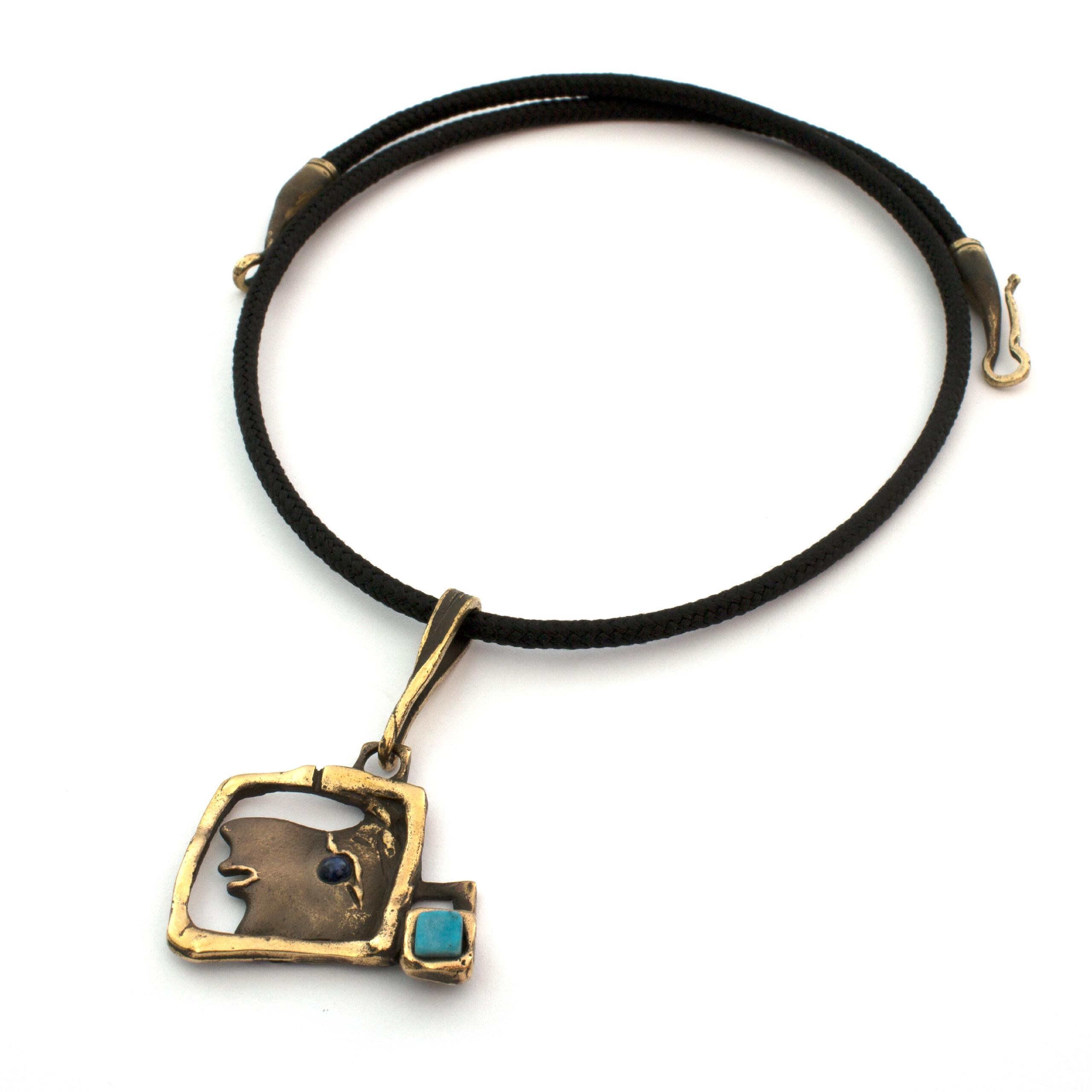Bronzový náhrdelník s tyrkenitem a sodalitem od Vojtěšky Vlčkové