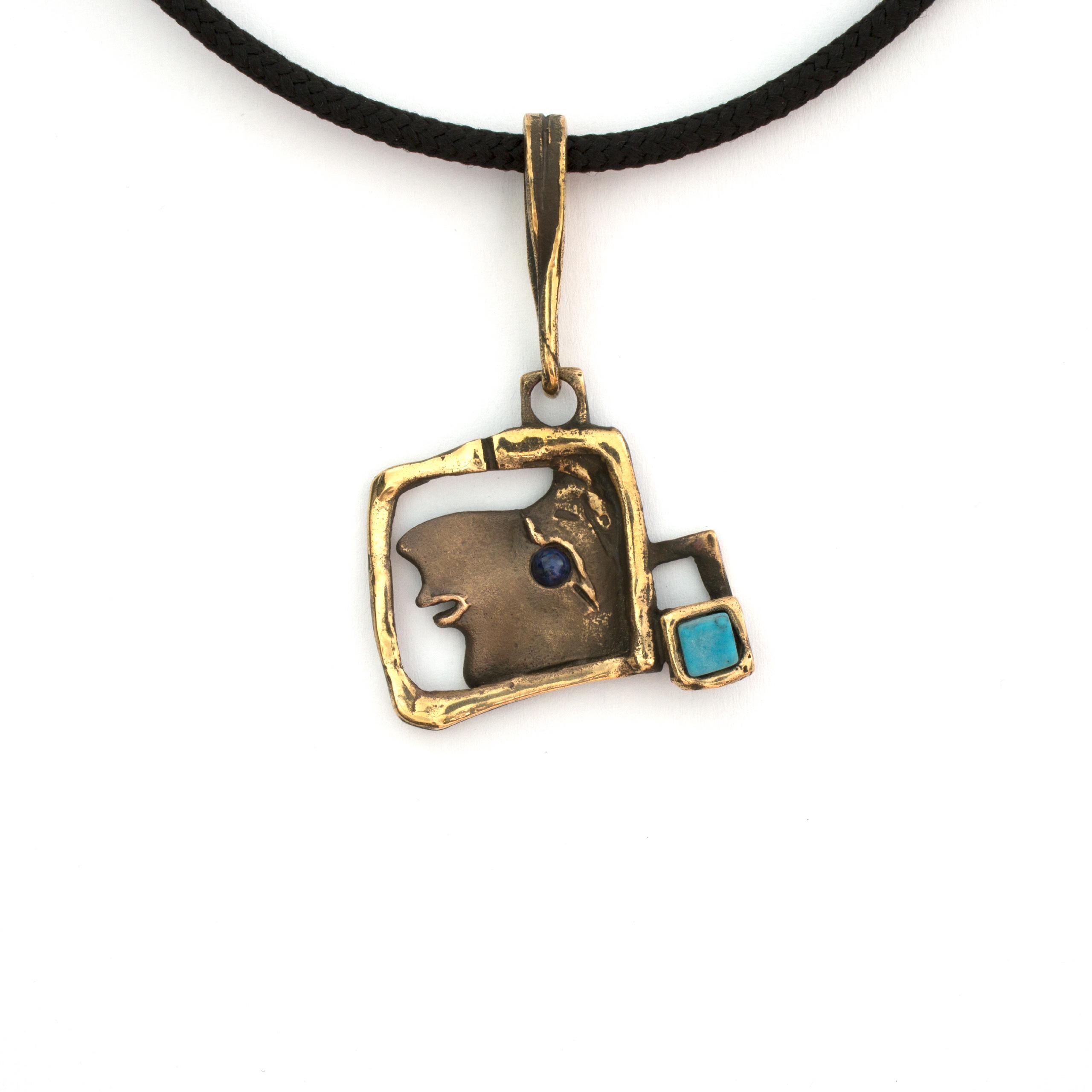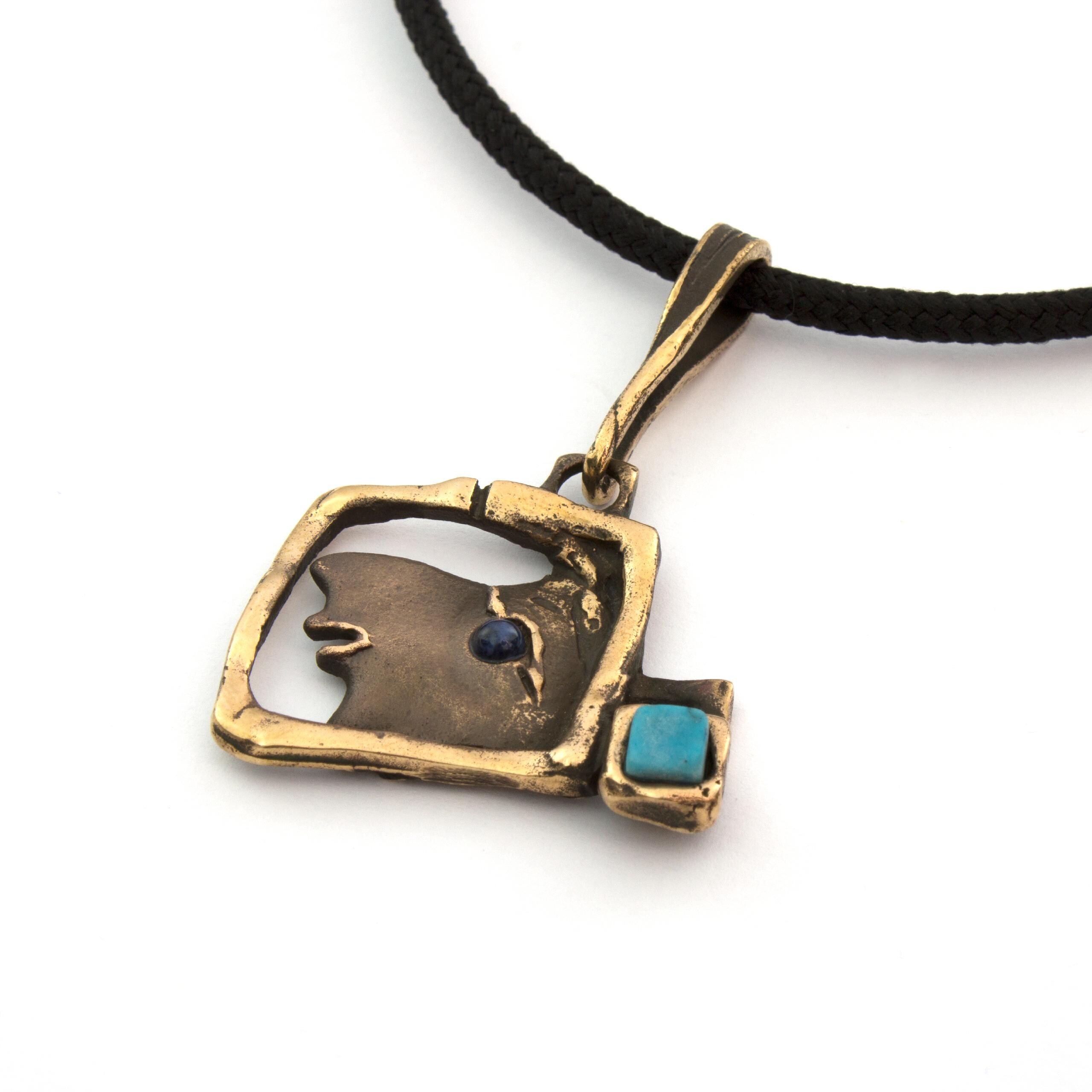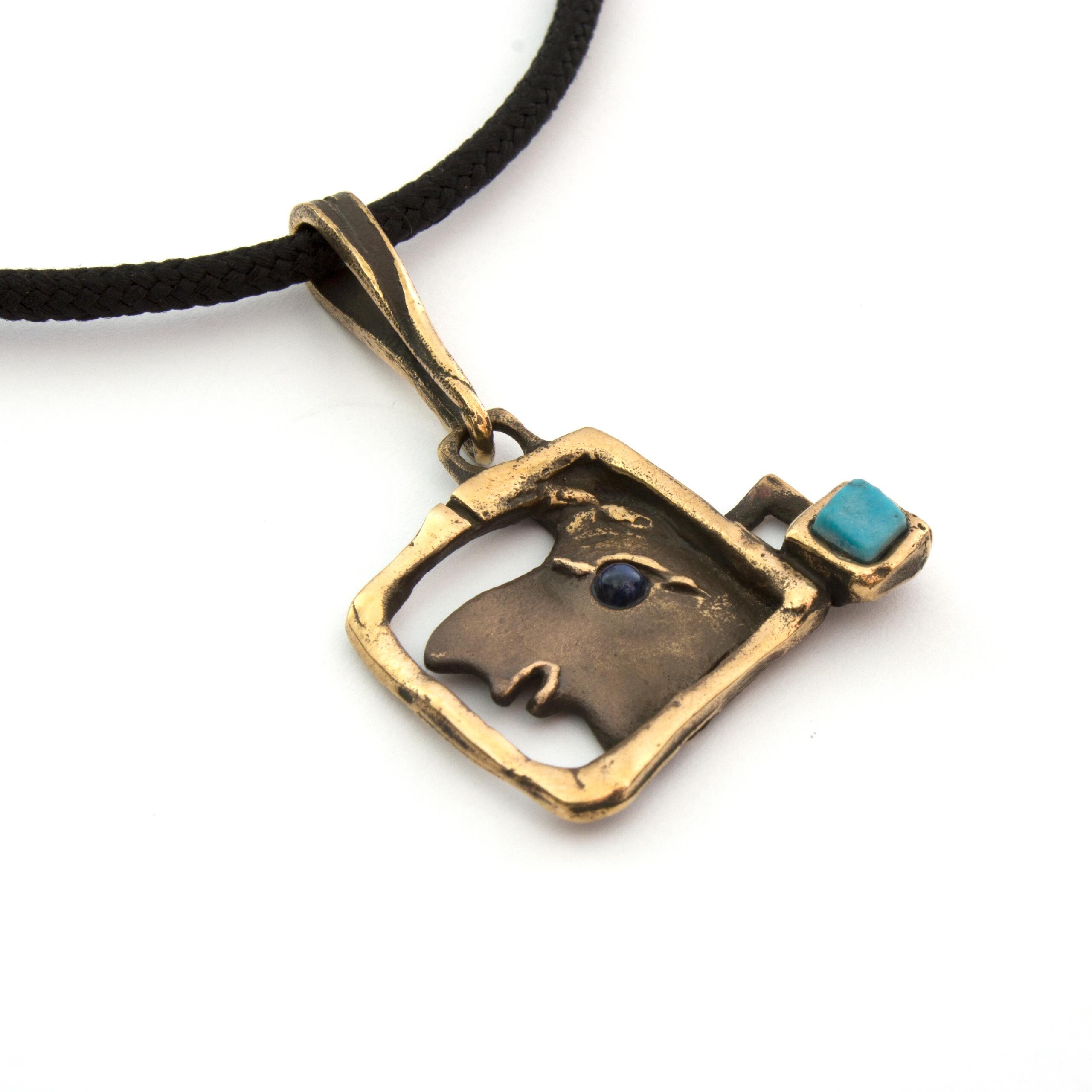 Bronzový náhrdelník s tyrkenitem a sodalitem od Vojtěšky Vlčkové