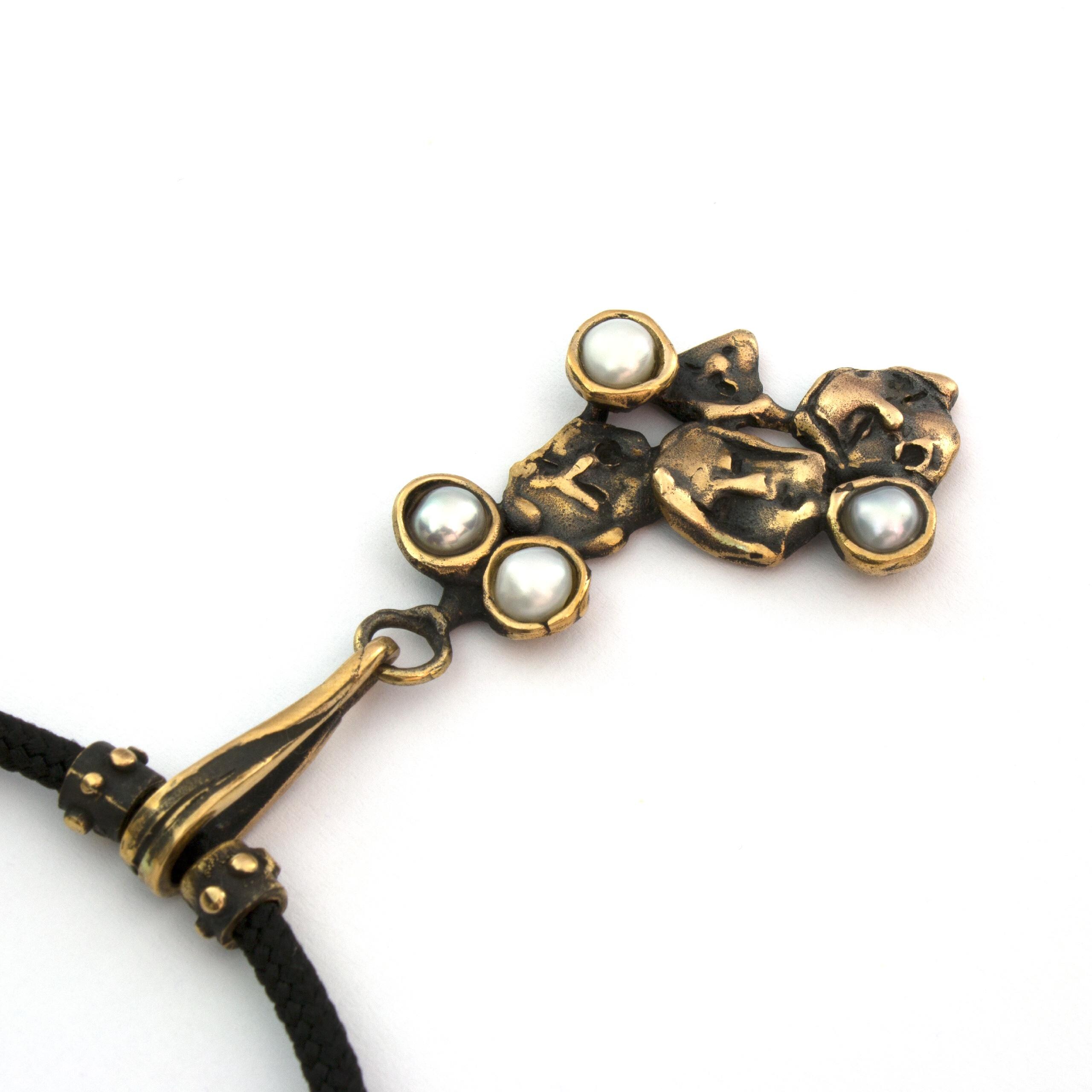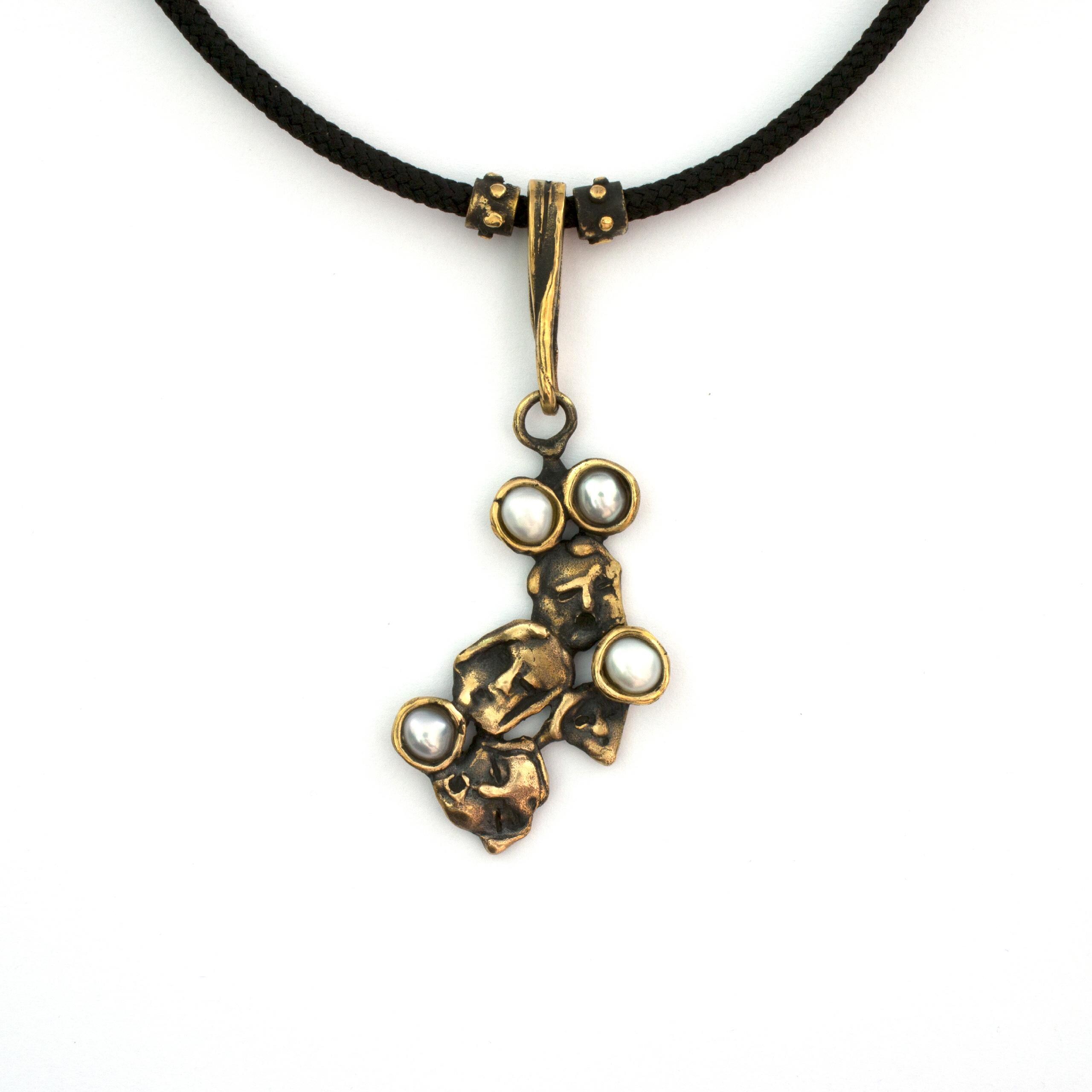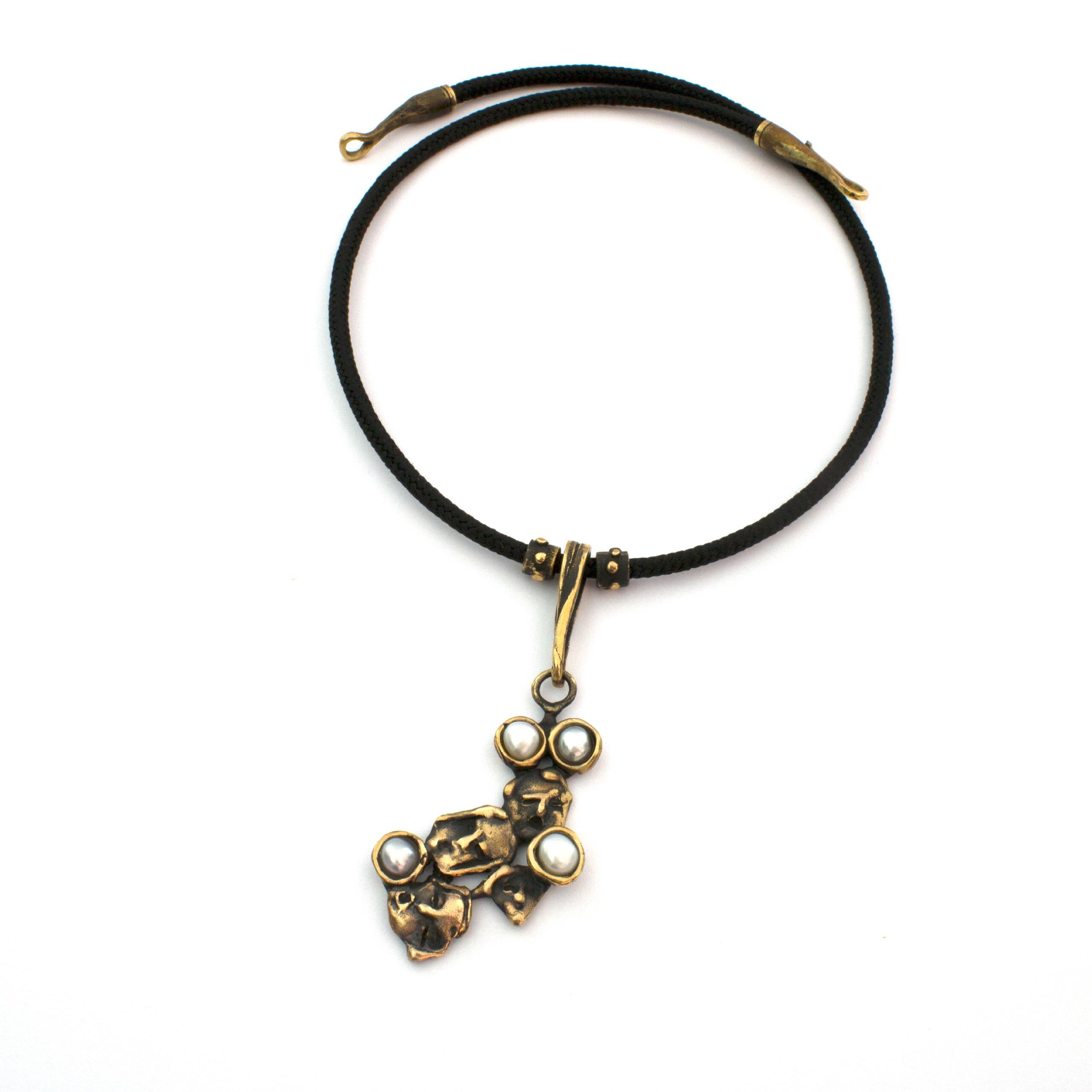 Bronzový náhrdelník s perlami od Vojtěšky Vlčkové Katalogové číslo: 226 Autorka: Vojtěška Vlčková Realizace: Jaromíra Pavlíková Lití na ztracený vosk, bronz, perly Délka cca 47 cm