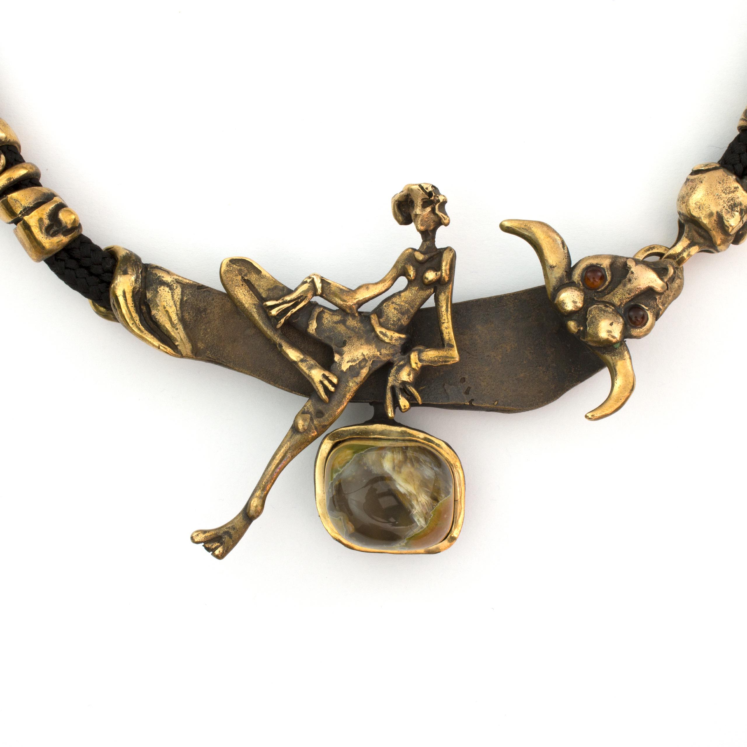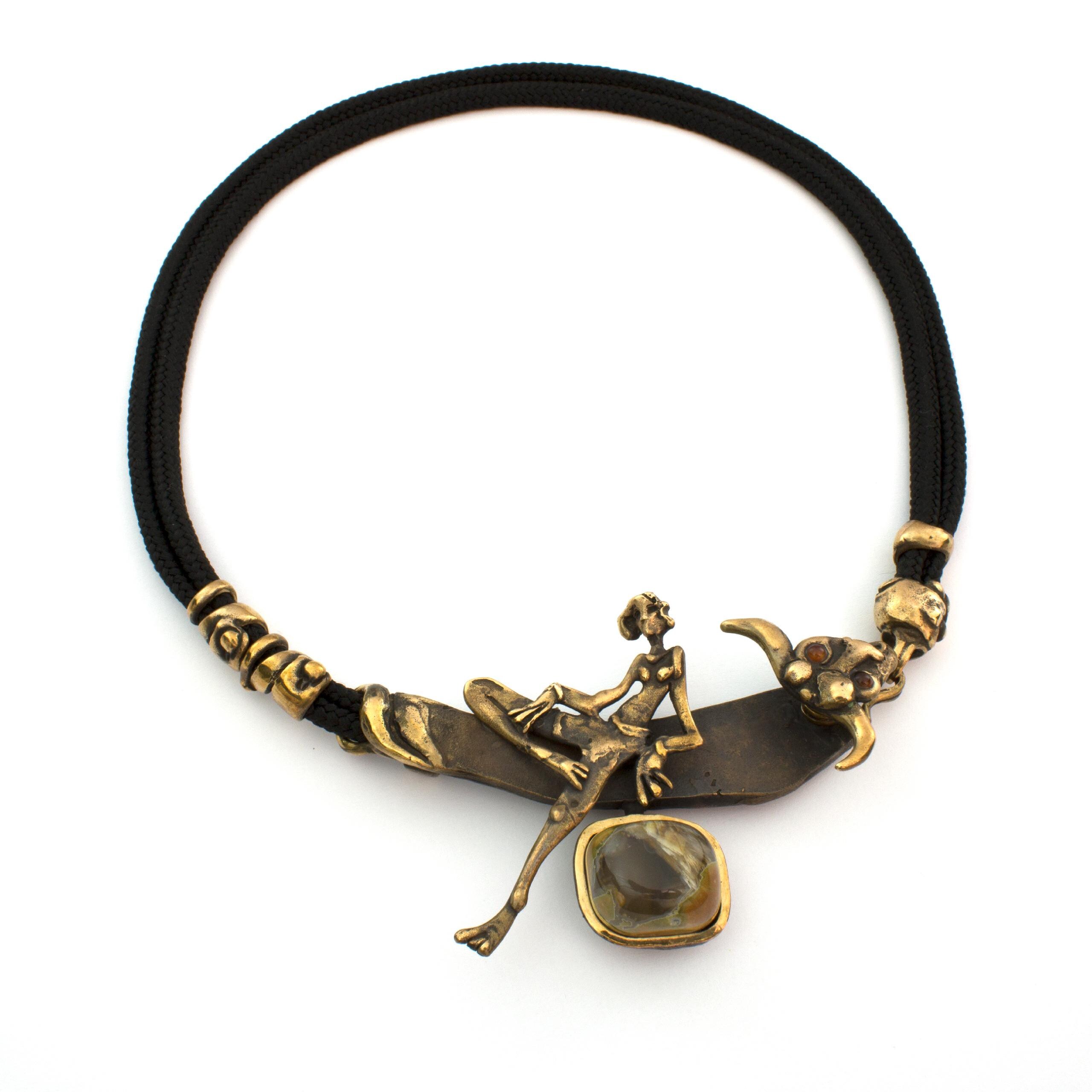 Bronzový náhrdelník s ryolitem od Vojtěšky Vlčkové Katalogové číslo: 238 Autorka: Vojtěška Vlčková Realizace: Jaromíra Pavlíková Lití na ztracený vosk, bronz, ryolit Délka cca 53 cm