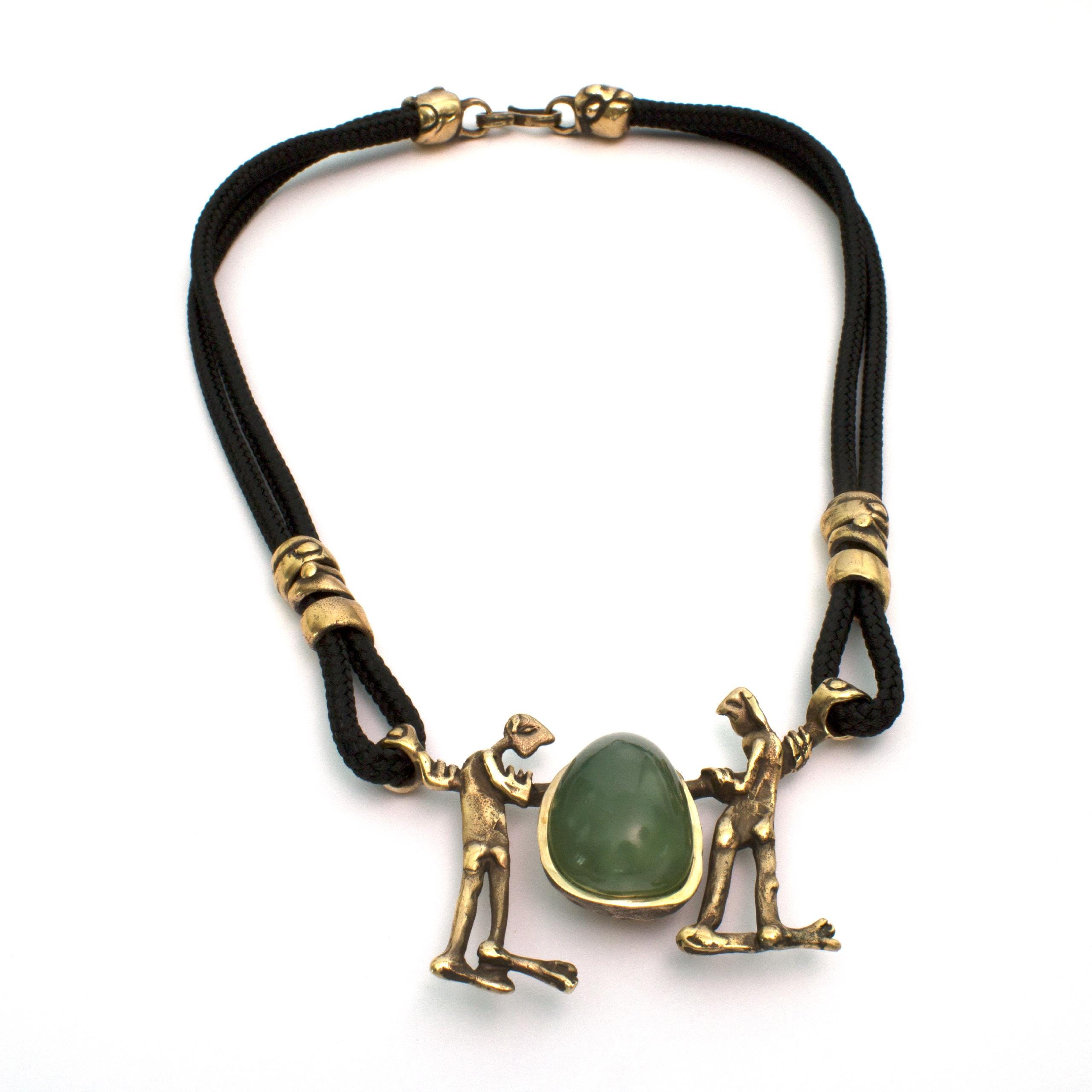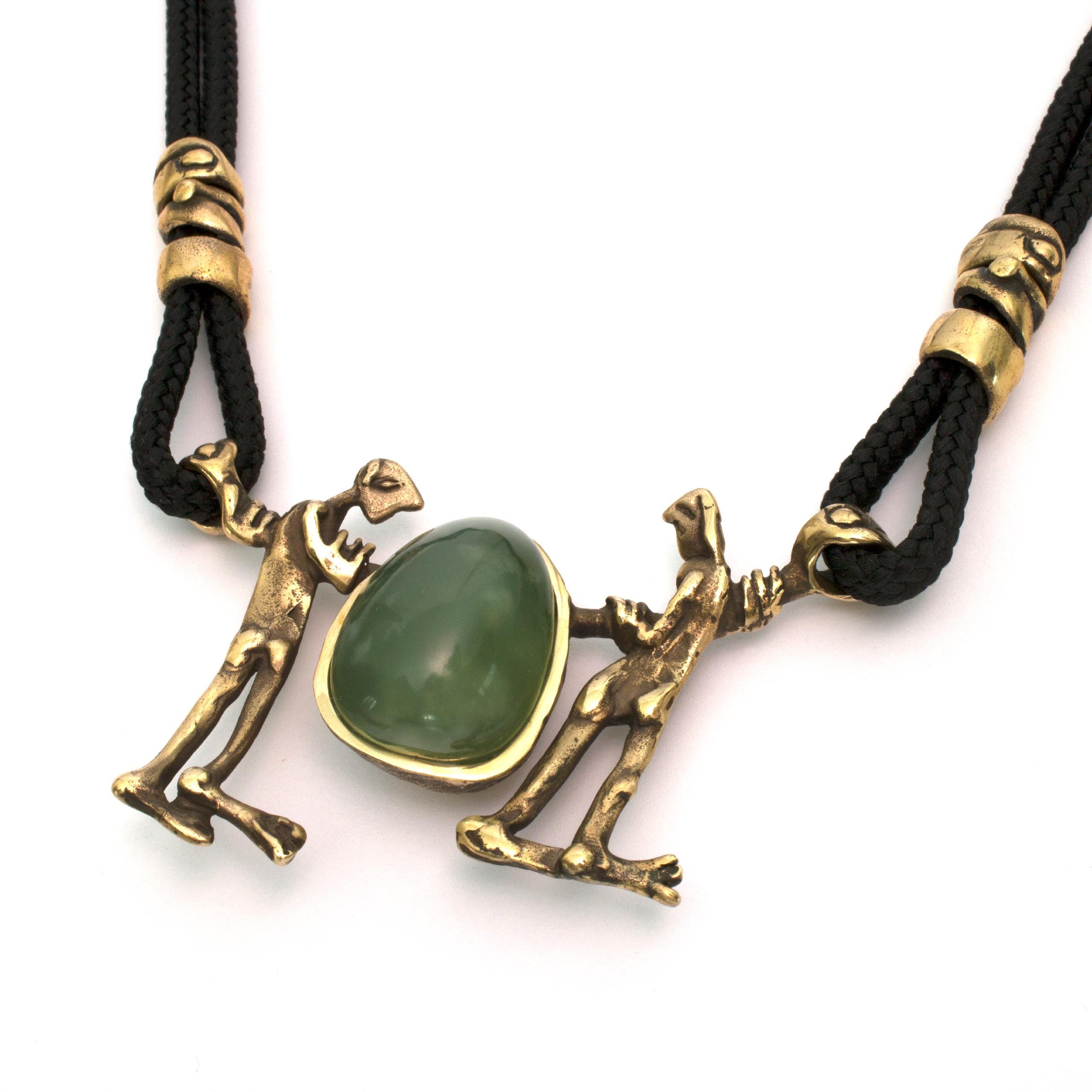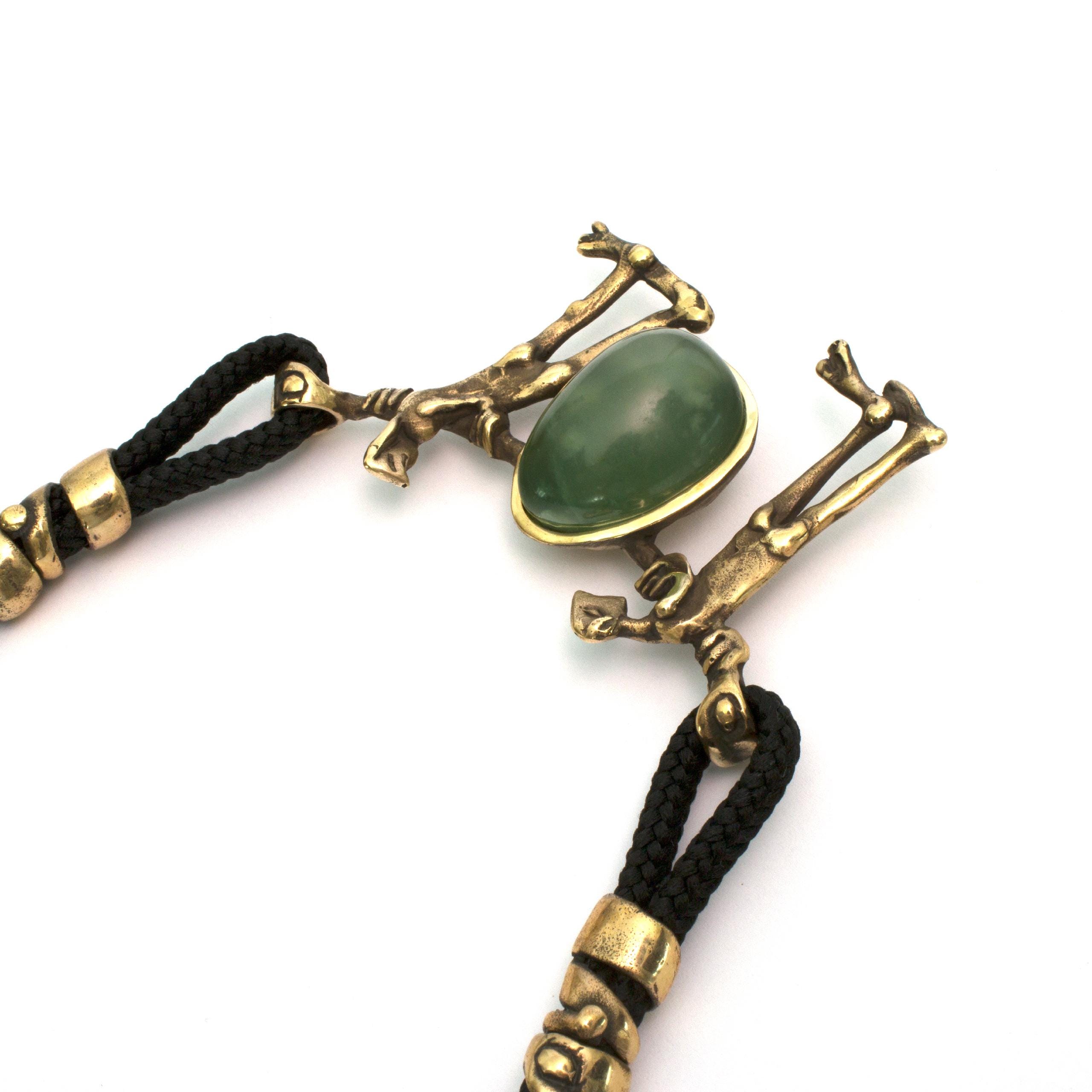 Bronzový náhrdelník s prehnitem od Vojtěšky Vlčkové Katalogové číslo: 246 Autorka: Vojtěška Vlčková Realizace: Jaromíra Pavlíková Lití na ztracený vosk, bronz, prehnit Délka cca 53 cm