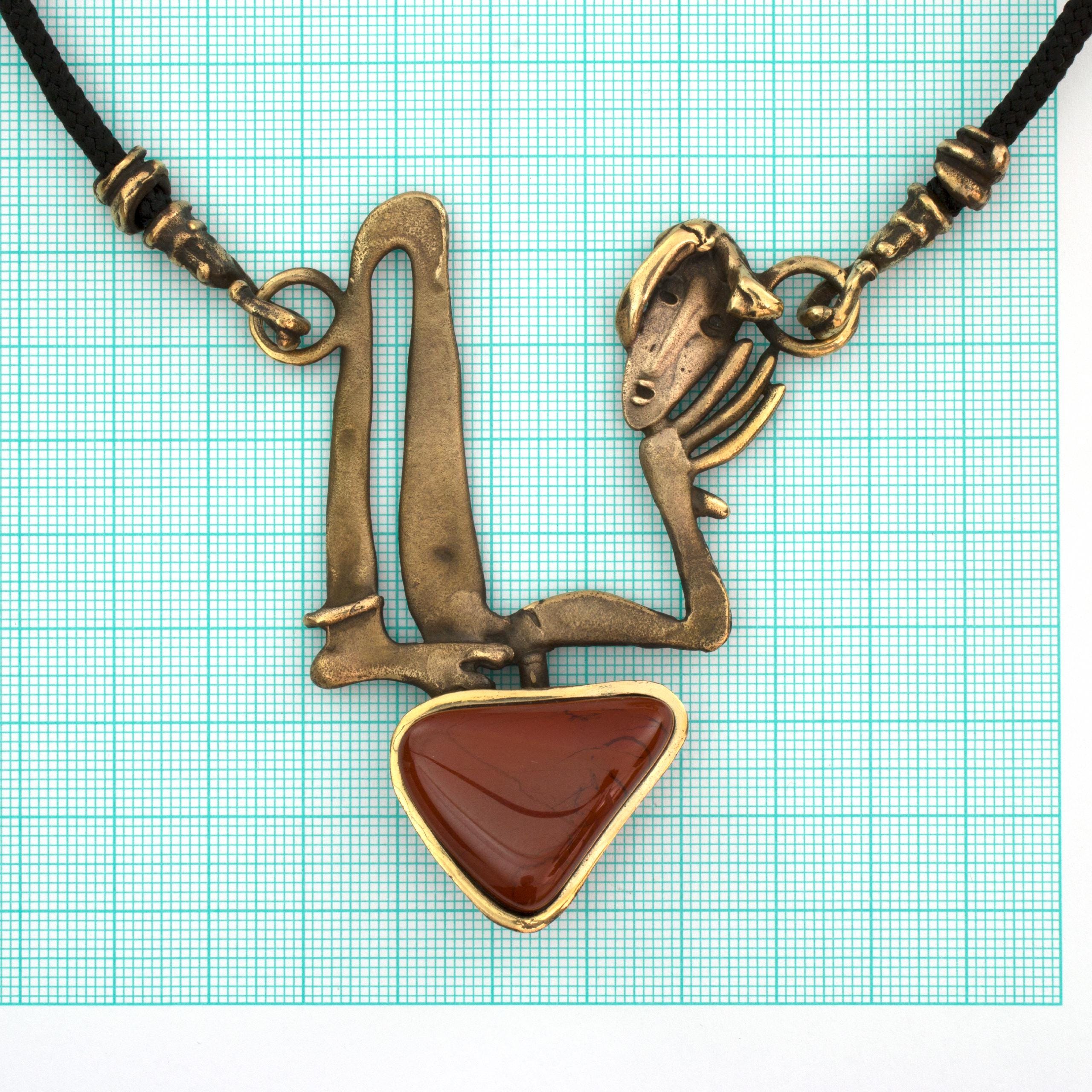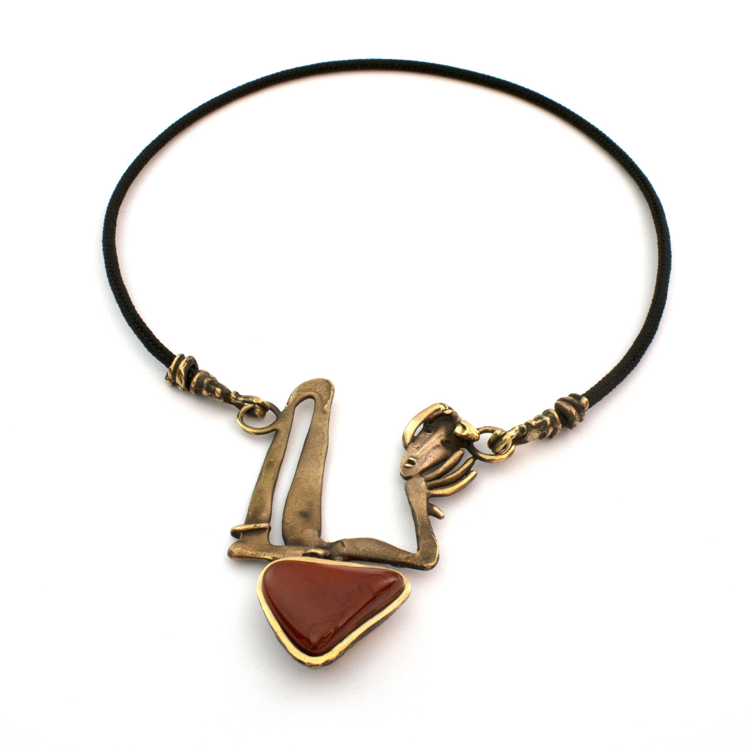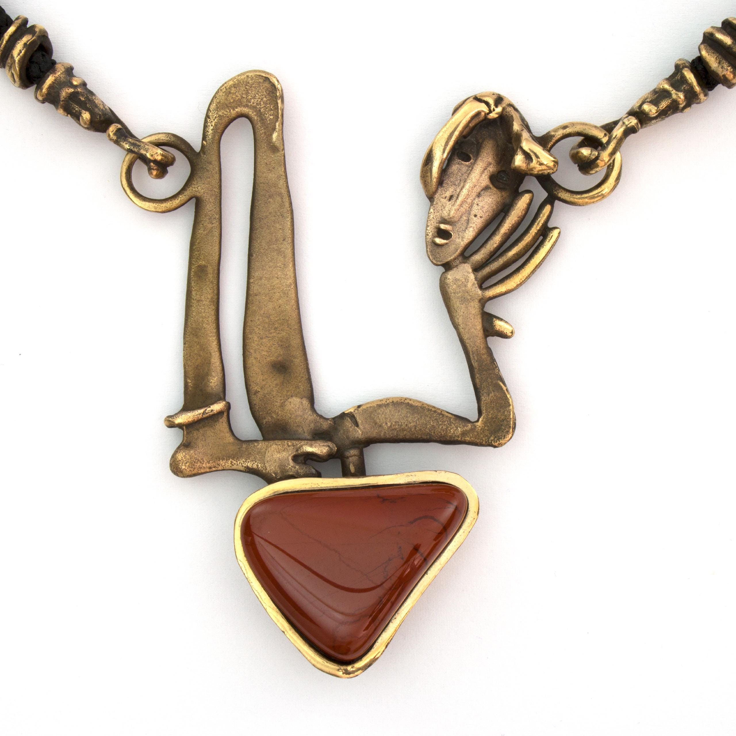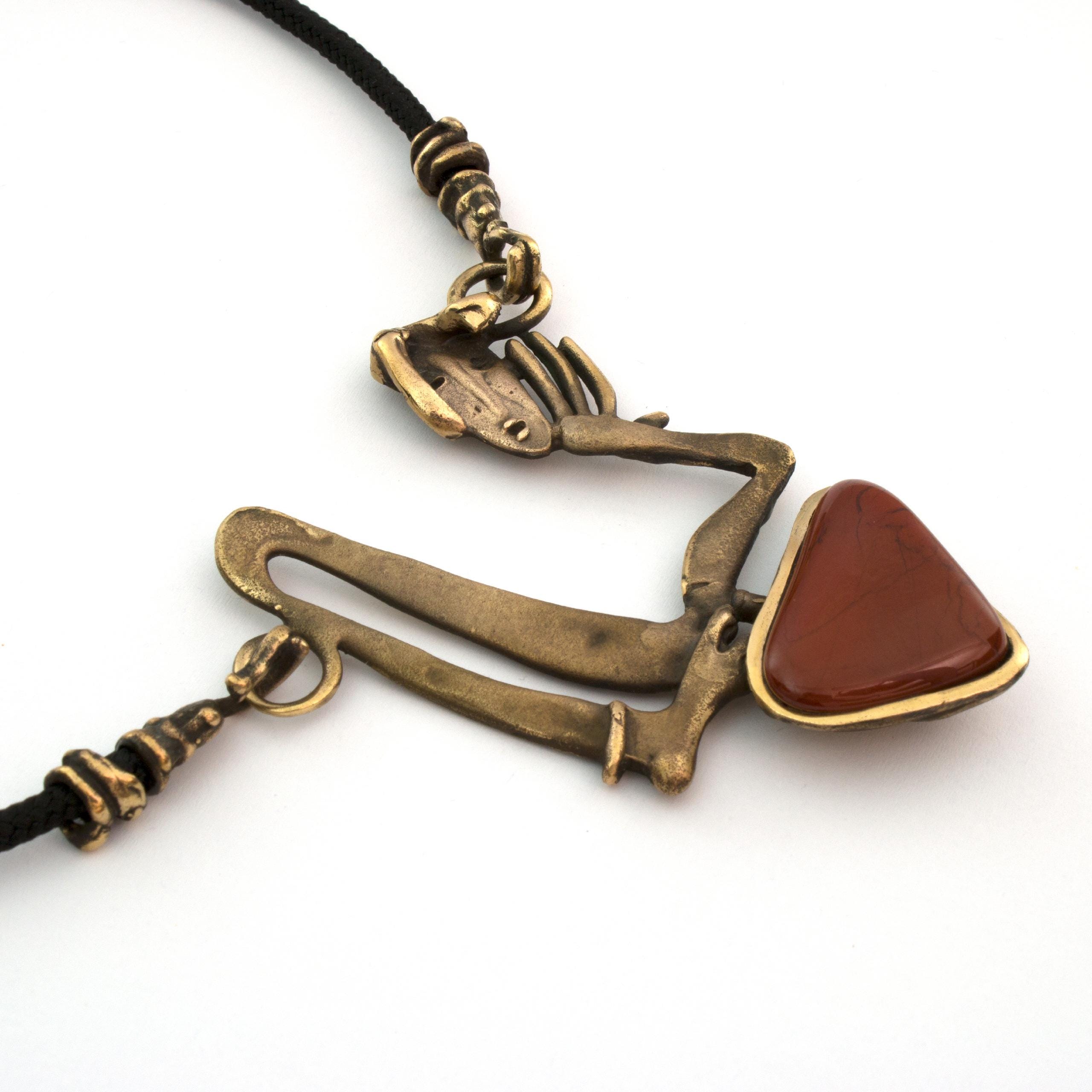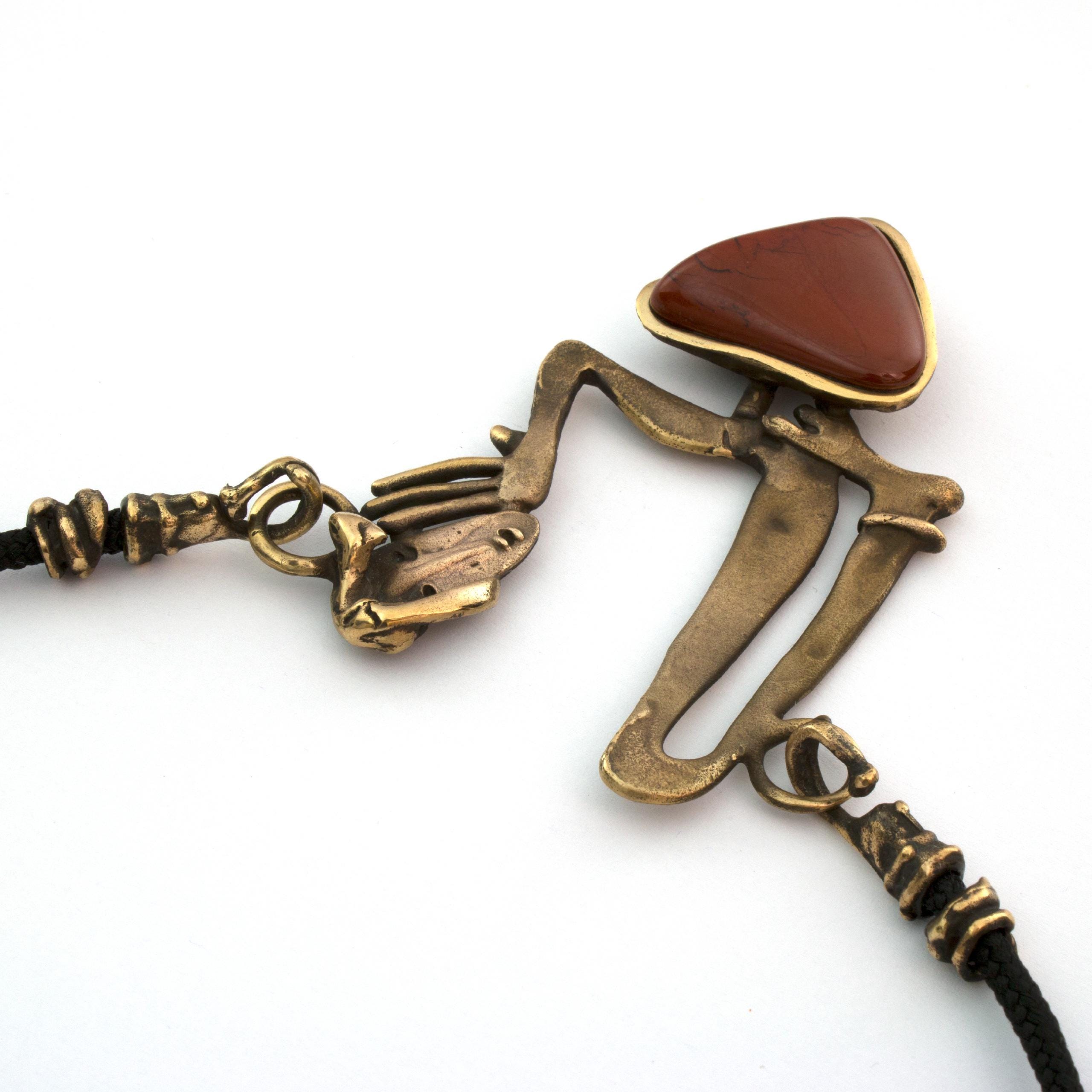 Bronzový náhrdelník s jaspisem od Vojtěšky Vlčkové Katalogové číslo: 251 Autorka: Vojtěška Vlčková Realizace: Jaromíra Pavlíková Lití na ztracený vosk, bronz, jaspis Délka cca 49 cm
