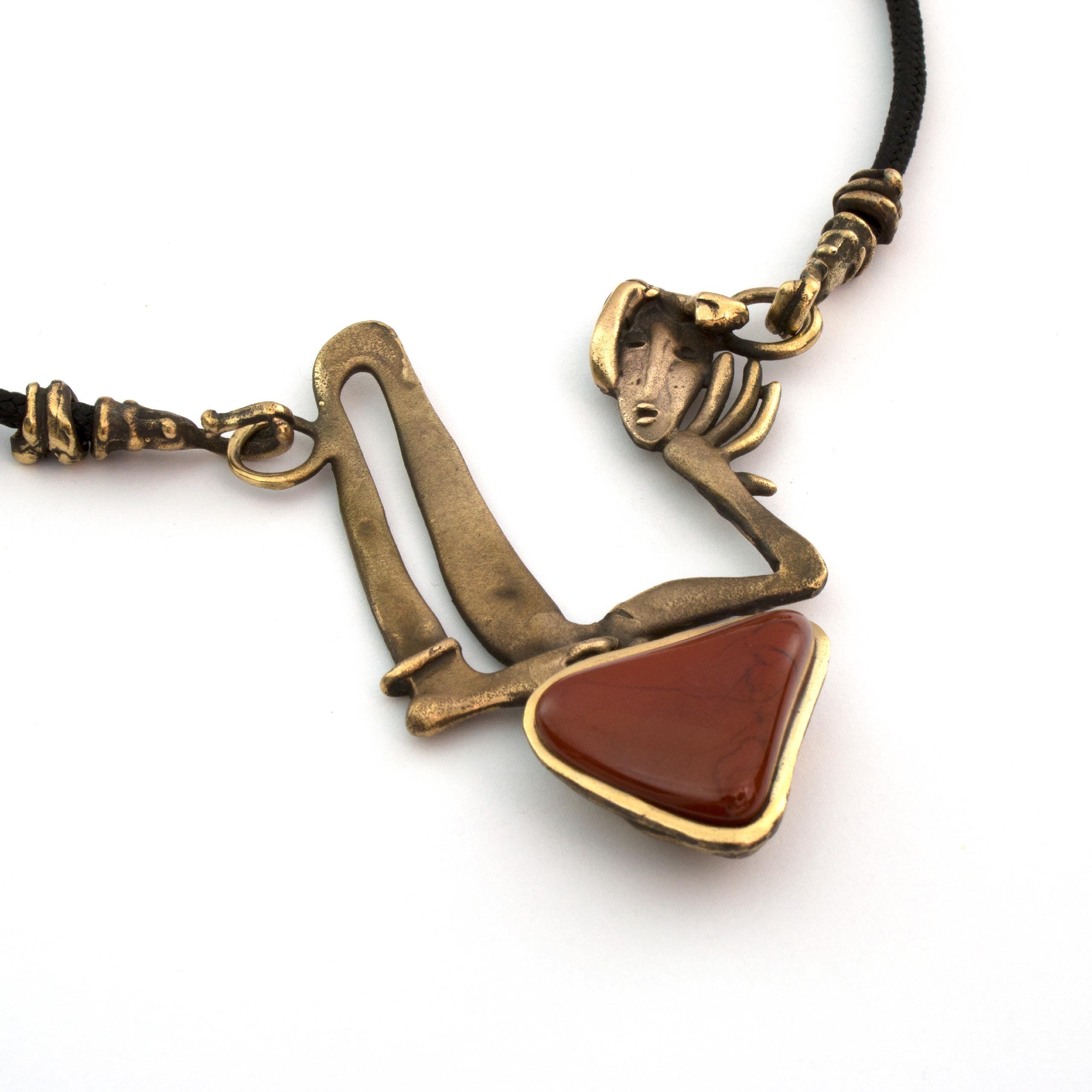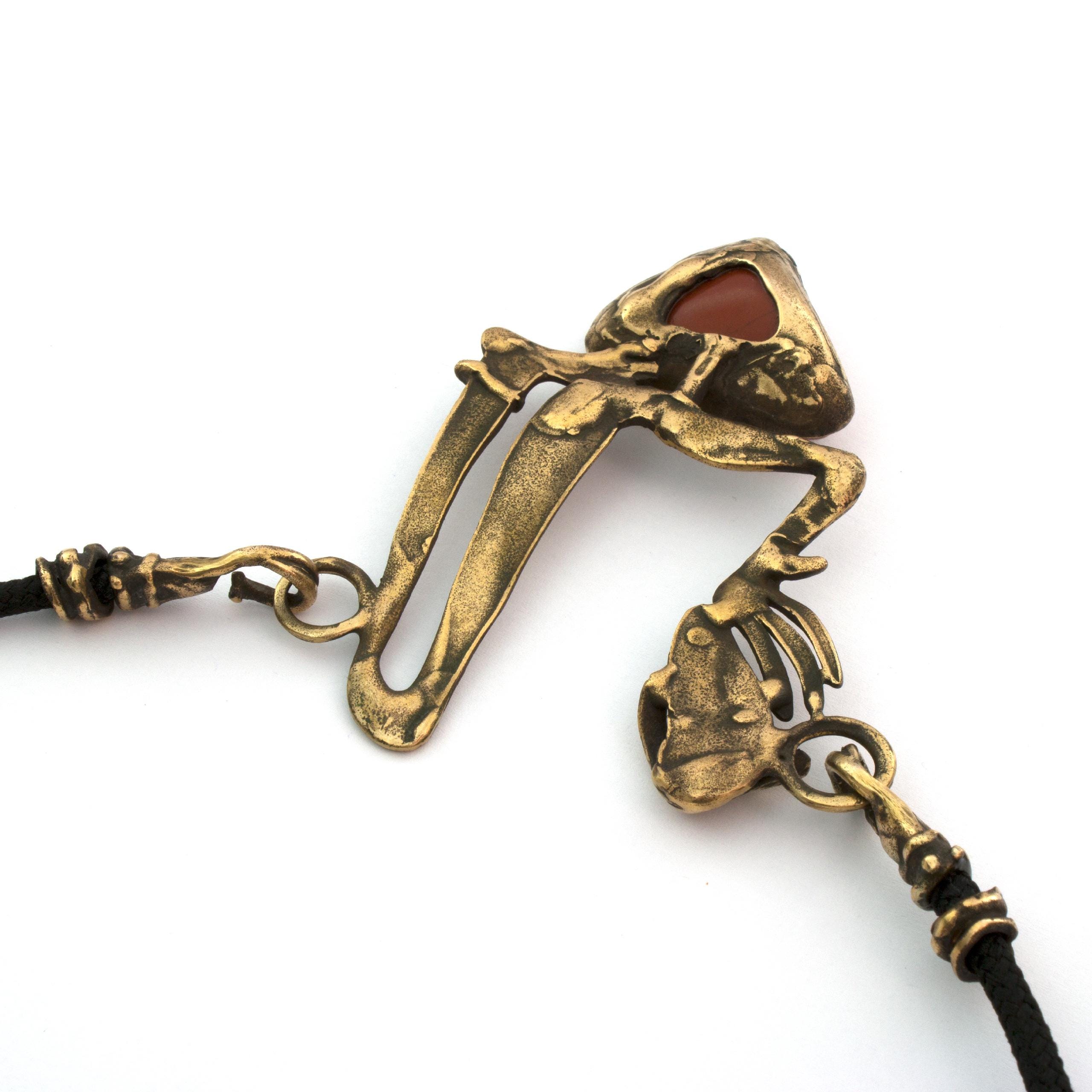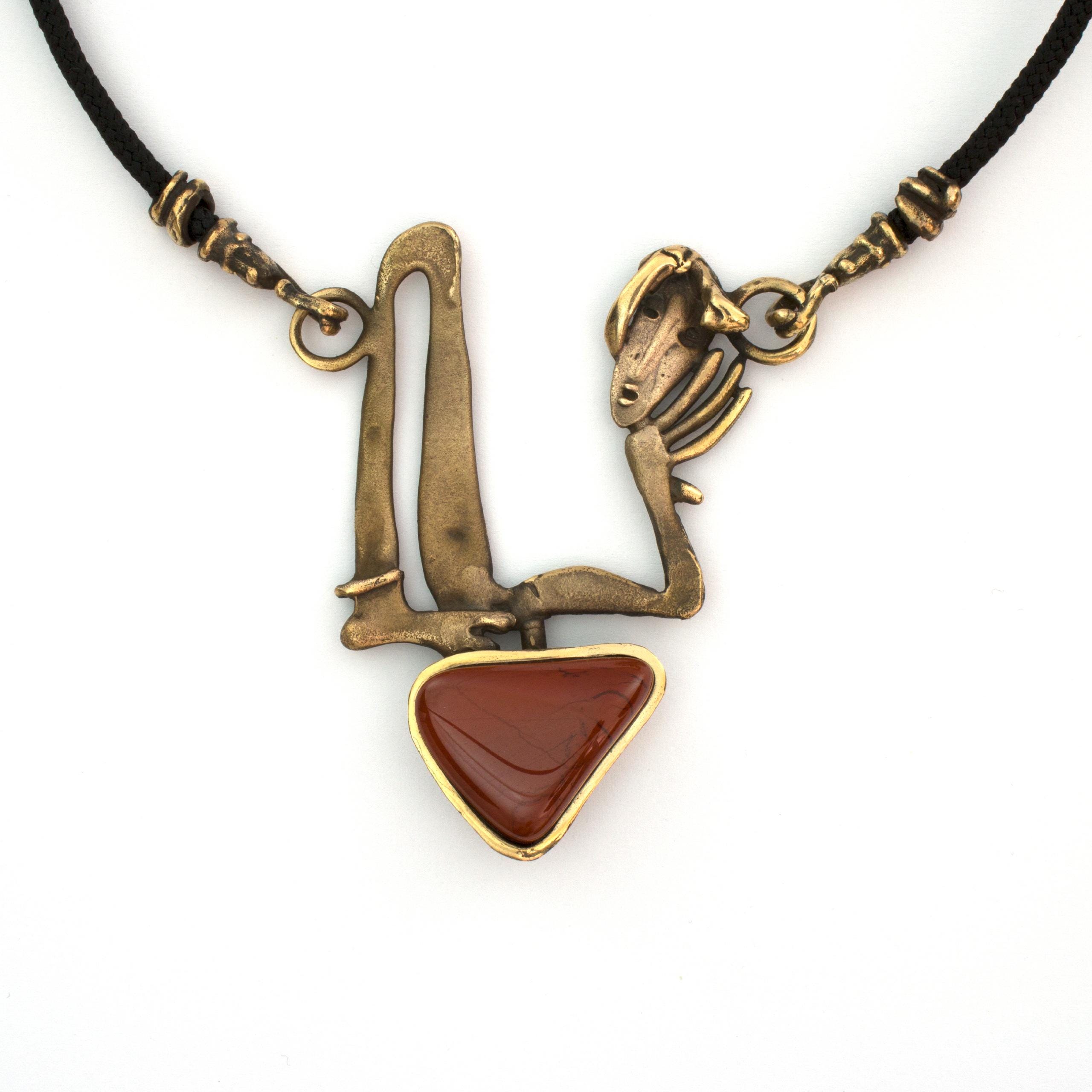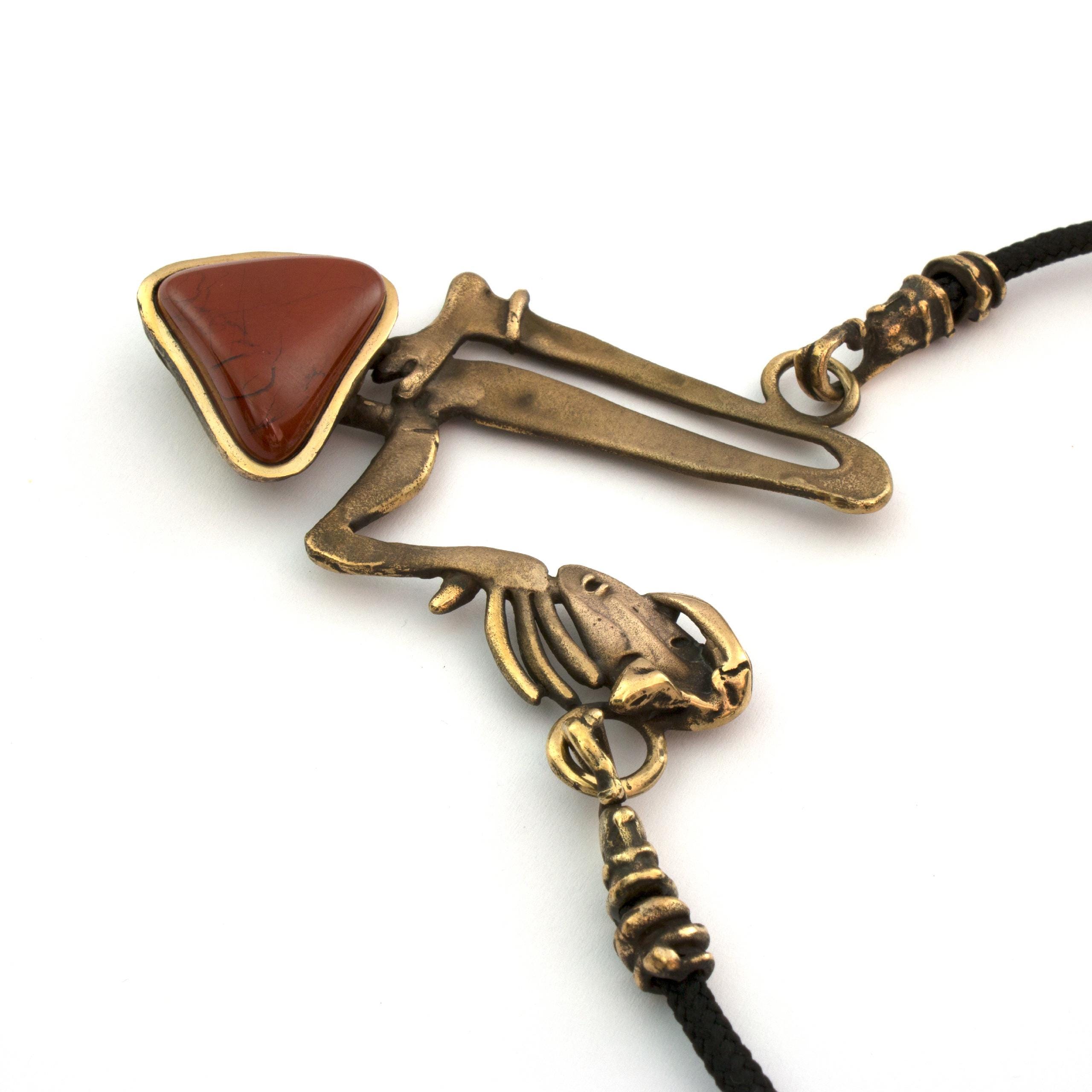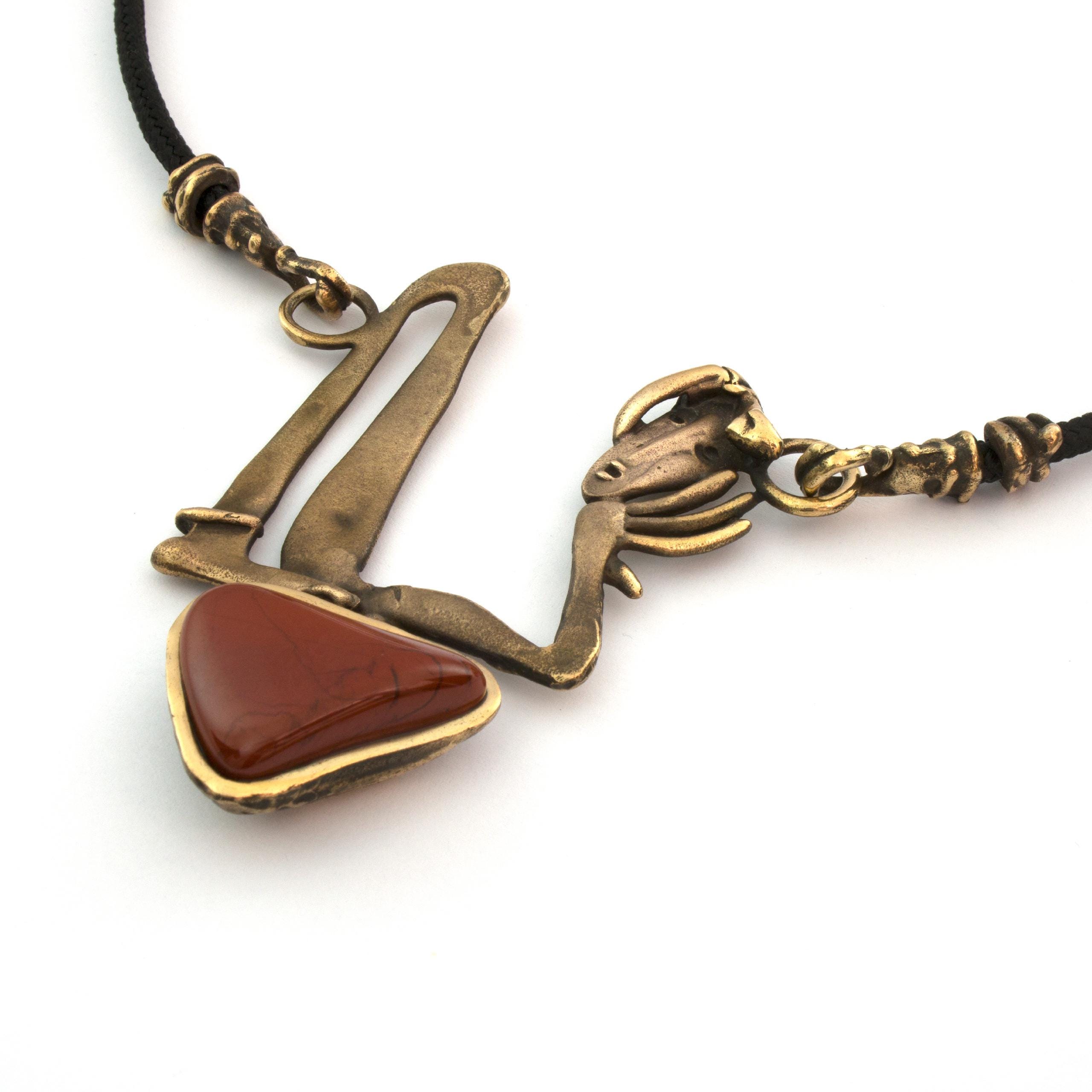 Bronzový náhrdelník s jaspisem od Vojtěšky Vlčkové Katalogové číslo: 251 Autorka: Vojtěška Vlčková Realizace: Jaromíra Pavlíková Lití na ztracený vosk, bronz, jaspis Délka cca 49 cm