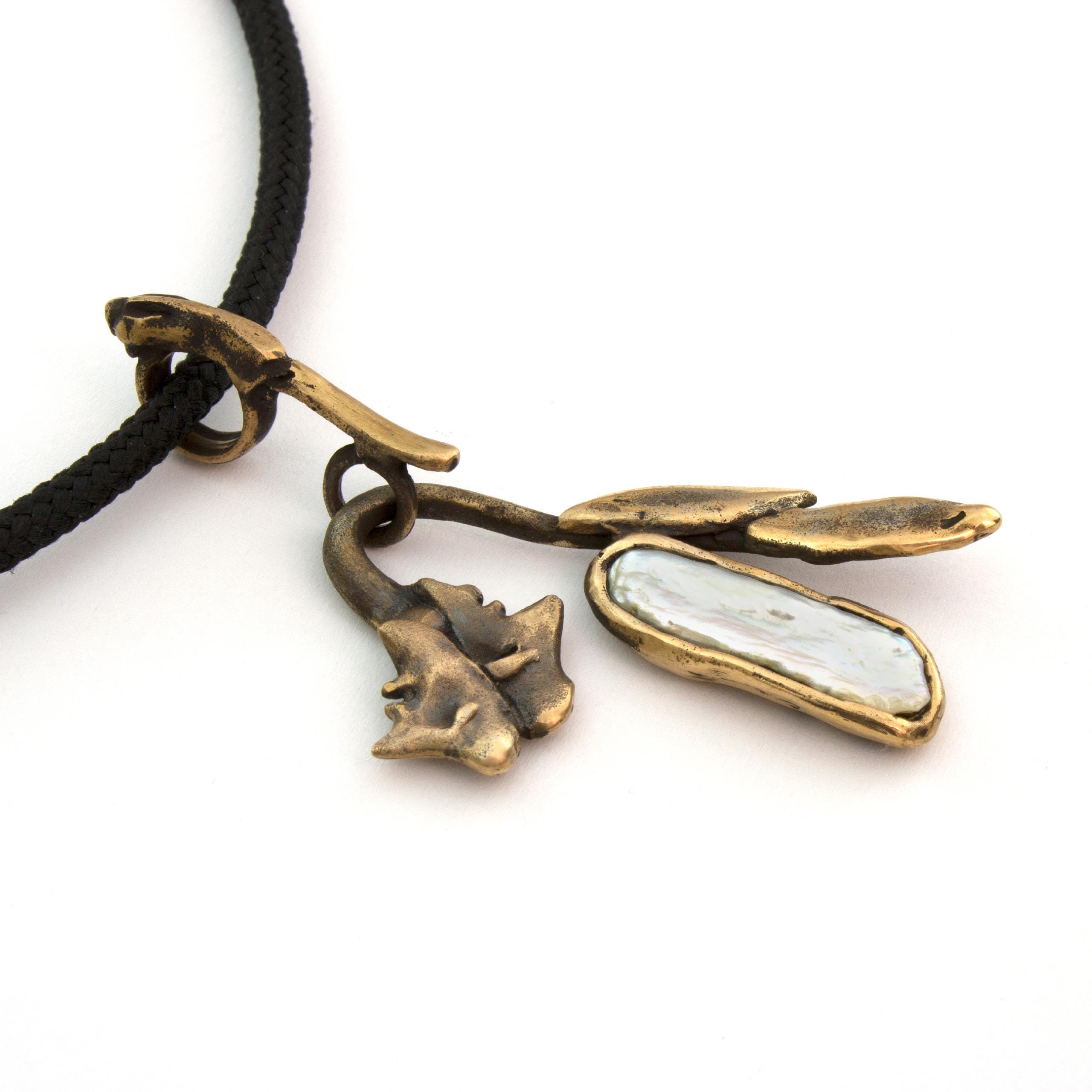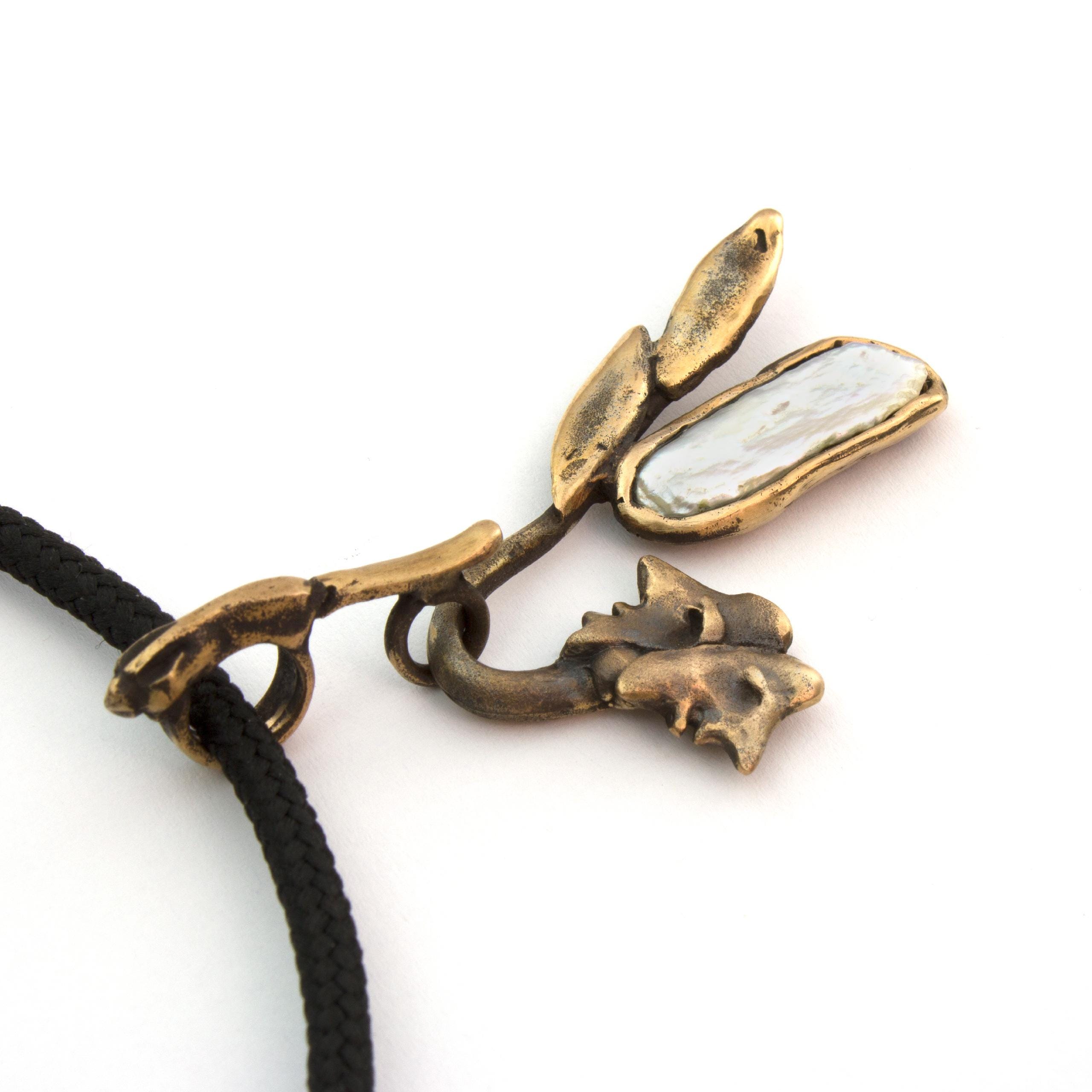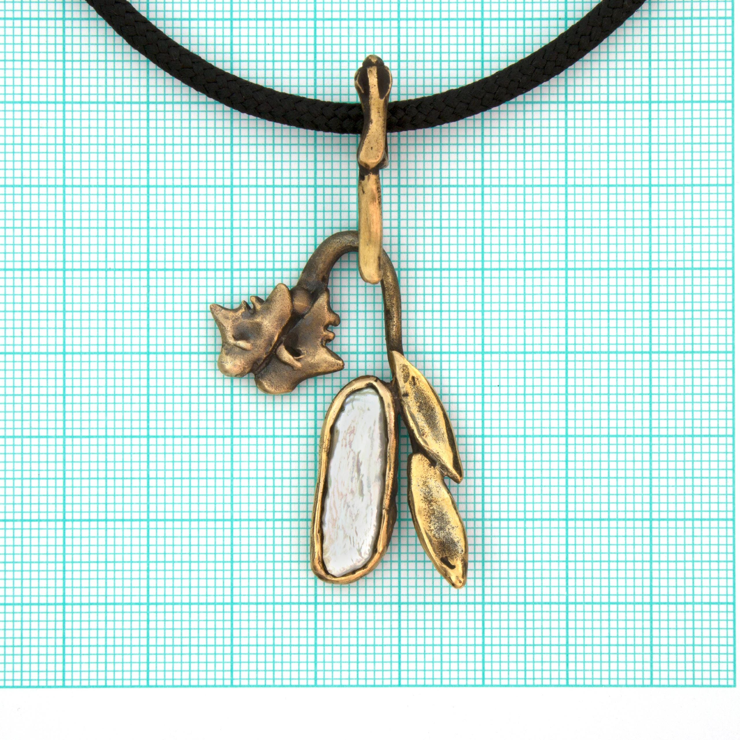 Bronzový náhrdelník s perlou od Vojtěšky Vlčkové Katalogové číslo: 271 Autorka: Vojtěška Vlčková Realizace: Jaromíra Pavlíková Lití na ztracený vosk, bronz, perla Délka cca 45 cm