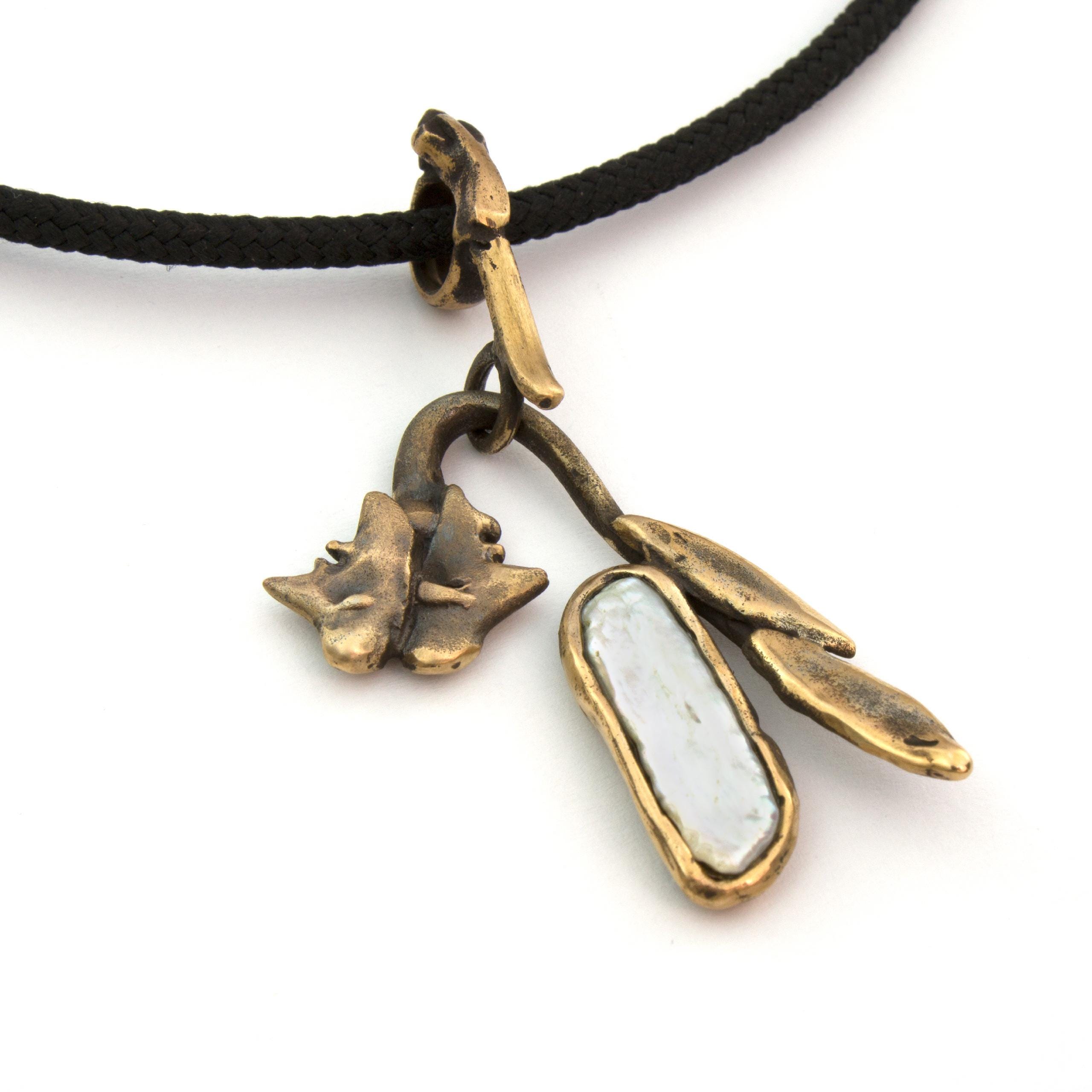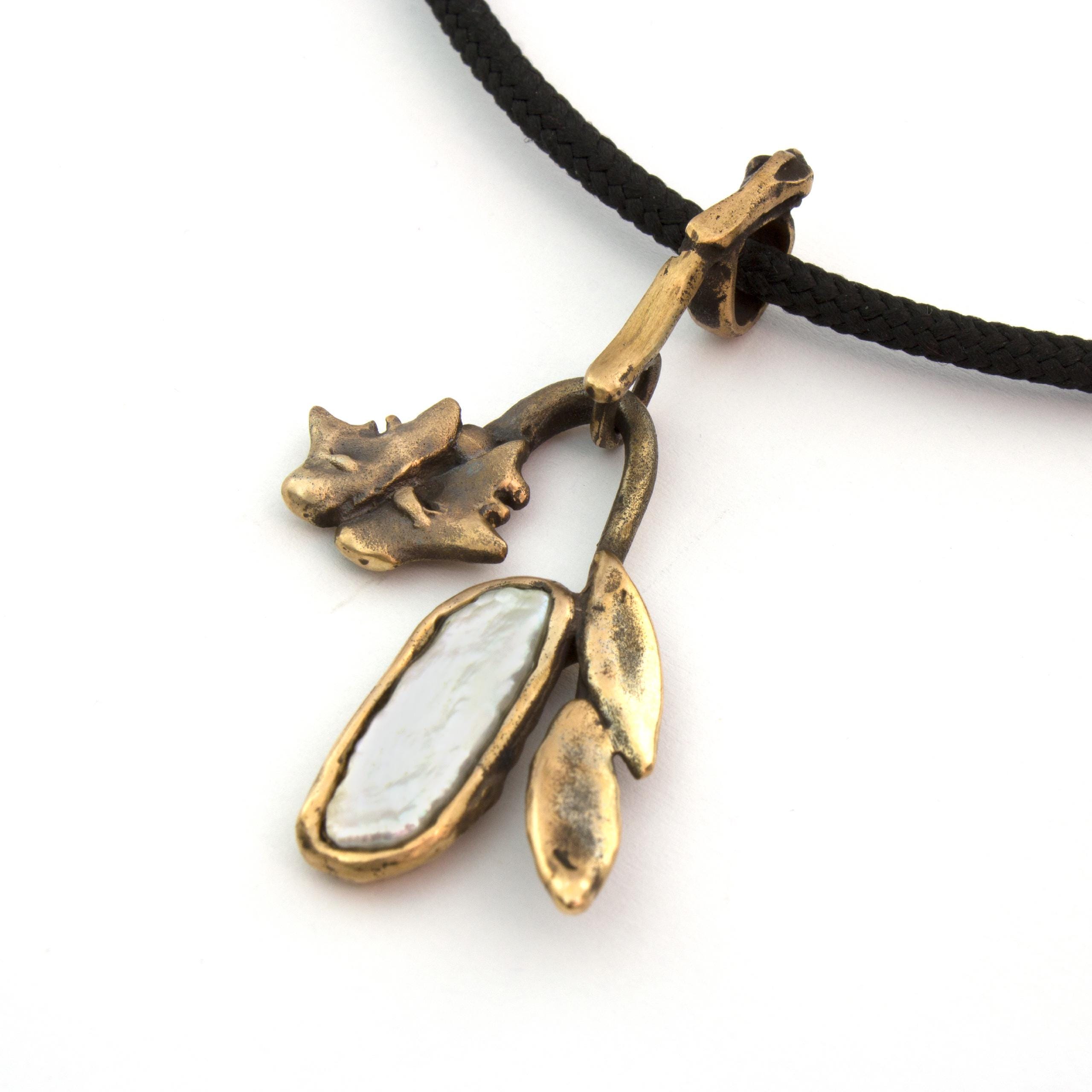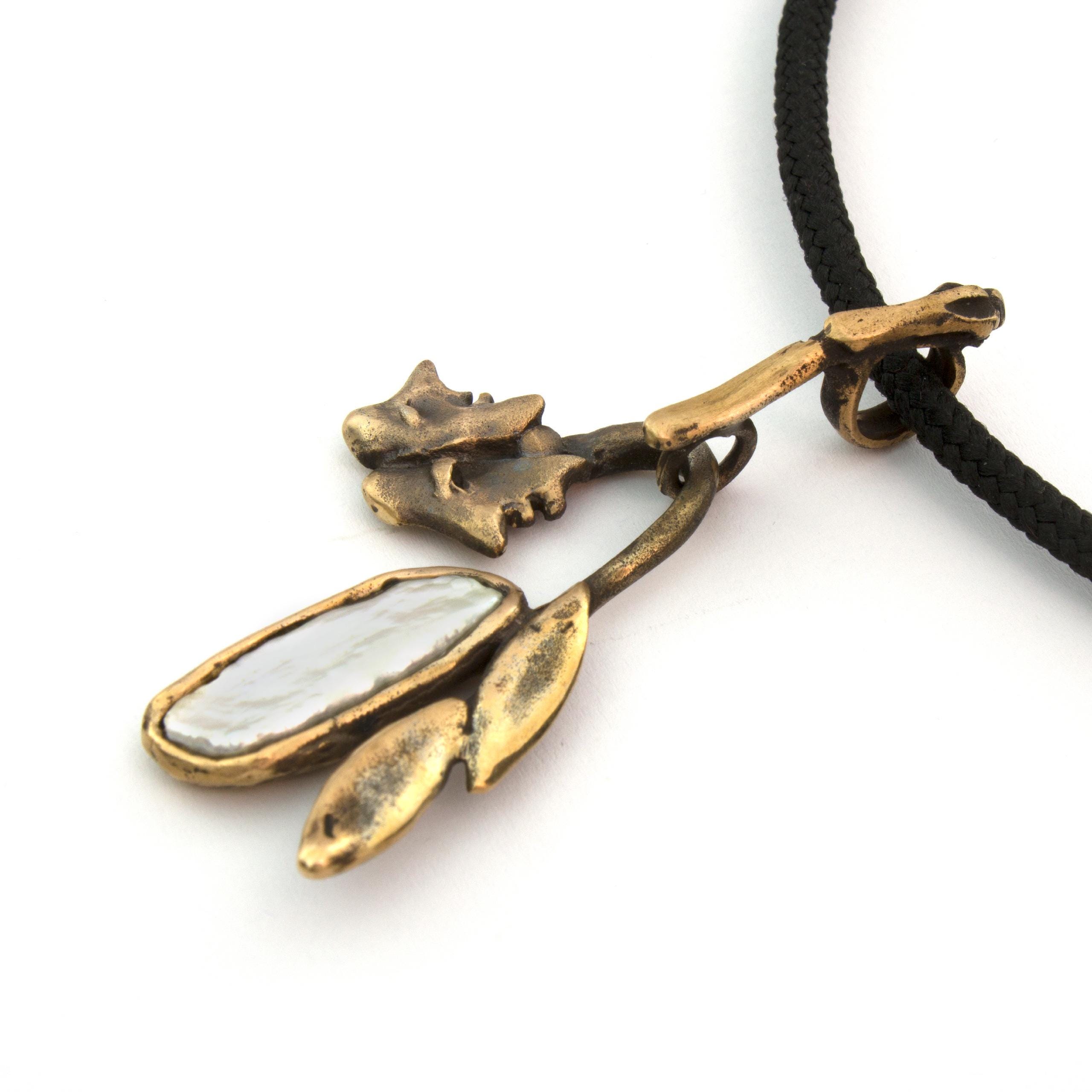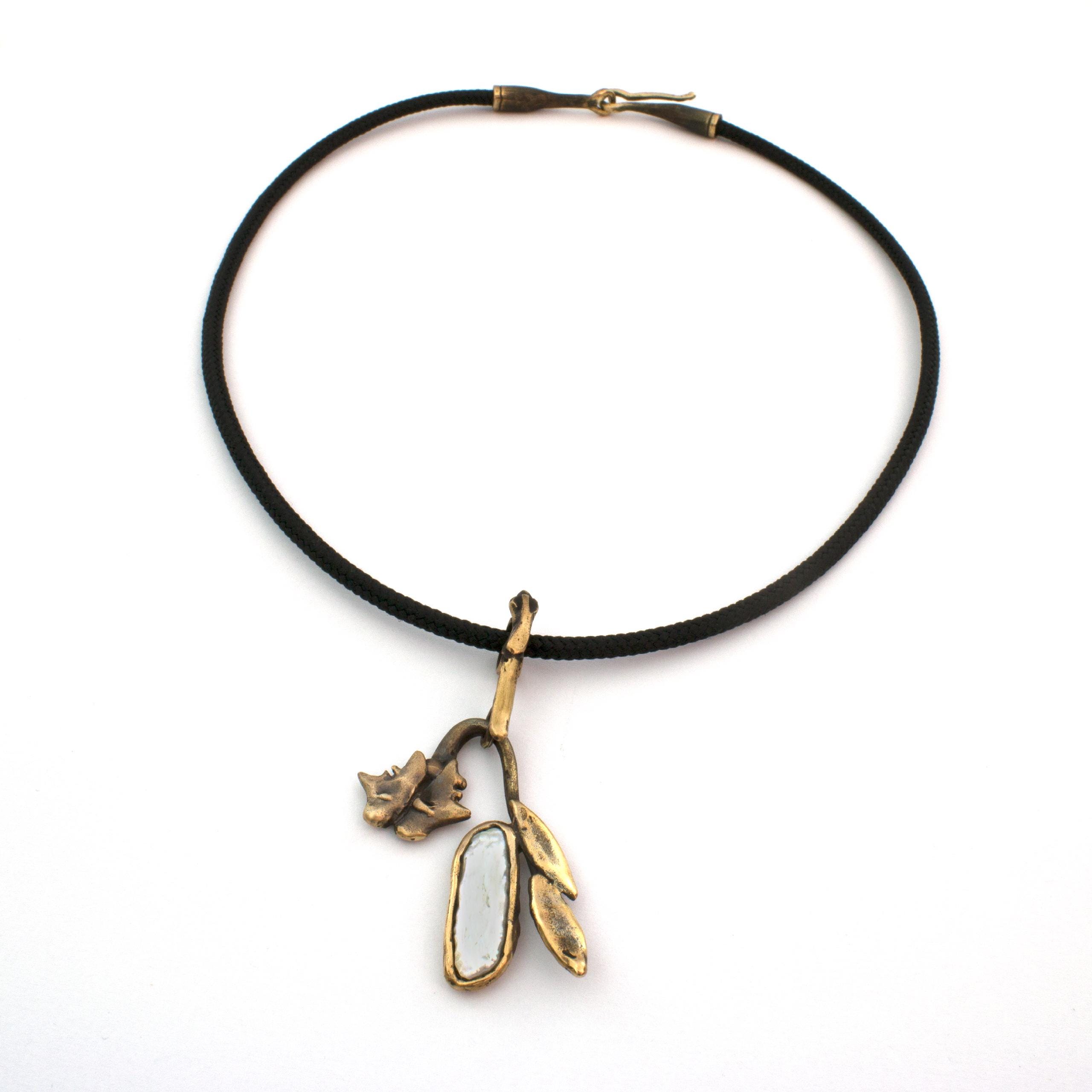 Bronzový náhrdelník s perlou od Vojtěšky Vlčkové Katalogové číslo: 271 Autorka: Vojtěška Vlčková Realizace: Jaromíra Pavlíková Lití na ztracený vosk, bronz, perla Délka cca 45 cm