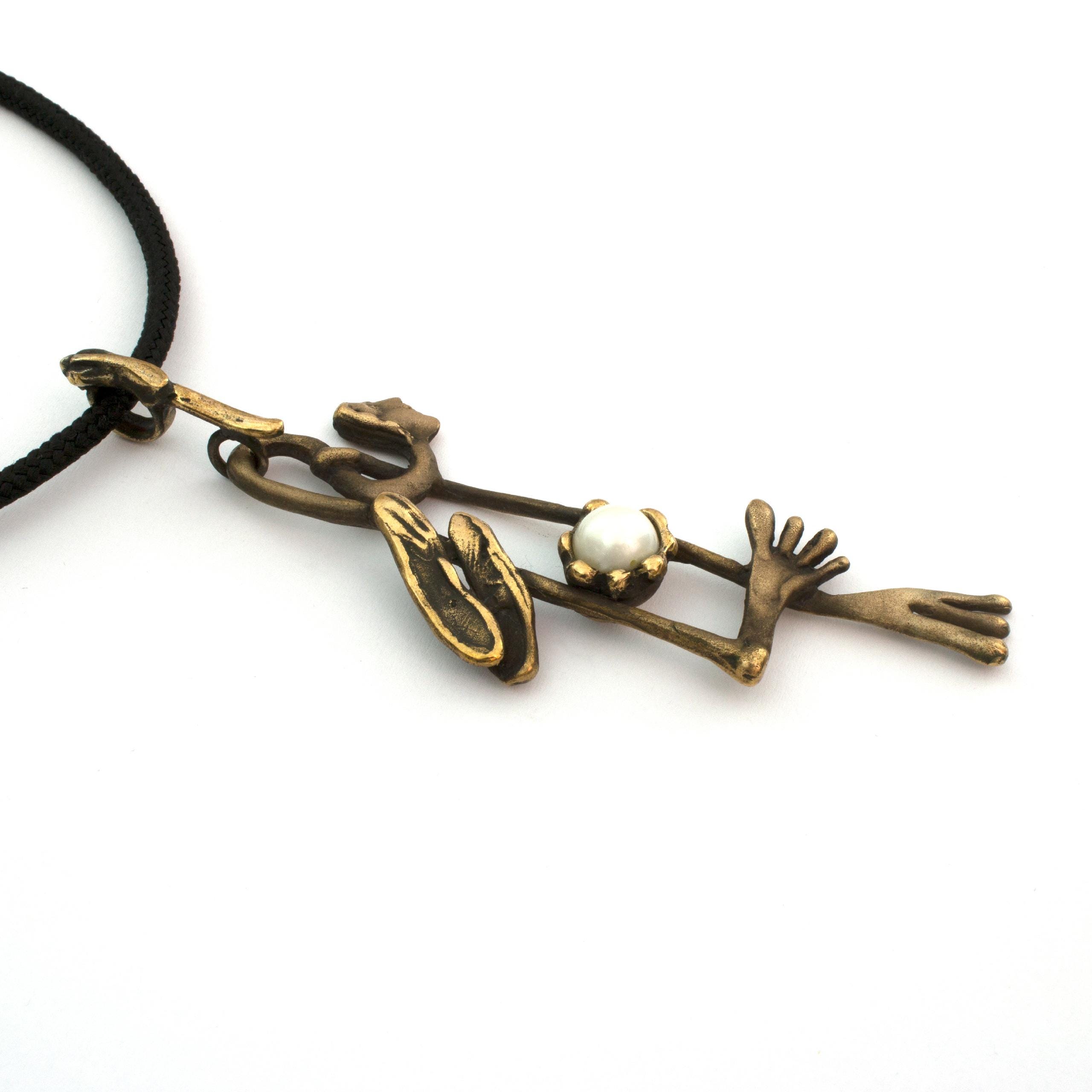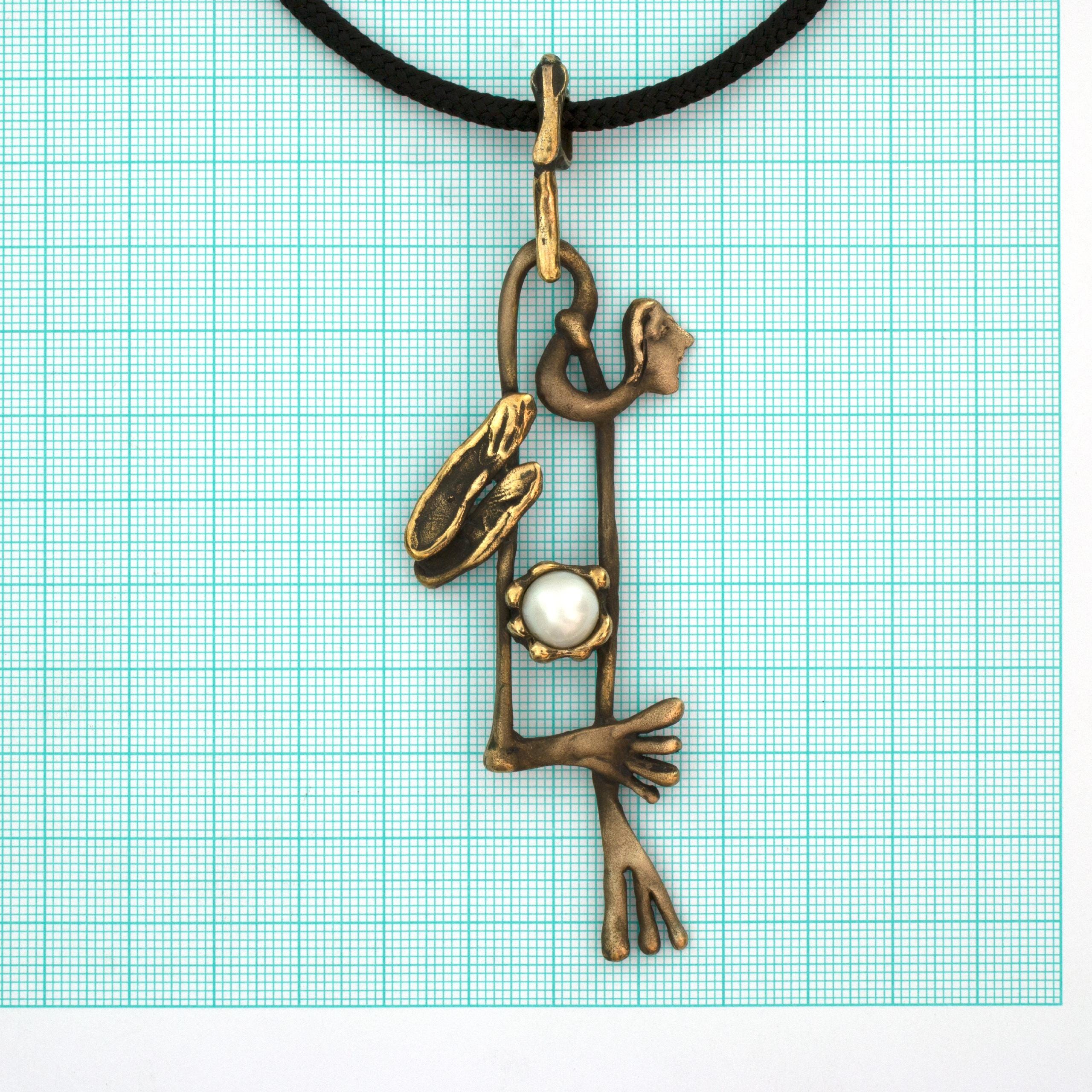Bronzový náhrdelník s perlou od Vojtěšky Vlčkové Katalogové číslo: 274 Autorka: Vojtěška Vlčková Realizace: Jaromíra Pavlíková Lití na ztracený vosk, bronz, perla Délka cca 47 cm