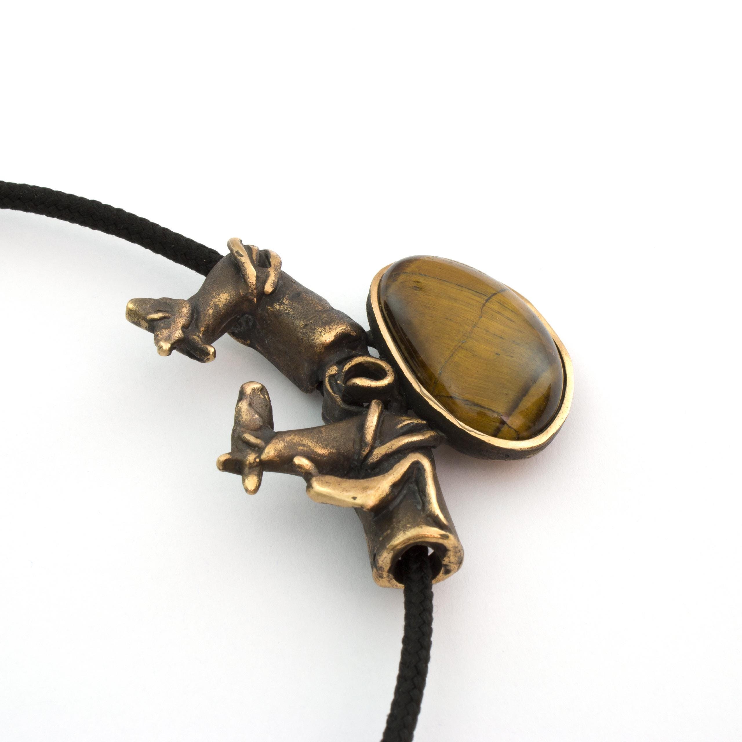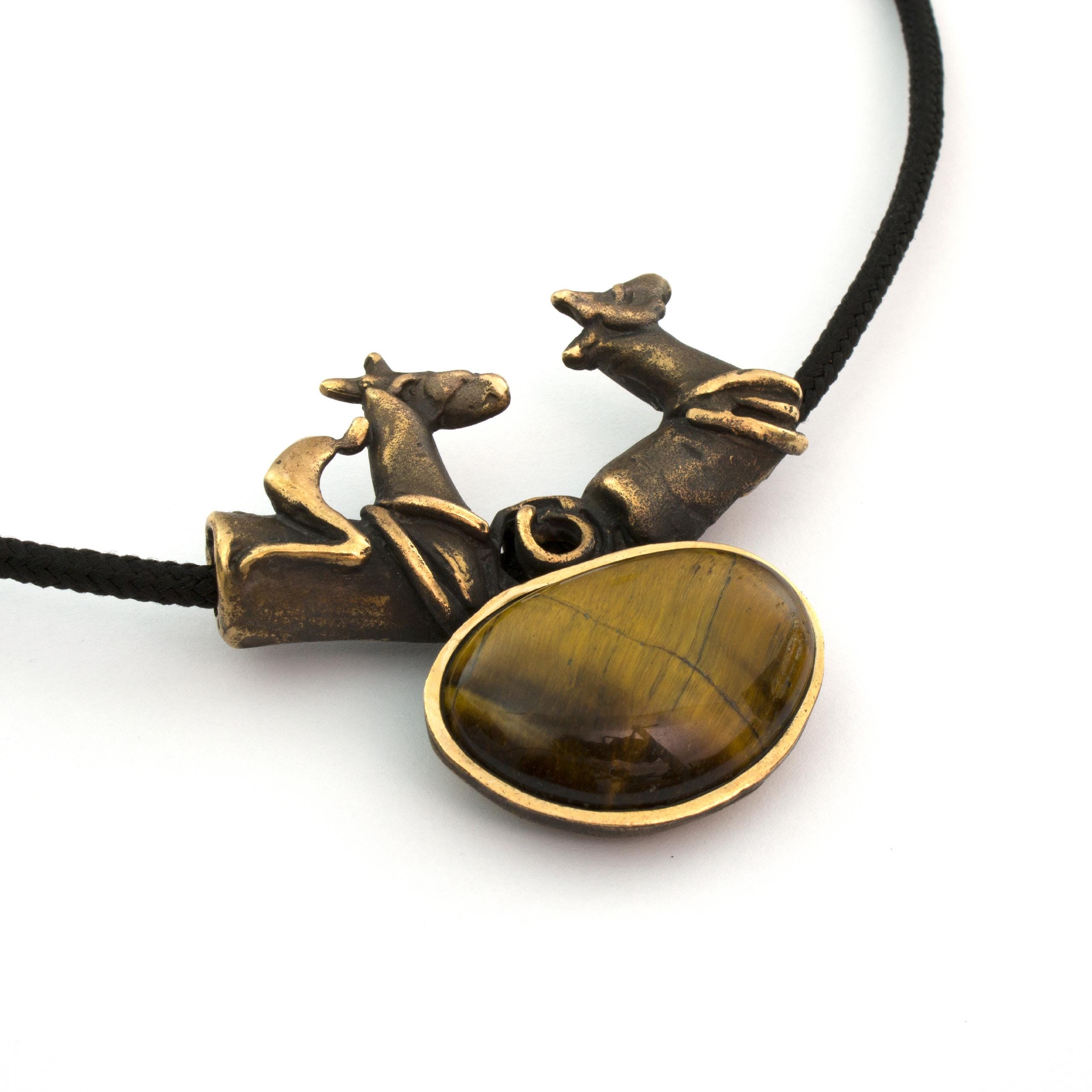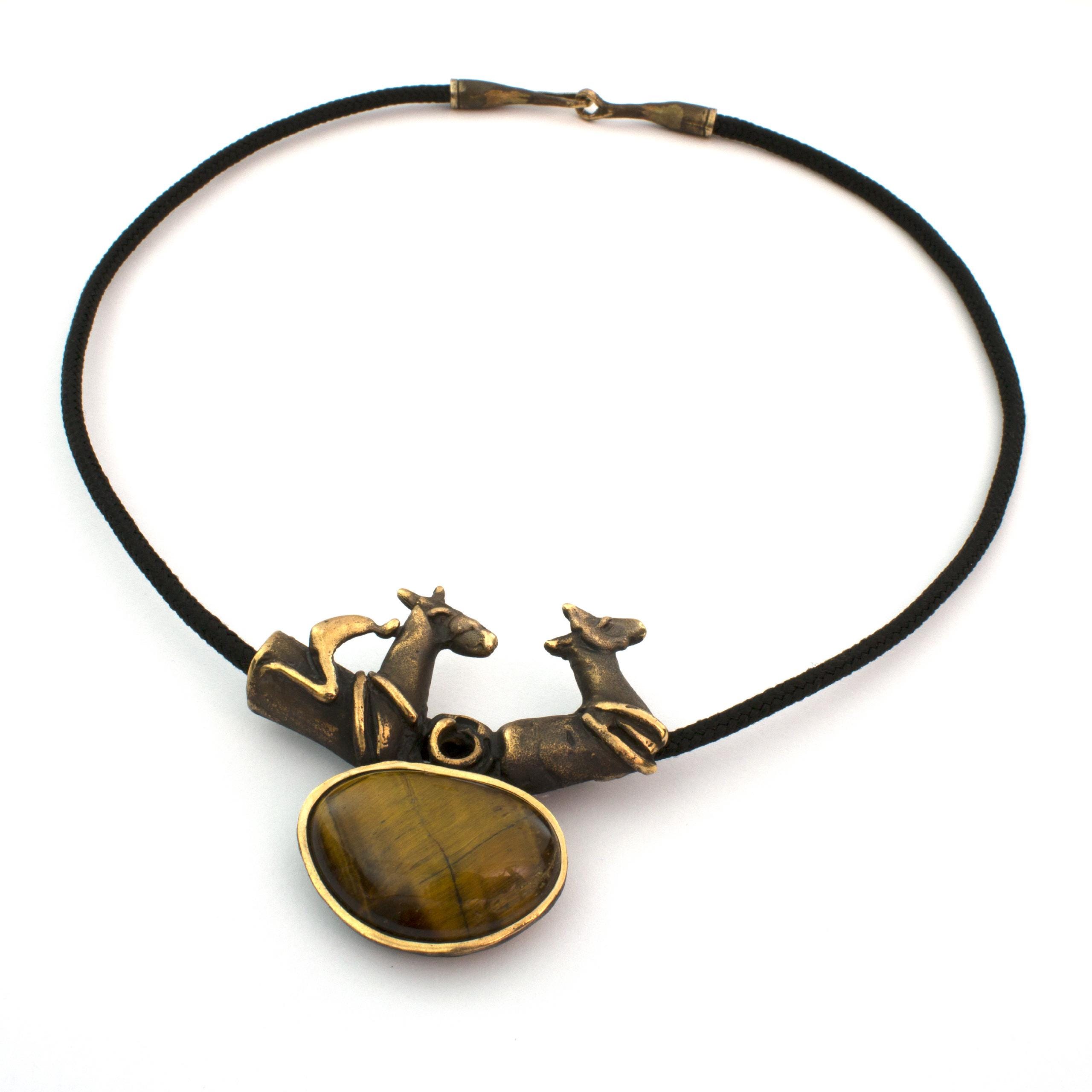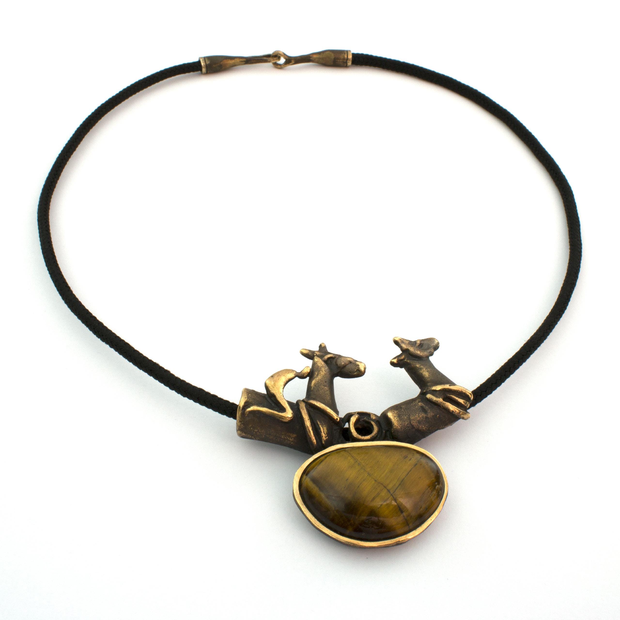 Bronzový náhrdelník s tygřím okem od Vojtěšky Vlčkové Katalogové číslo: 278 Autorka: Vojtěška Vlčková Realizace: Jaromíra Pavlíková Lití na ztracený vosk, bronz, tygří oko Délka cca 48 cm