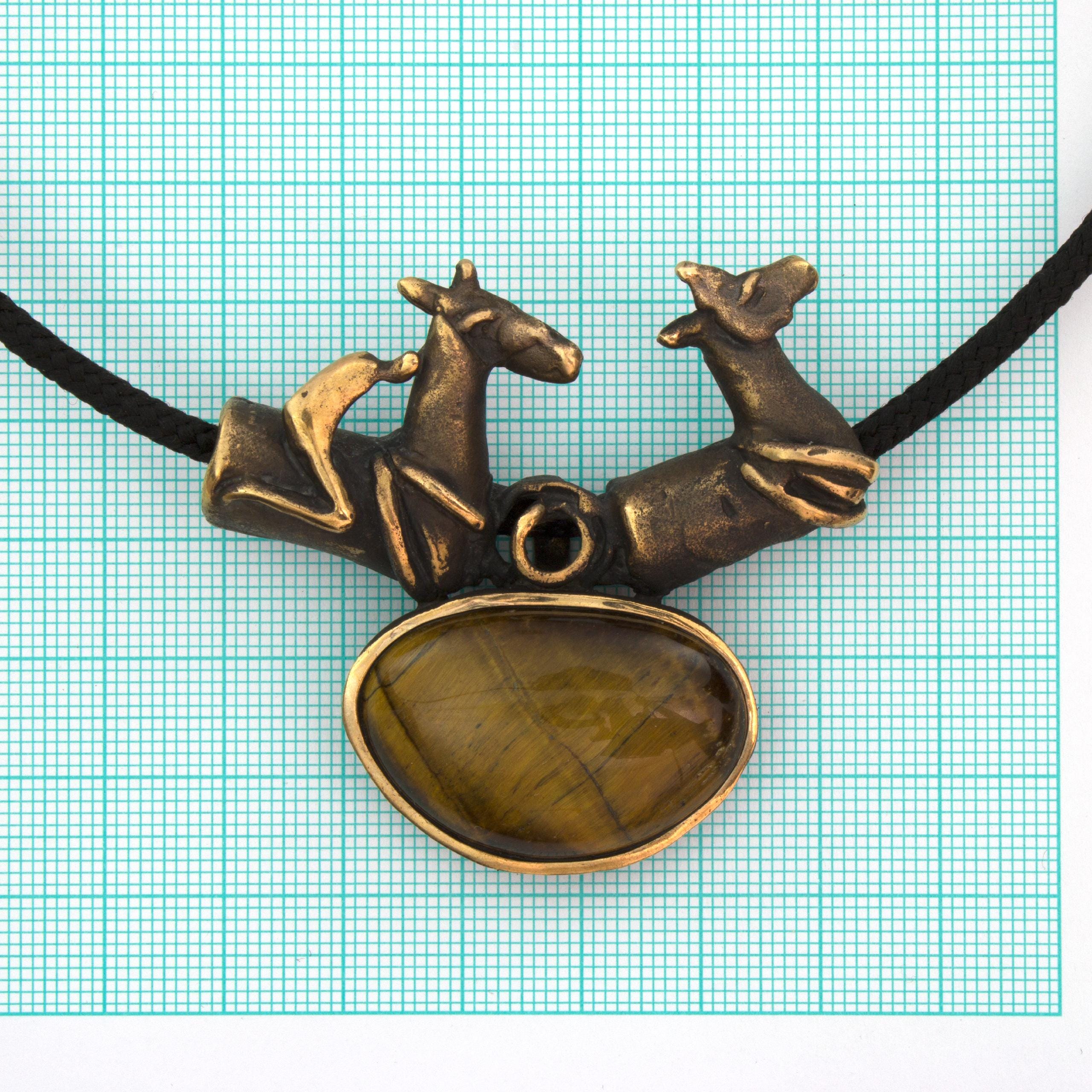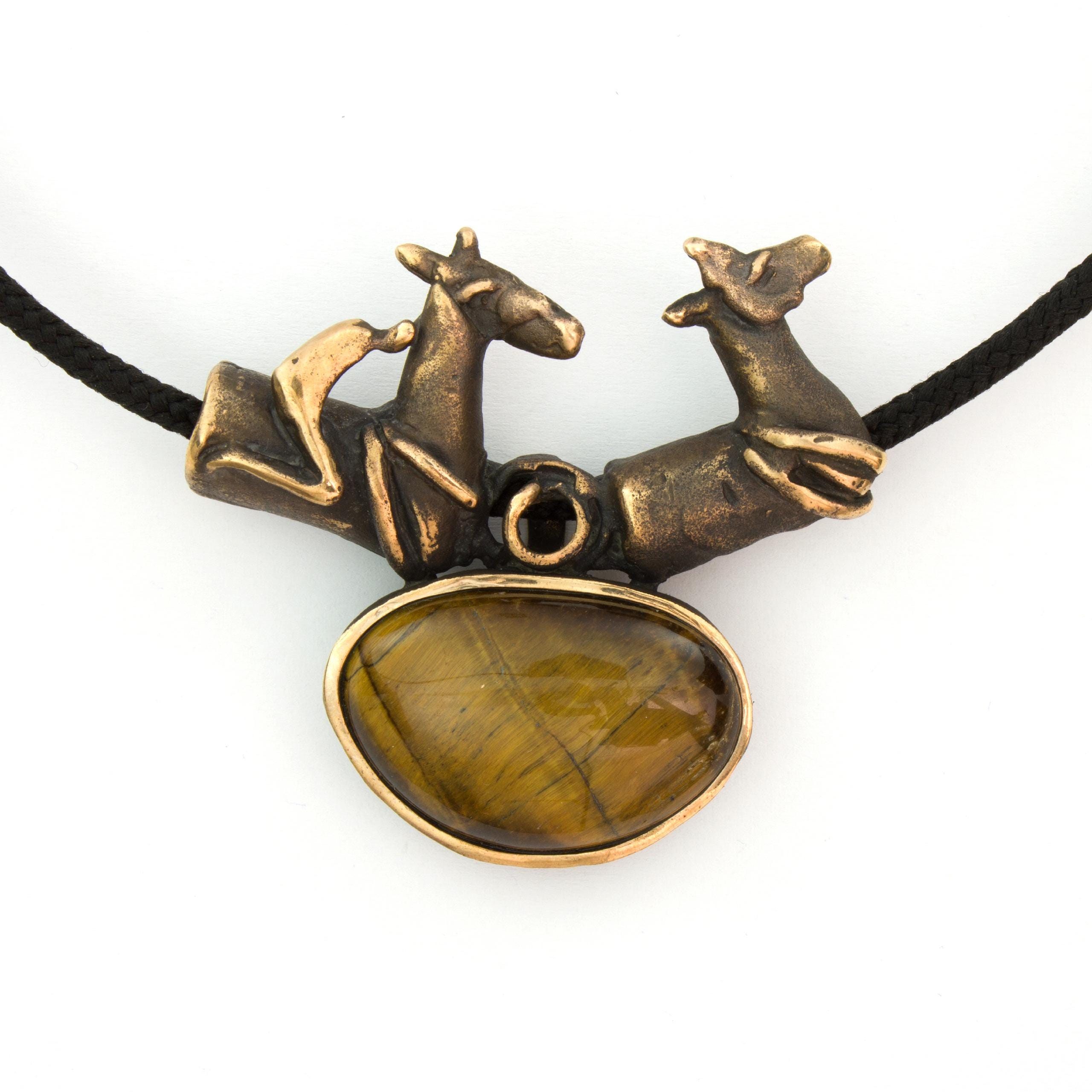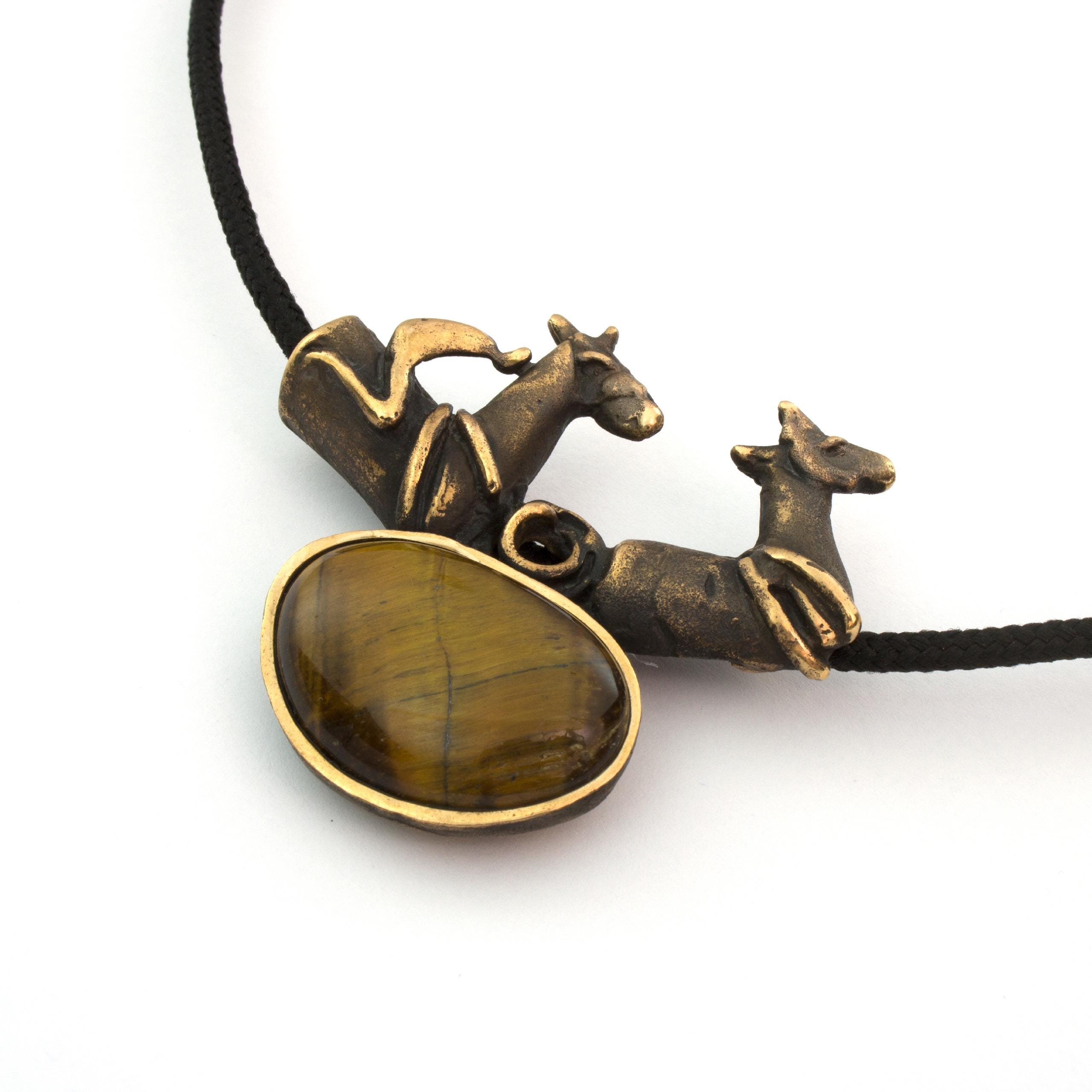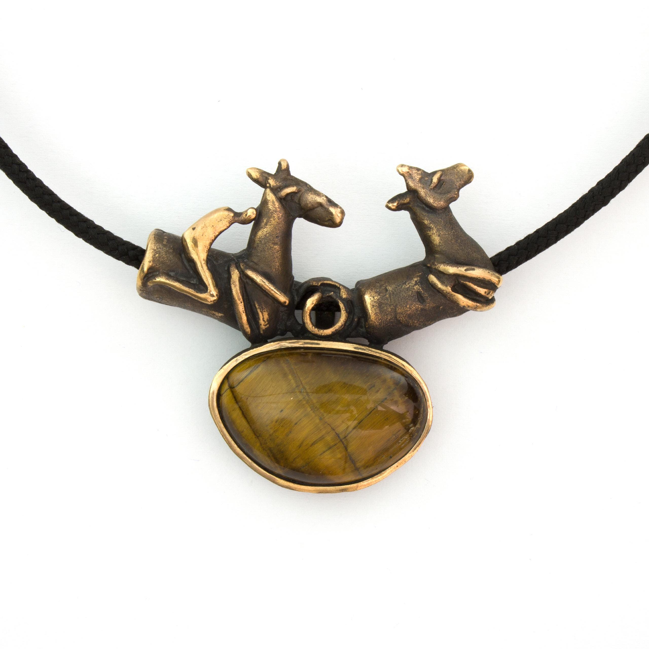 Bronzový náhrdelník s tygřím okem od Vojtěšky Vlčkové Katalogové číslo: 278 Autorka: Vojtěška Vlčková Realizace: Jaromíra Pavlíková Lití na ztracený vosk, bronz, tygří oko Délka cca 48 cm
