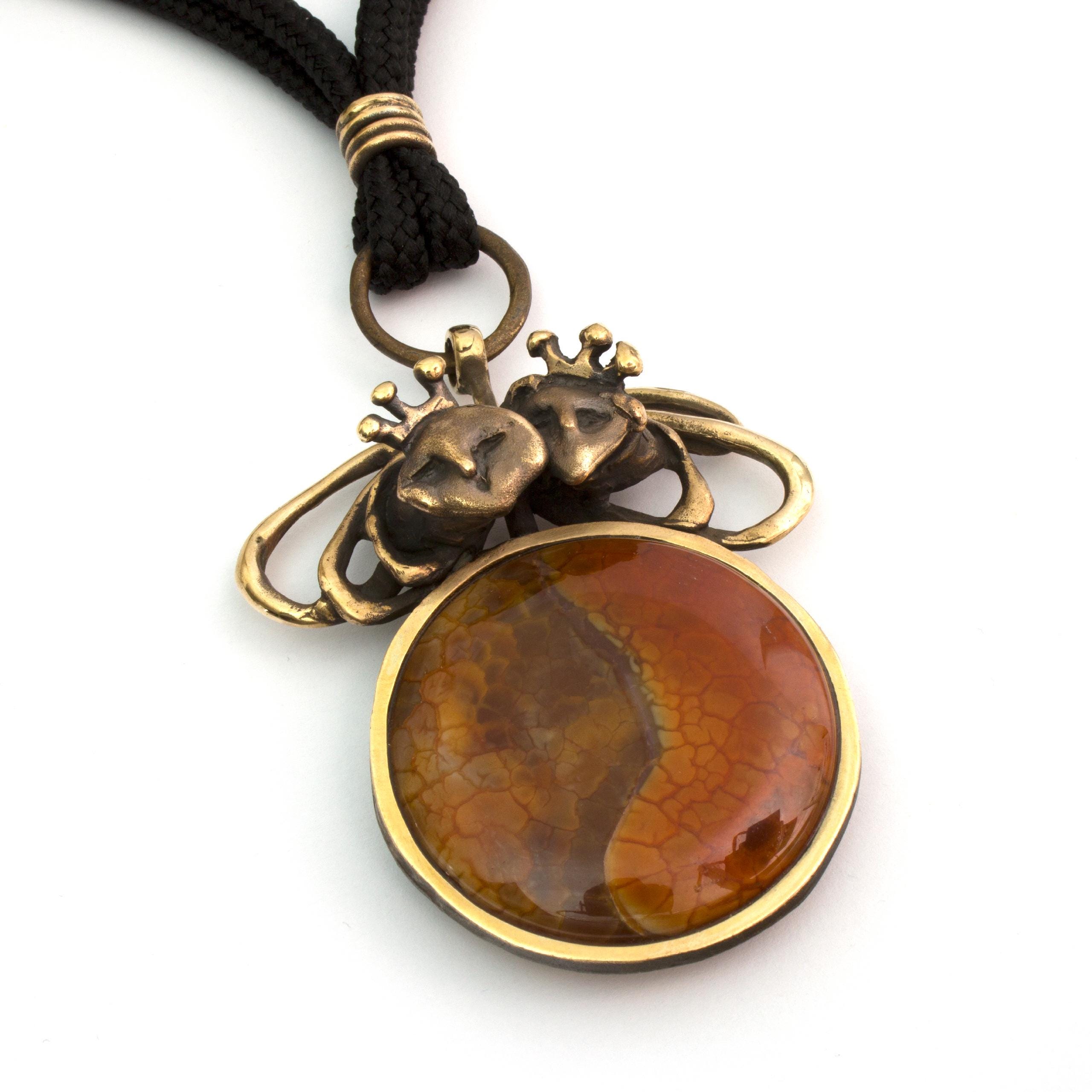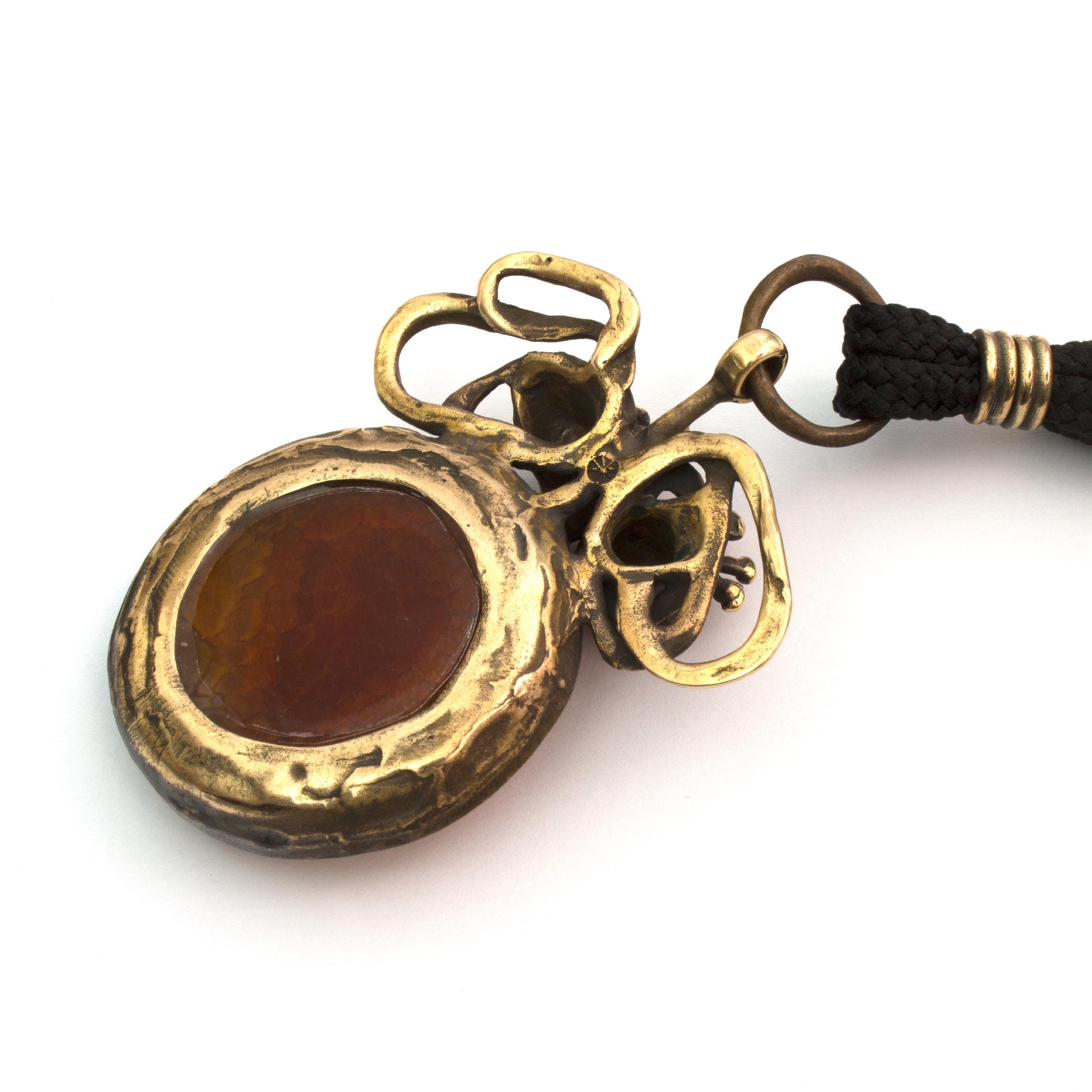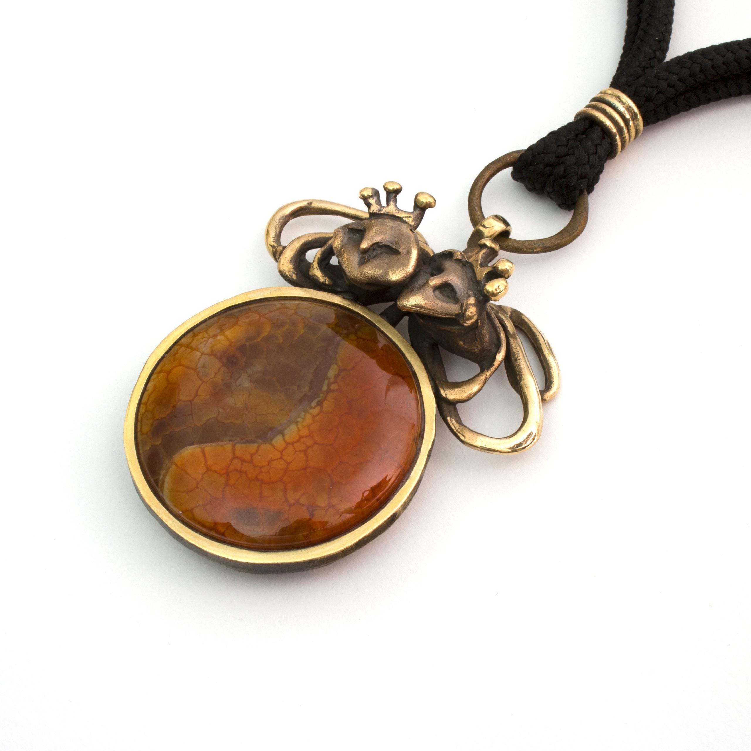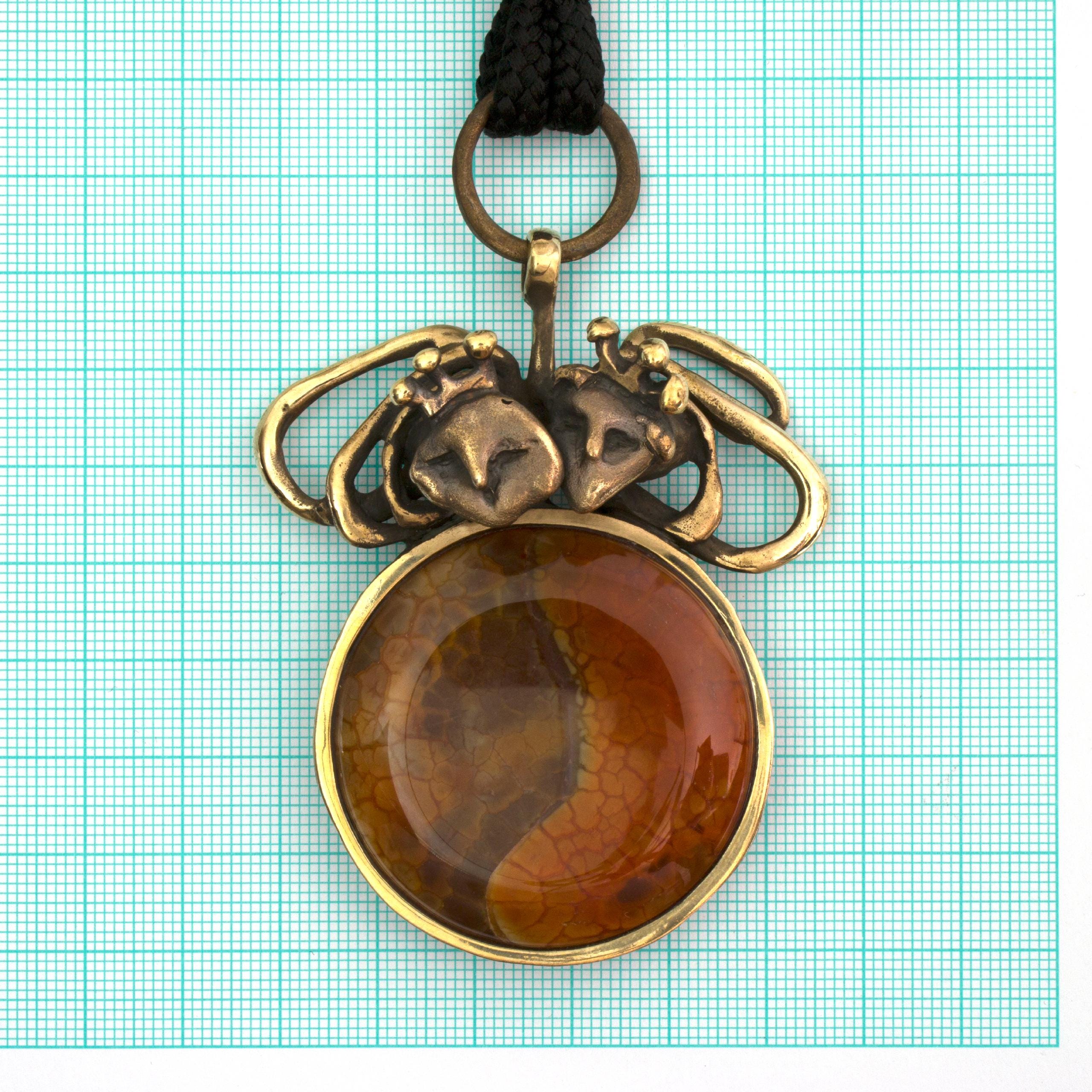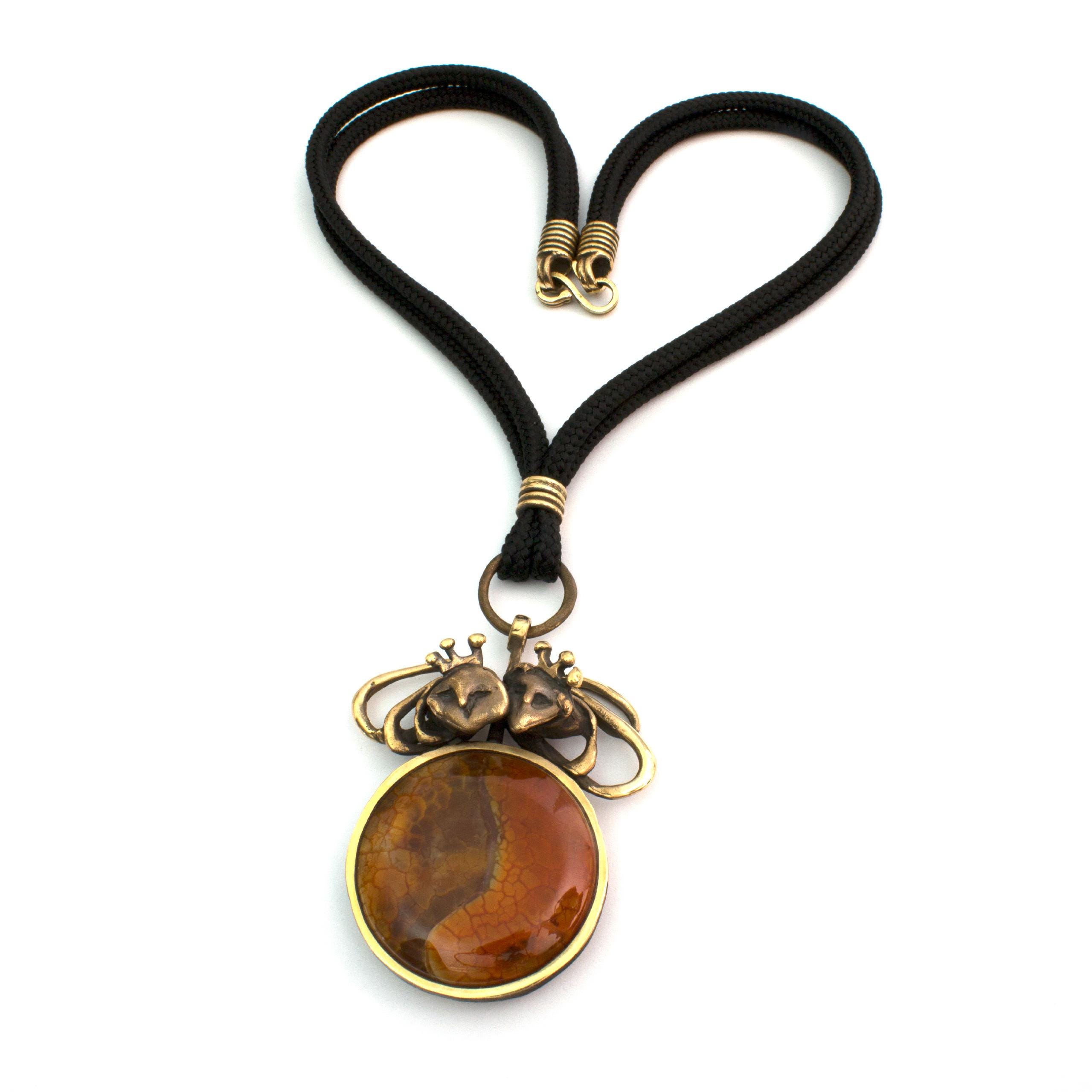Bronzový náhrdelník s achátem od Vojtěšky Vlčkové Katalogové číslo: 283 Autorka: Vojtěška Vlčková Realizace: Jaromíra Pavlíková Lití na ztracený vosk, bronz, ohnivý achát Délka cca 53 cm