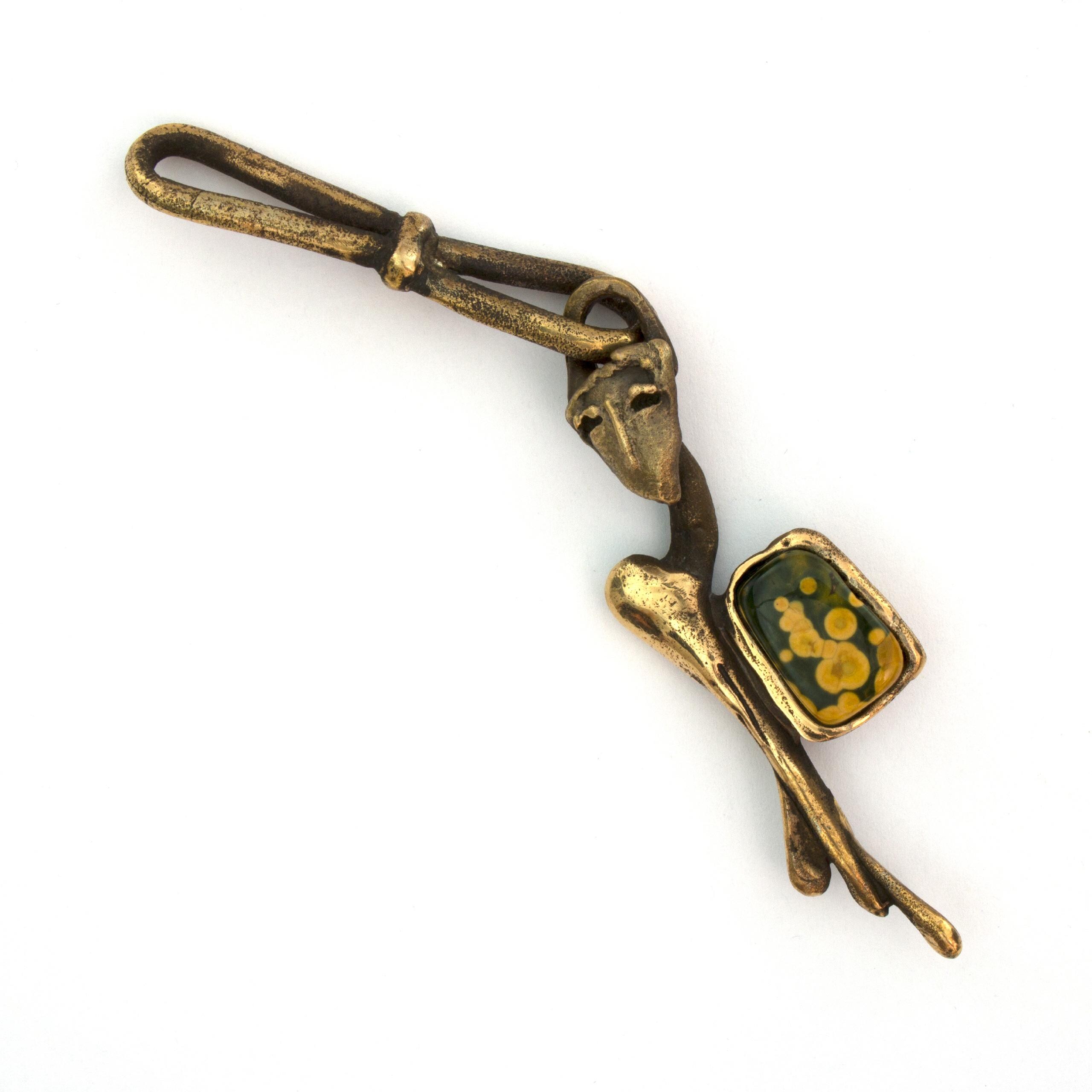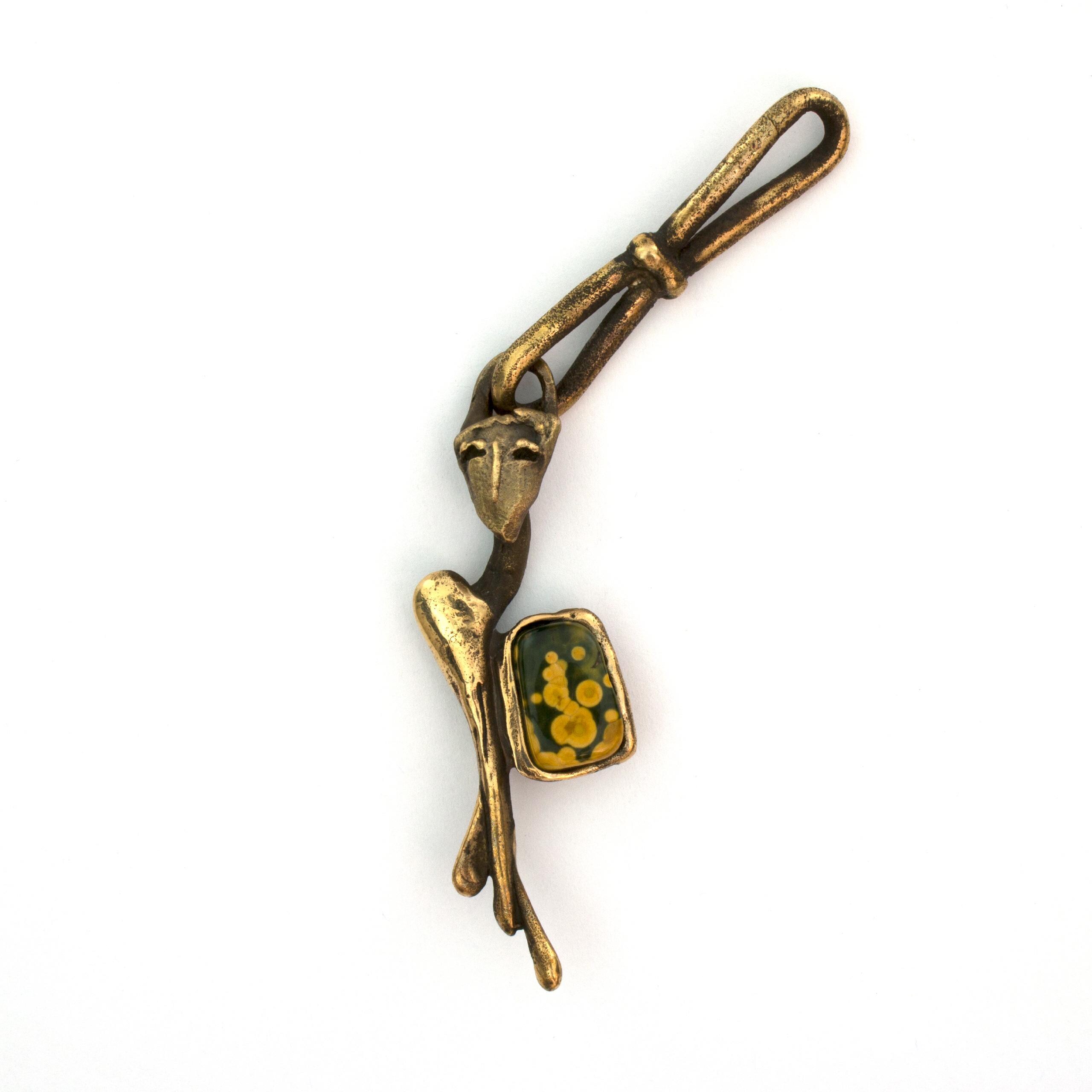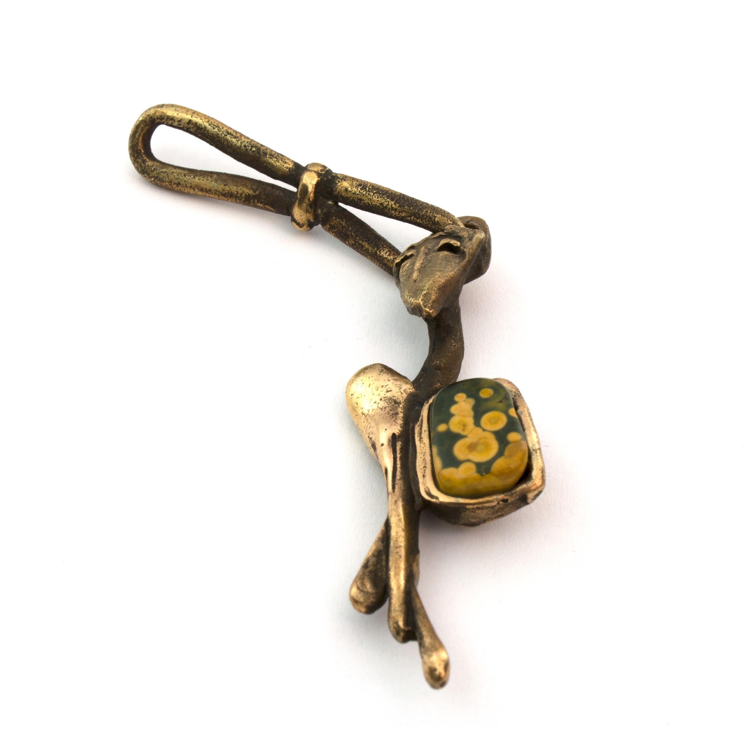 "Anděl na klíče" od Vojtěšky Vlčkové (1948-2023) přetváří každodenní předmět v nositelnou sochu. Tento výjimečný přívěsek z patinovaného bronzu doplněný jaspisem nese ochrannou symboliku andělského průvodce. Každý detail odráží autorčin jedinečný sochařský rukopis a schopnost vdechnout hmotě duchovní rozměr. Jedinečný kus pro ty, kteří hledají spojení umění s každodenním životem.