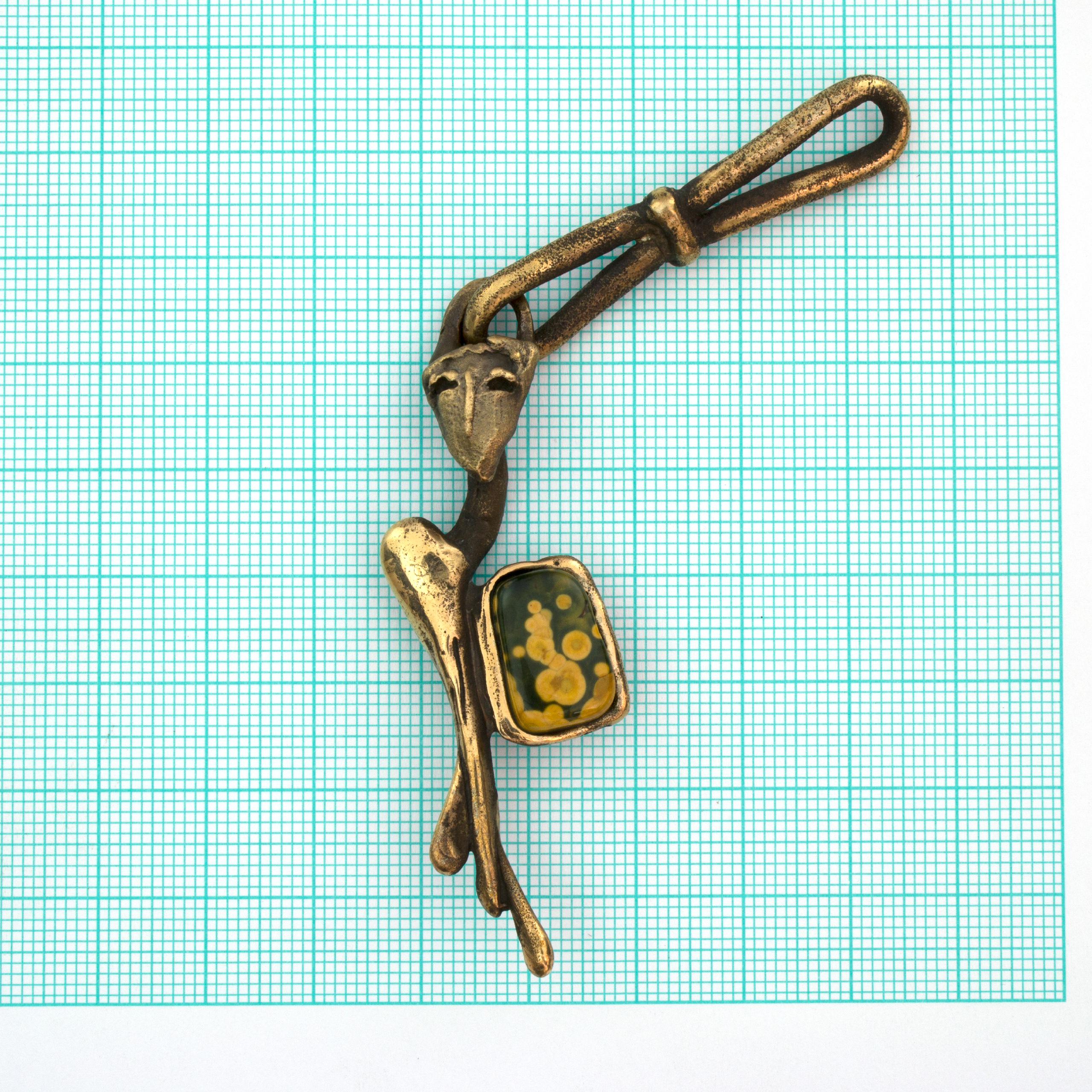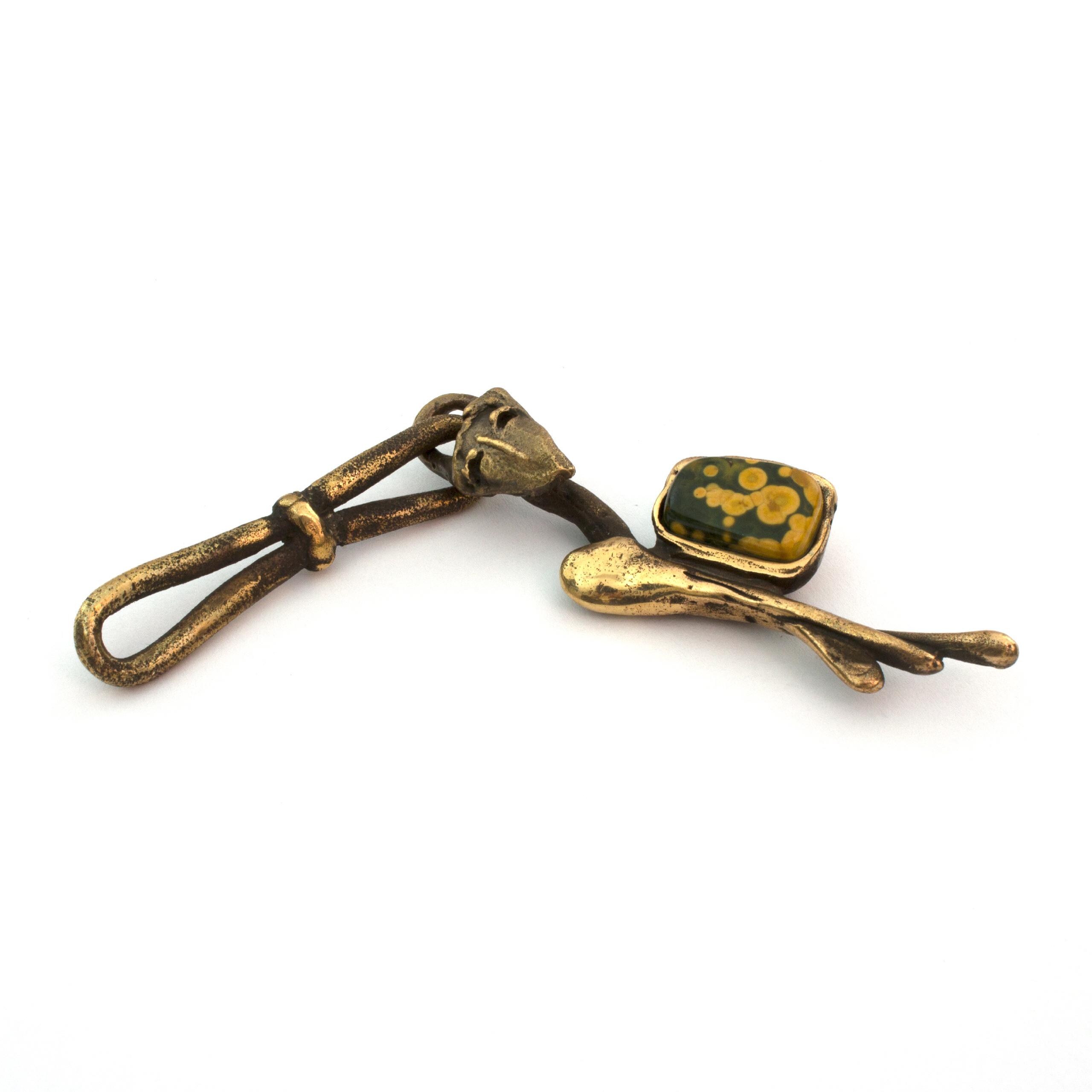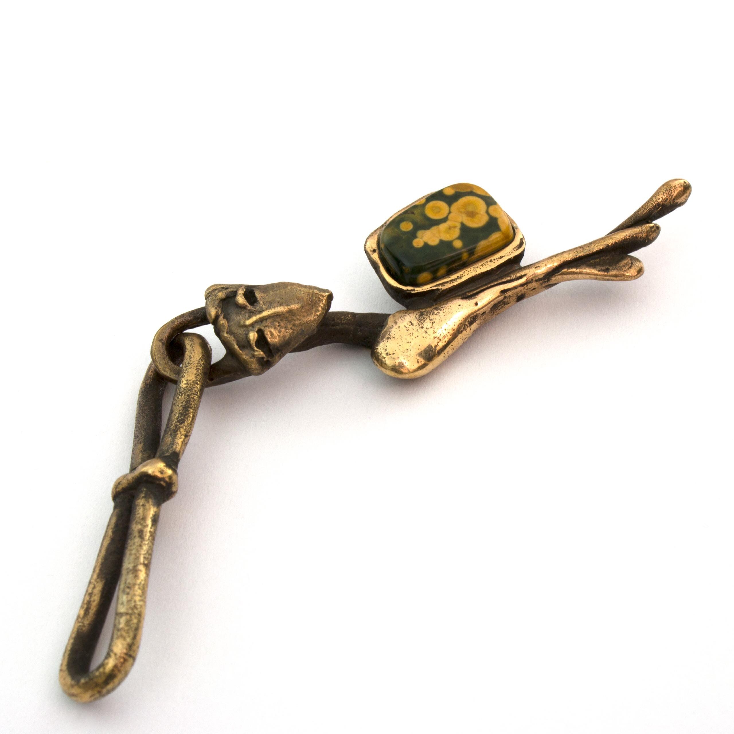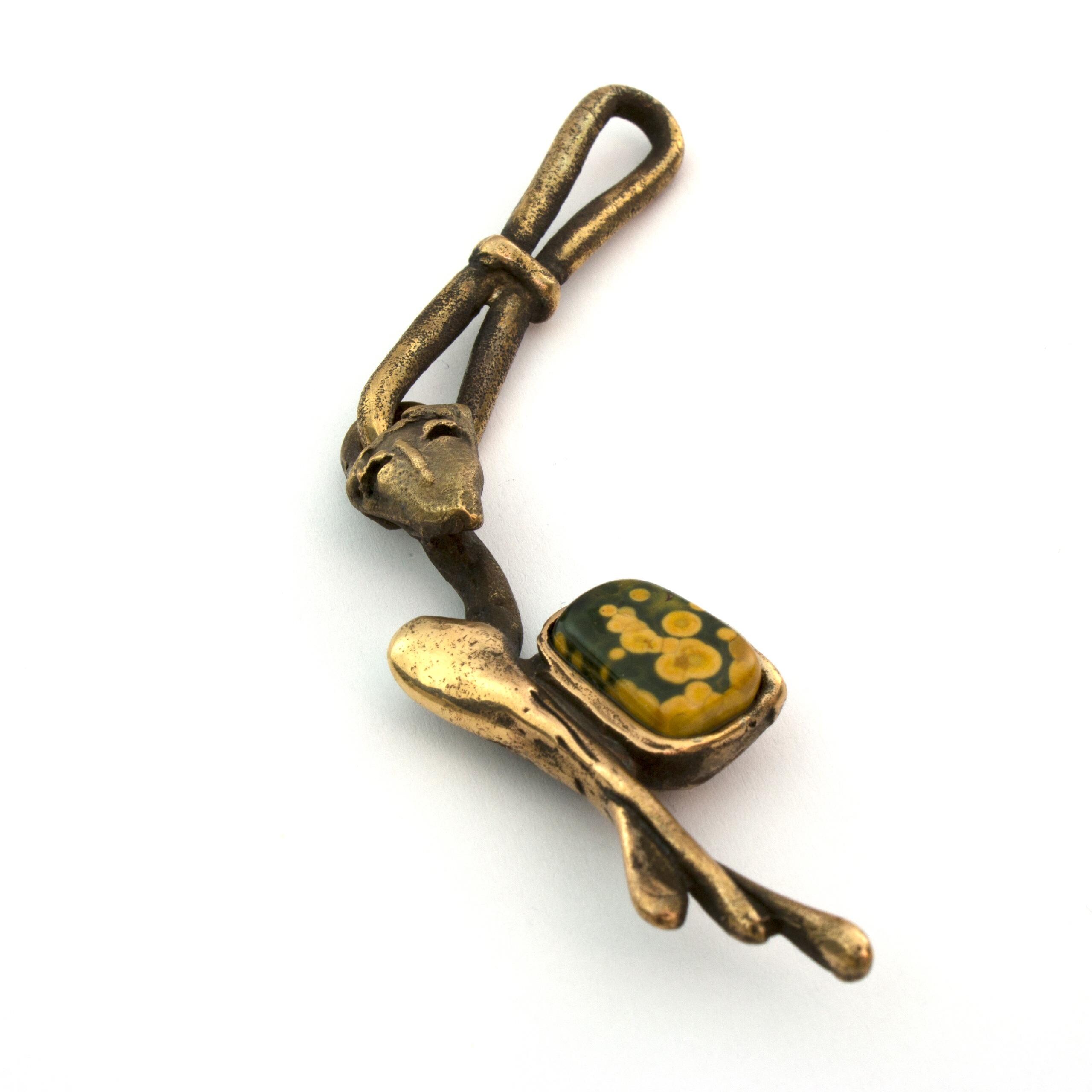 "Anděl na klíče" od Vojtěšky Vlčkové (1948-2023) přetváří každodenní předmět v nositelnou sochu. Tento výjimečný přívěsek z patinovaného bronzu doplněný jaspisem nese ochrannou symboliku andělského průvodce. Každý detail odráží autorčin jedinečný sochařský rukopis a schopnost vdechnout hmotě duchovní rozměr. Jedinečný kus pro ty, kteří hledají spojení umění s každodenním životem.